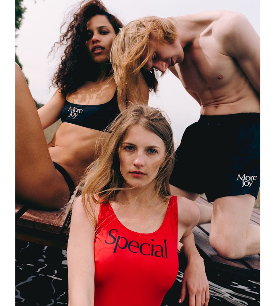 Who did the duo have in mind when they planned on bringing More Joy to the beach? “Pam Anderson from Baywatch comes to mind.  That was definitely an inspiration for the Special one-piece swimsuit,” say the pair. “There are so many iconic beach babes, but let’s not forget they were shot by the best photographers in the best lighting with the best hair and make-up, and that’s not real life… We like the idea of More Joy being worn by people from all walks of life, each person manifesting the message of More Joy within their own lives, by that I don’t mean product, I mean genuine feelings of joy. After the year we have had it is more important than ever to stop and reflect on how fortunate we are to have good health, family, and friends.”