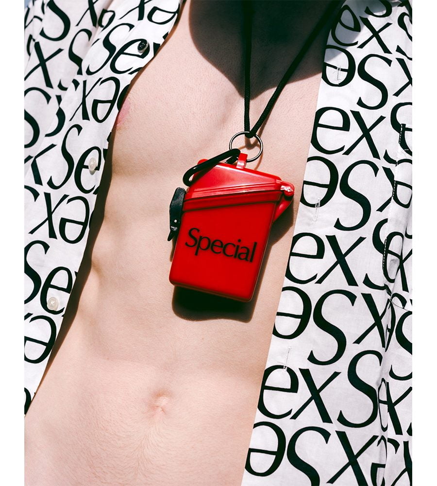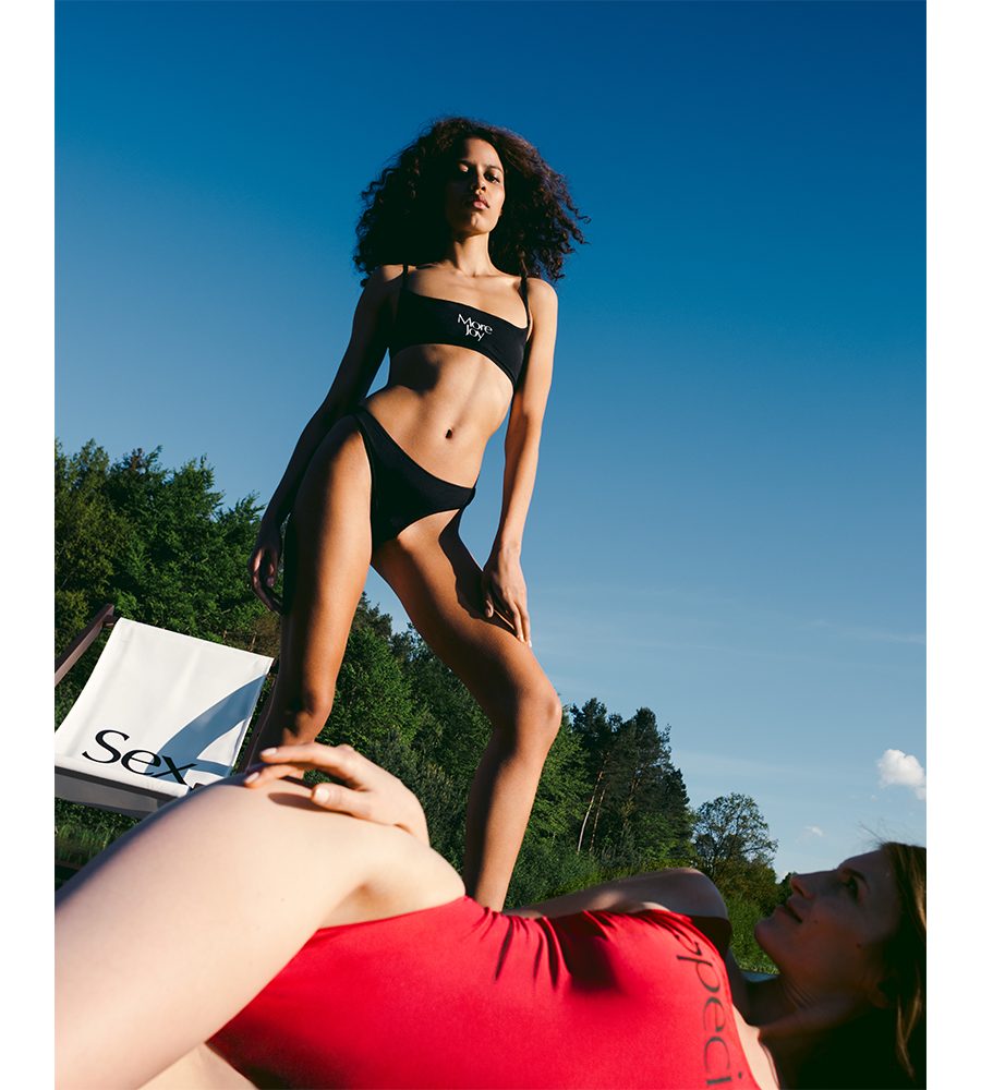 Aside from the beachwear, other pieces of More Joy magic includes everything from thwoorp fans and visors, to water bottles a limited-edition trio of deck chairs – there’s not an ounce of your summer that can’t be spruced up with a bit of More Joy. “The collection has been carefully curated, there is no excess or frills, it delivers things that are essentials for every day,” say the pair. As we all re-enter the world after months of being locked indoors, now’s the ideal time to start getting in touch with your sensual side. “For me, sex is more mental than physical, it is a cure for so much, it can help reduce stress, anxiety, and boost self-esteem,” continues Christopher. “It is a mindset change more than anything. Try wearing a Sex tee to get you in the mood, it never fails to get attention.”