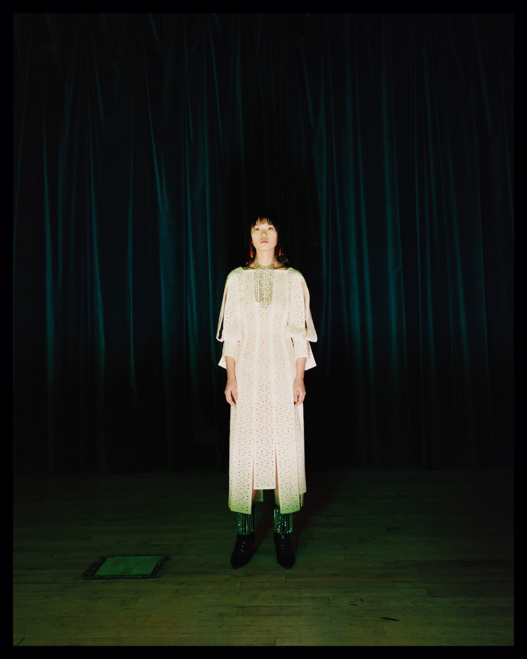 Rave glamour, a night out at the museum. That is our neat summary of Christopher Kane’s Pre Fall 18 Collection. But naturally, we have plenty more to say about it, because one of our favourite topics is Christopher Kane, so allow us to expand a little further. The imagery was shot at The Potteries Museum & Art Gallery in Stoke on Trent, but far from being a purely cultural affair, the space is lit like a warehouse rave. Filled with all the cool girls you wouldn’t dare approach, not solely because they are unapproachably cool, but also because you are not adorned in crystals and feathers as they are, and you would hate to block their shining light.