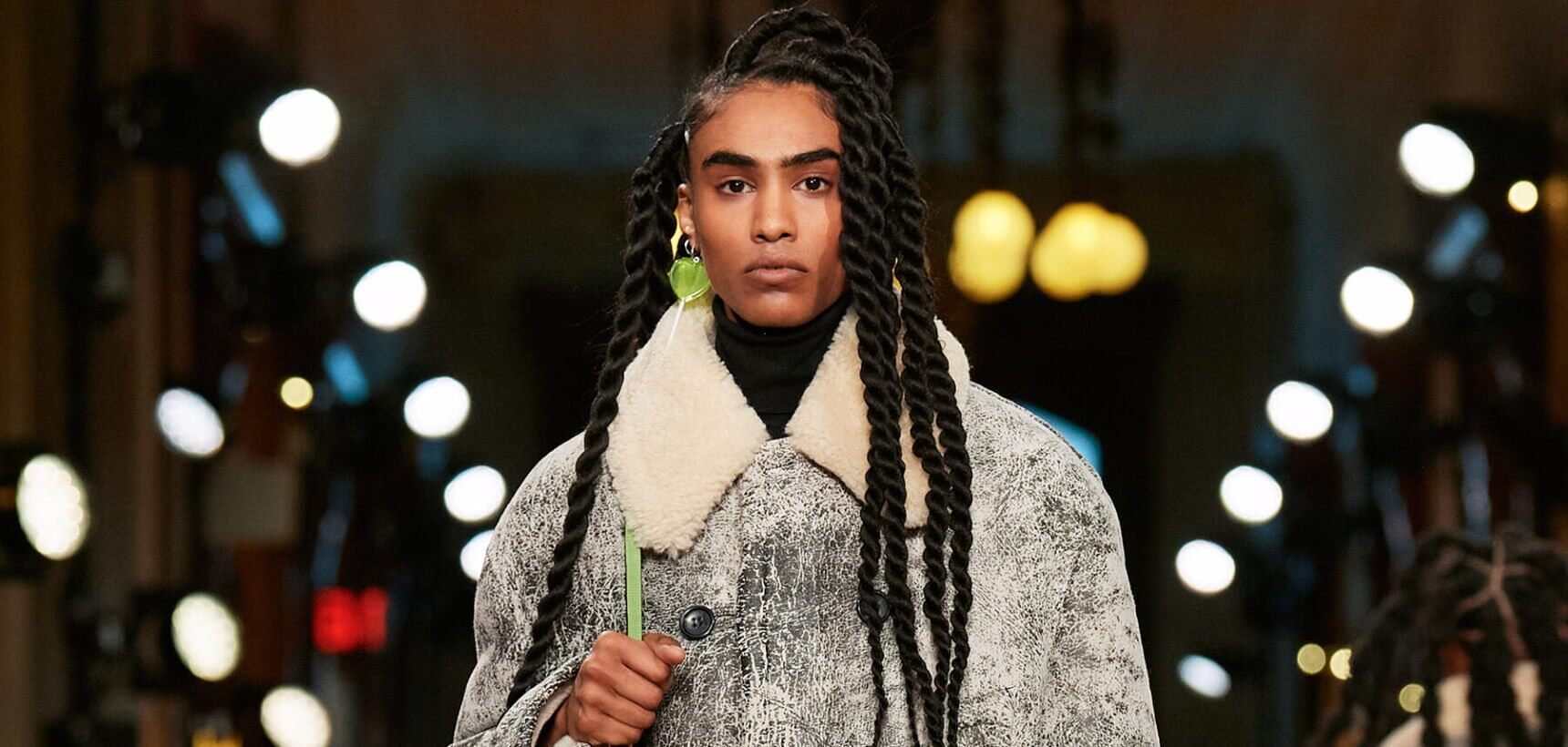 Stuart Vevers’ AW23 Coach show, with its leather short-shorts, hulking oversized shearling jackets and bags shaped like puckered kisses, formed a wardrobe that could easily dress a myriad of New York style tribes. The designer dubbed the collection “a reflection on the heritage that defines us, through the lens of a new generation”, not only through the show’s styling, but its inclusive street-casting and a dedication to craft and circularity.