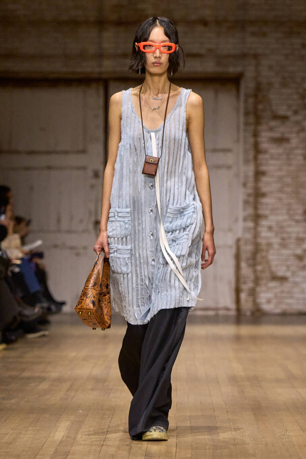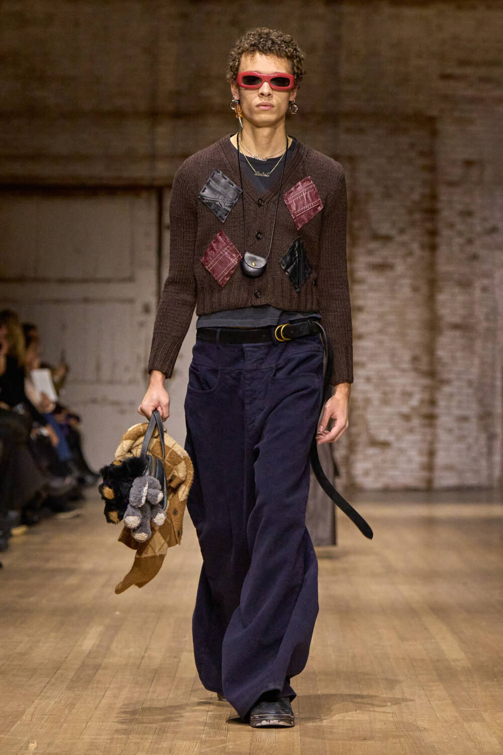 At its heart, Coach is an accessories brand and for autumn 2025, they continued their sense of light-hearted fun. Spend any time on social media yesterday and you’d have seen the fuzzy bunny slippers all over your feed. Bag charms, which have become a staple, are still popular with knitted carrots, teddy bears, and elephants among the baubles dangling off of handbags. Two new designs debuted: the Twin Pocket Bag, which was inspired by a 1968 archival piece, and the Bleecker Bucket Bag, also taken from the archives. As for the brand’s classics like the Empire, Brooklyn, and Tabby, they too made appearances albeit rendered in different proportions and materials like satin.