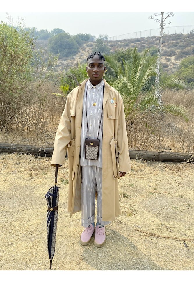 His idea is to recontextualise pieces from the AW20 collection and show them alongside vintage, archival and new Coach designs for SS21. He’s called this major exercise in high fashion up-cycling, Coach Forever. “I wanted to find new ways of doing things,” said Vevers, who used vegetable-tanned, naturally-dyed leather for his accessories and made totes from recycled plastic bottles.