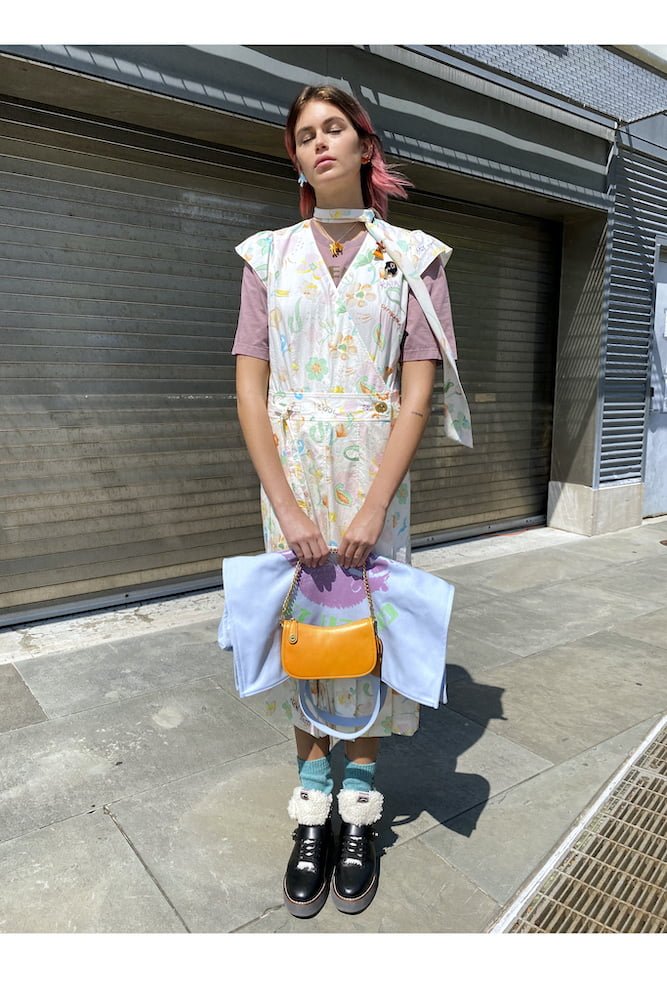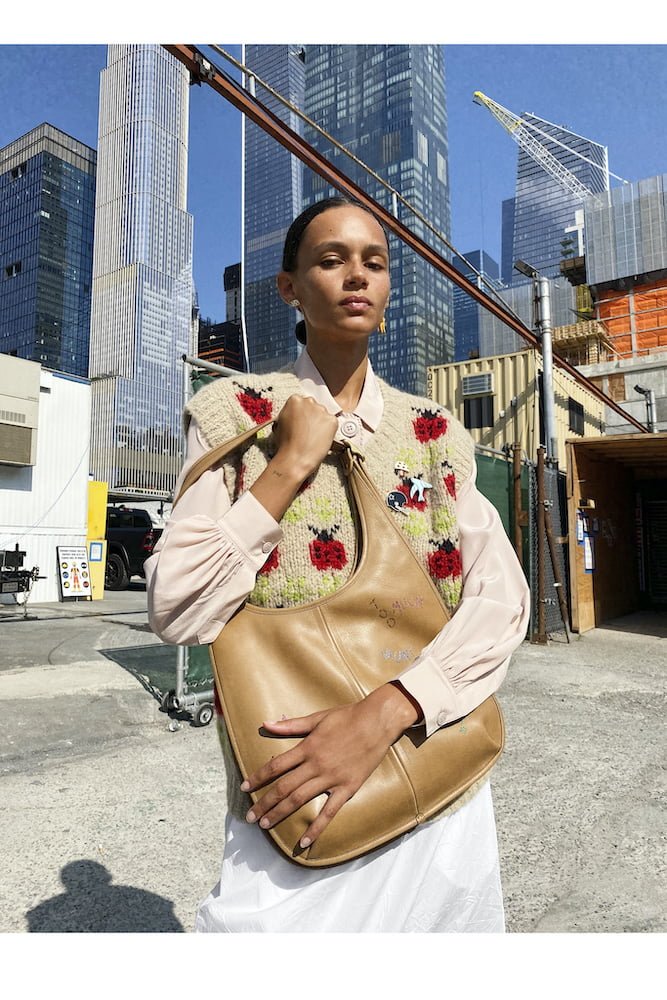 For the Ready-to-wear, Vevers took an artisan approach. Craft was brought to the fore with looks created out of up-cycled remnants and vintage pieces personalized with embellishments and embroidery. Vevers said, “it was important to me to challenge how we create our collections, and consider their impact on our communities and the planet. I’m excited to keep exploring that through designing and learning, and to have brought this to life with Juergen and our Coach Family.”