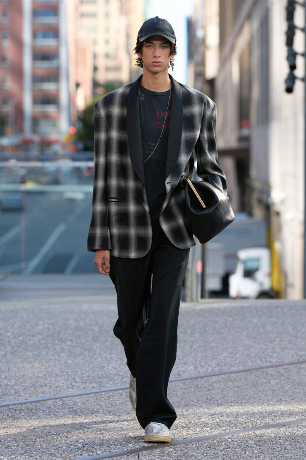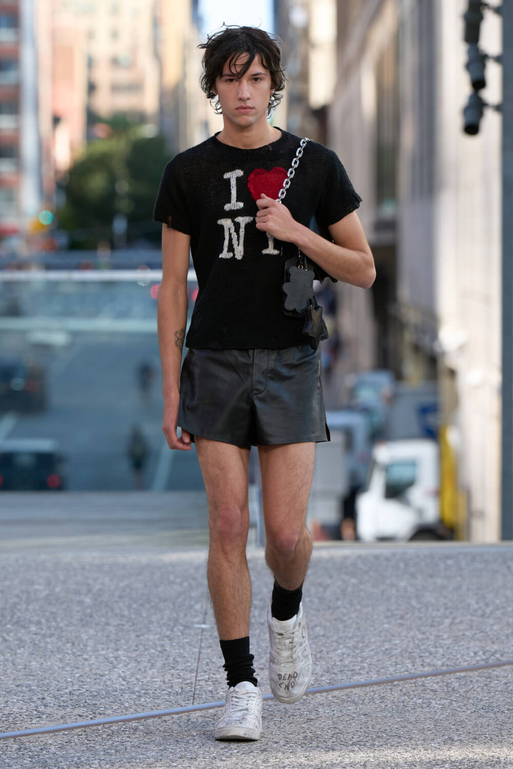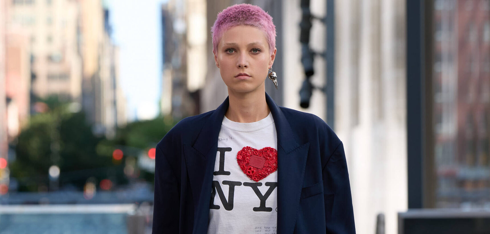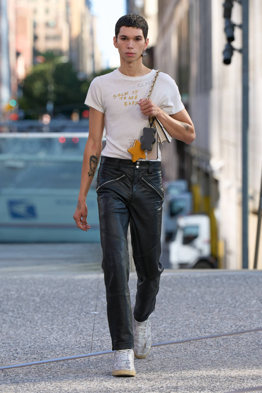 For the Coach spring/summer 2025 collection, creative director Stuart Vevers took inspiration from the new generation of New Yorkers. Set above Manhattan’s west side on the Spur of the High Line, the runway buzzed with the city’s energy as the first model turned the corner in an embellished ‘I Heart NY’ tee.