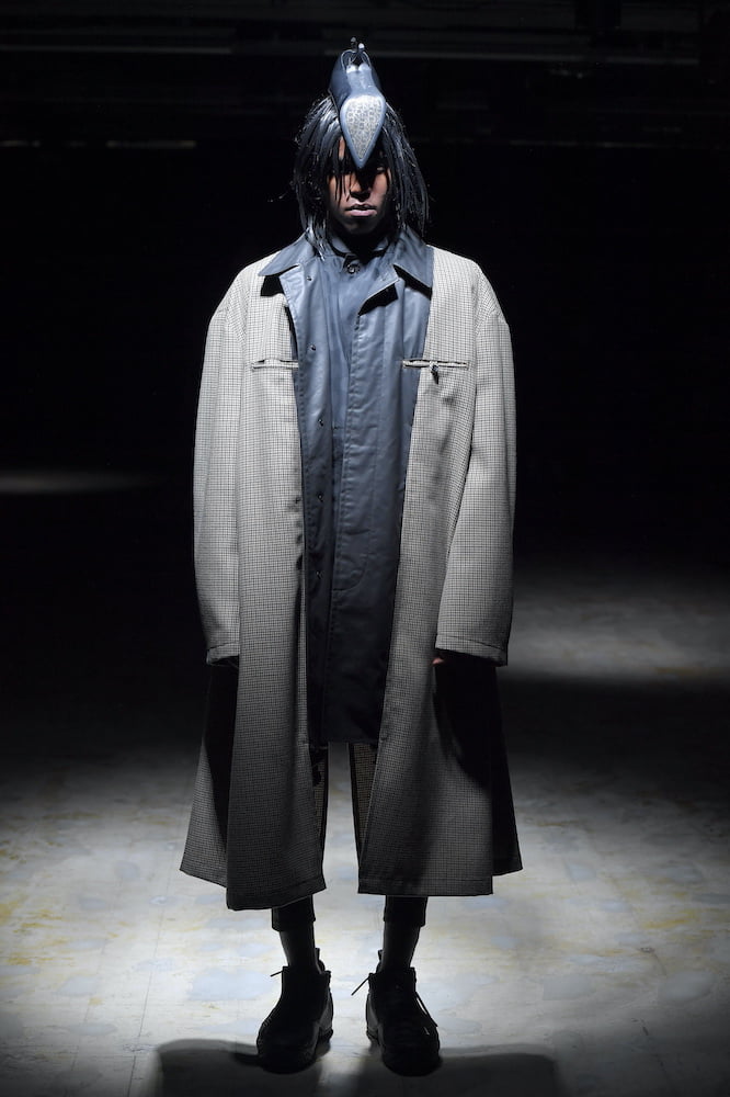 Kawakubo wanted to use this season as a testament that even in this bleak moment in time, creativity can still arise. Whether it be Renaissance-style, houndstooth trousers that very well could be tights – worn with logo-stamped sports socks and kitten heels – or a disruptive take on the classic Chanel tweed jacket. “It is in this world sunk in darkness that we must search and find something new,” said Kawakubo in a statement. And through Homme Plus, newness we shall seek.