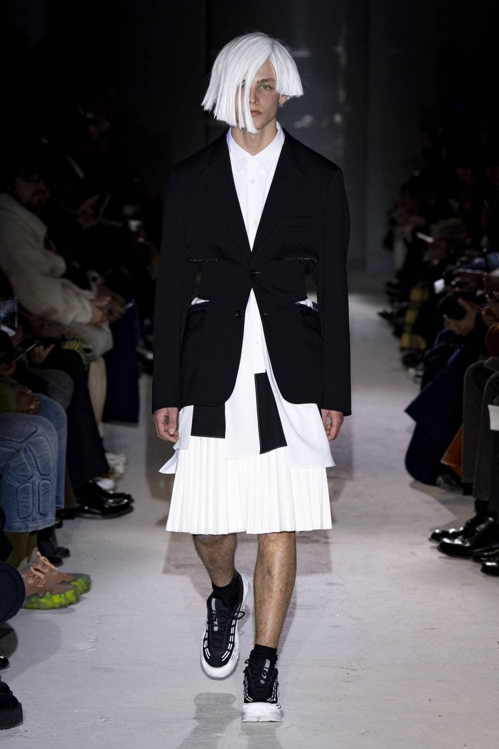 Each season, it’s routine to enter a Comme des Garçons show and leave with your mind altered. Time again, Rei Kawakubo’s awe-inspiring collections take fashion to otherworldly realms. Yet the power of her latest Homme Plus outing was in the simplicity of the clothes. “White is symbolic of prayer,” wrote the designer in her brief show notes, as she charged forward with a slew of elongated cream wooly blazers with matching shorts, ballooned trousers and knife-pleated skirts.