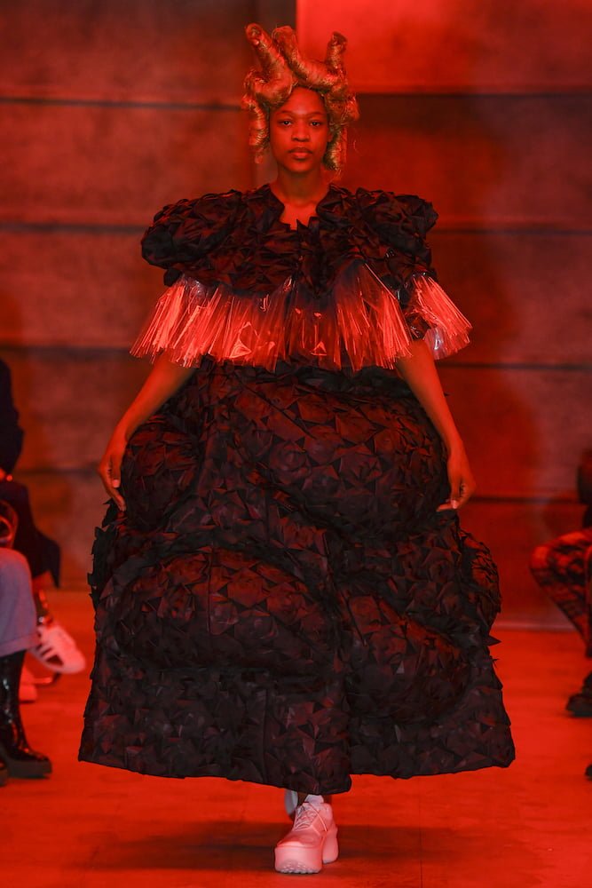 Rei Kawakubo doesn’t speak expansively about her work. A one word clue is often the most fashion watchers get. But this time, showing in Tokyo due to the pandemic, she said: “The human brain always looks for harmony and logic. When logic is denied, when there is dissonance a powerful moment is created which leads you to feel an inner turmoil and tension that can lead to finding positive change and progress.” Chaos and creation, dissonance and progress: These are all essential elements for Kawakubo.
