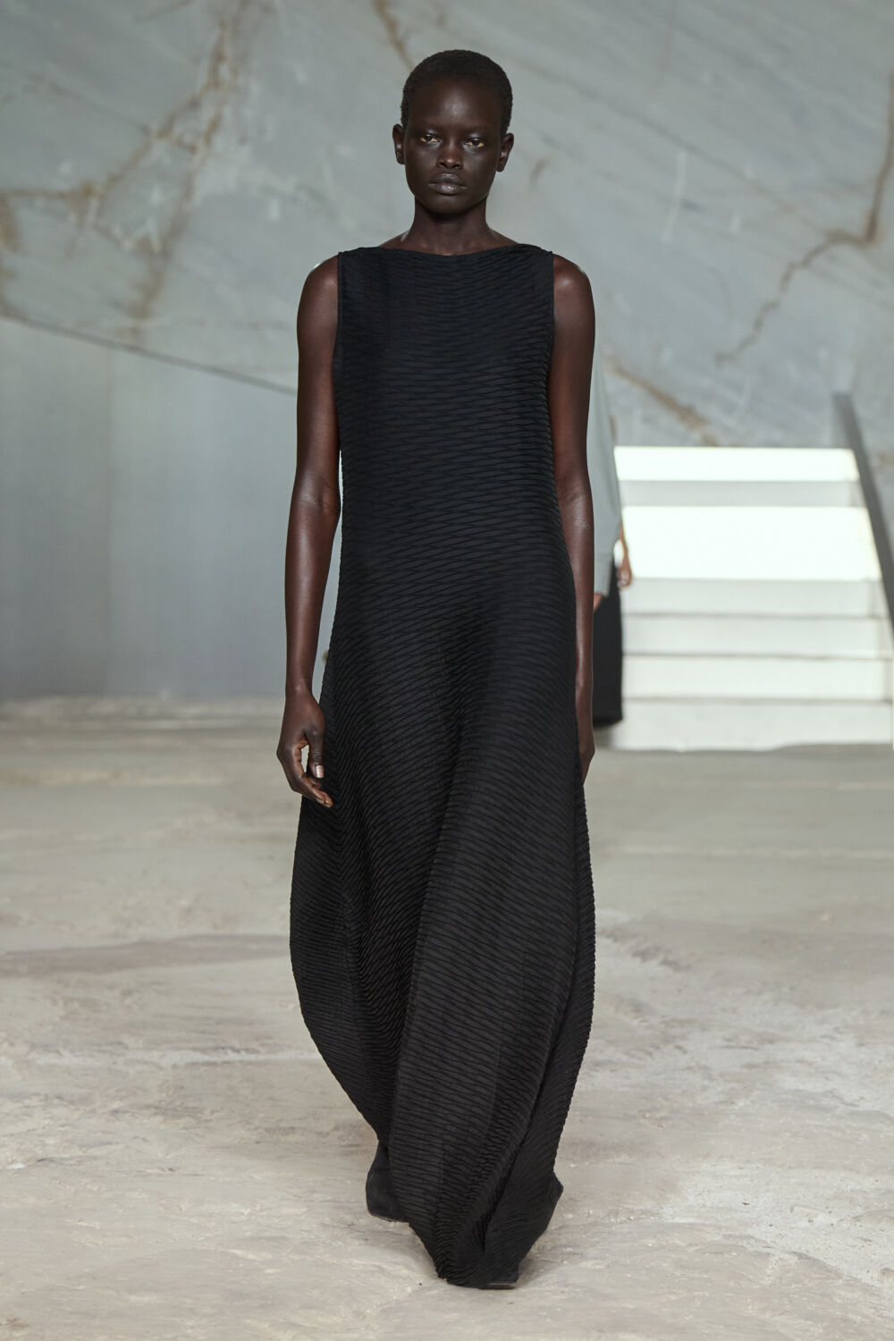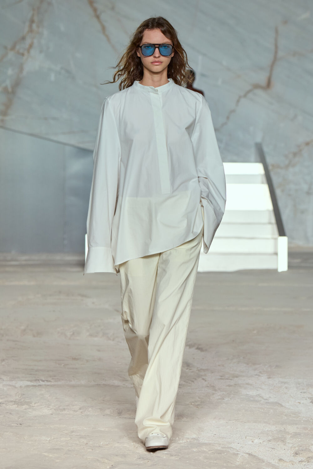 “The city provides a setting which contrasts history and contemporary design – the combination of structured, modern shapes with soft elements runs throughout the collection – pieces that feel both luxurious and effortless,” says the designer. “Our show location creates a serene yet dramatic backdrop, enhancing the understated luxury of this season’s pieces. Its captivating atmosphere serves as the ideal setting, amplifying the subtle elegance and effortless sophistication that defines our collection.”
