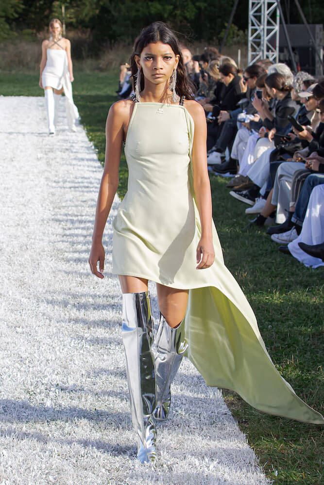 Nicolas Di Felice is quickly carving himself out as one of Paris’ buzziest names. Three seasons in, his first IRL Courrèges show yesterday had the fashion pack trecking bright and early to the outskirts of the city, all the way to Bois de Vincennes. Felice – who trained under Nicolas Ghesquière at Louis Vuitton and Balenciaga – has spent the past year reintroducing the space age flair of André Courrèges to a new generation of shoppers. recontextualising the codes of the house in a way that feels true to the now.