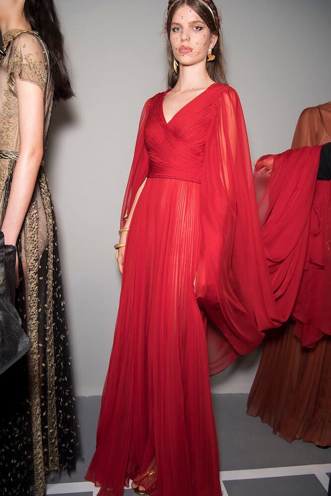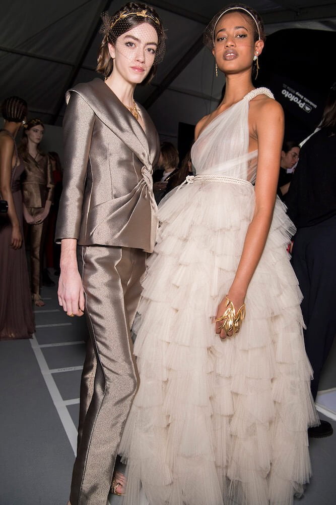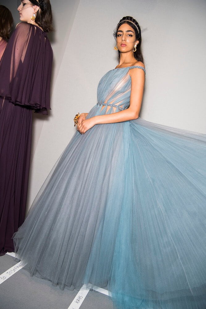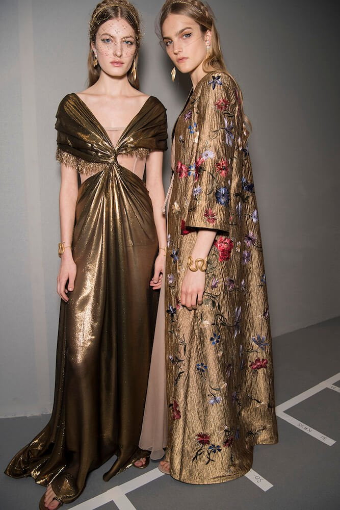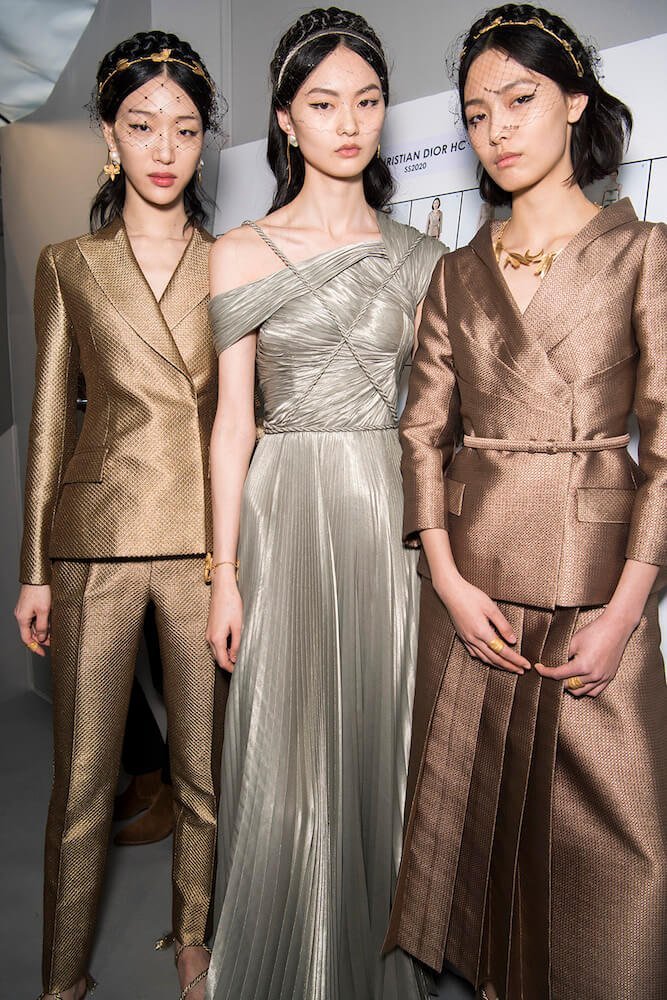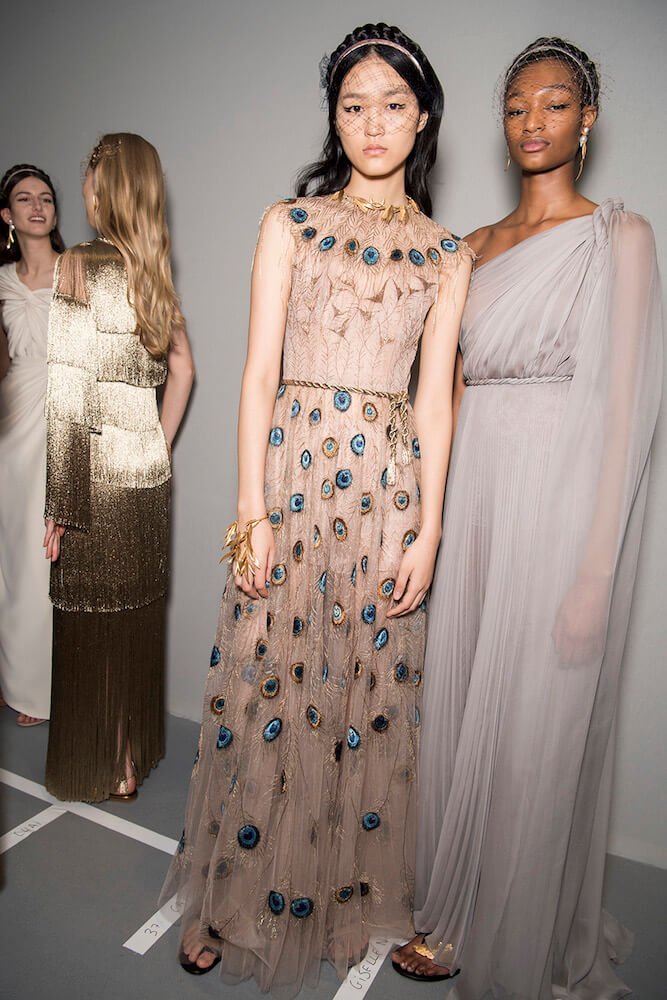 Chiuri took inspiration from the goddesses of Ancient Greece and the couture workmanship was awe-inspiring. Chiuri directed the Dior atelier to drape and gather chiffon into glorious gowns worthy of Athena. Swishing, golden fringe dresses shimmered down the runway as their easy grace belied their complex construction. An embroidered opera coat was made of cloth of gold. Chiuri found new ways to work the signature hourglass Dior silhouette cutting glinting, gilded cloth, in curving swathes around the body. It was light as mist and some gowns were so sheer that they came with their own matching chiffon bras and boxer shorts beneath. Chiuri found strength in delicacy. The models walked, sure footed and confident, in their flat, gold rope sandals and wore golden bands in their plaited hair. The power of elegance is marvellous to behold. Backstage, Chiuri spoke of her own activism and a desire to inspire a new generation of young women to follow big dreams, take charge and rule the world.