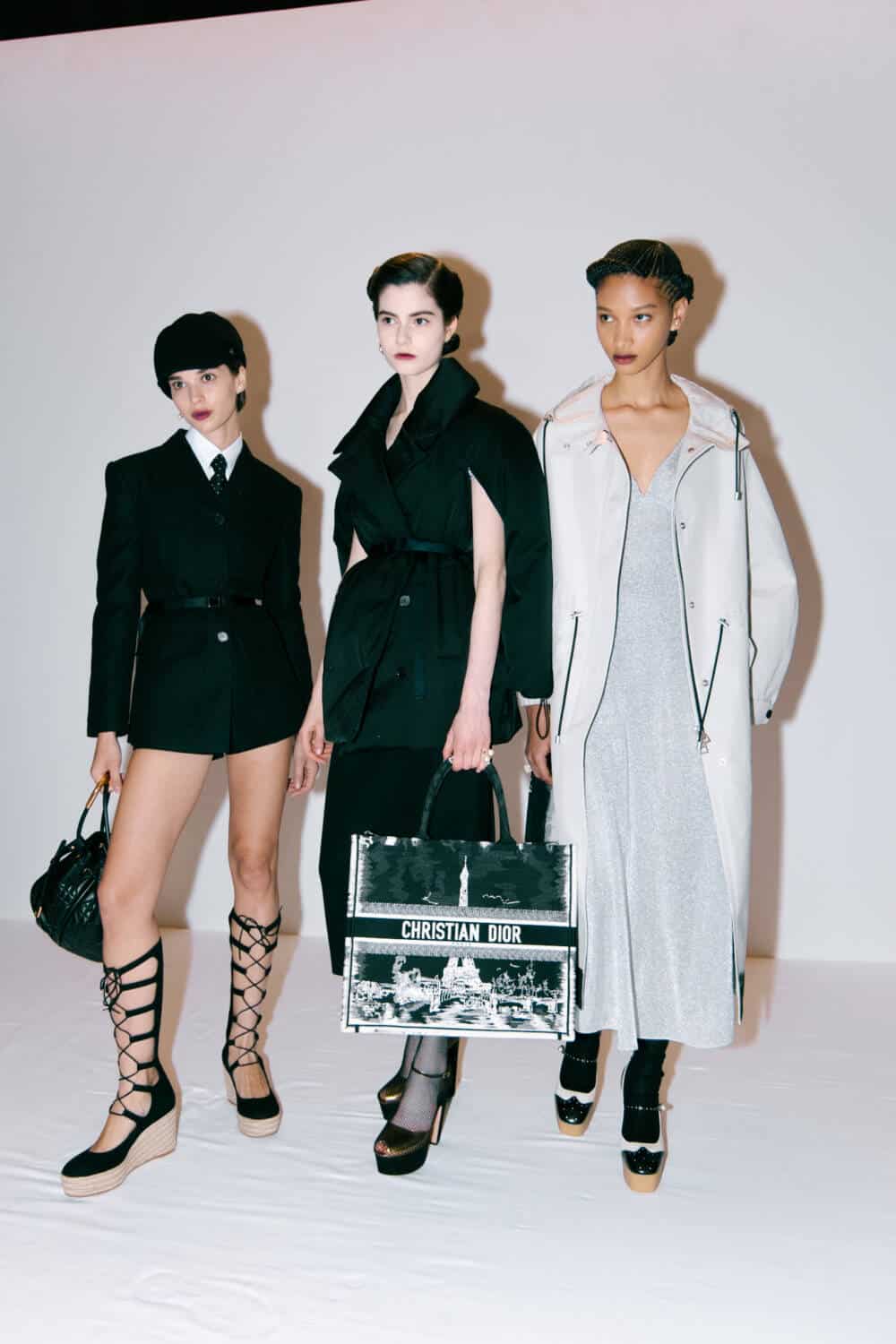 And while the bulk of these pieces have been seen before as the images came out in December 2023, a batch of new designs were created especially for the show. Pieces referenced the New York City skyline with the black-and-white print featuring prominently on everything from dresses to trenches to the brand’s now signature Book tote. Also referenced was Marc Bohan and Alexandre Sache’s 1976 Bicentennial American flag print. Adorning the back of a jacket as well on a slouchy sweatshirt, it highlighted sportswear at its best. And for fans of John Galliano’s era at Dior, the newspaper print made a comeback on a Saddle bag. Updated to read New York-Paris, it instantly brought to mind Carrie Bradshaw and Sex and the City.