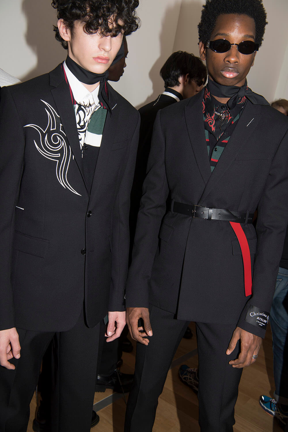Mr Kris Van Assche has been with Dior Homme for 10 years. Ten! Which naturally leads to us asking, “ can we thank you for the music?” “the clothes we wore and songs we sang” and dressed our Ken dolls up in-? or was that only me?- Lets not beat around the bush here, I don’t write ‘reviews’, you want descriptions in a review style and that’s just not me… can we not both just join forces and admit that Kris has mastered his 10 years at the helm of a house seamlessly, and it continues collection after collection after collection- have you ever witnessed the living embodiment of a gold tinged record before? Well you have now. And let me just say, those cummerbund slash waistcoat hybrids, worn in reverse, look, if it’s possible, more modern than the first time Kris sent them out. Hence why we love him. It takes an actual talent to out- do themselves on this scale. Monsieur Kris, chapeau bas!