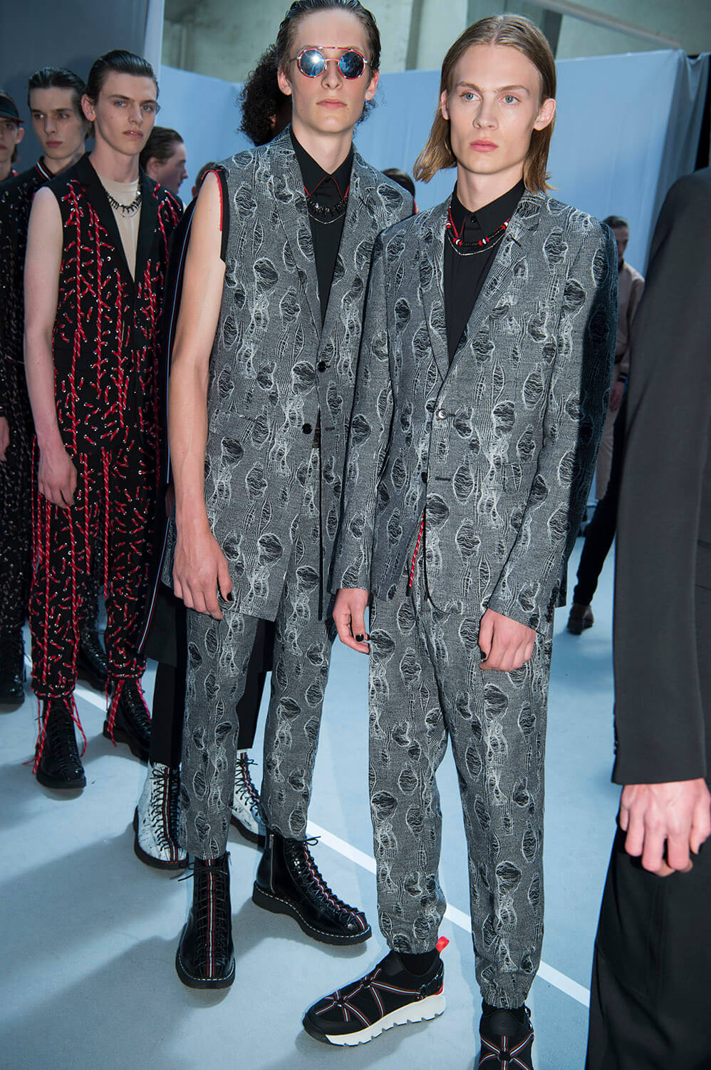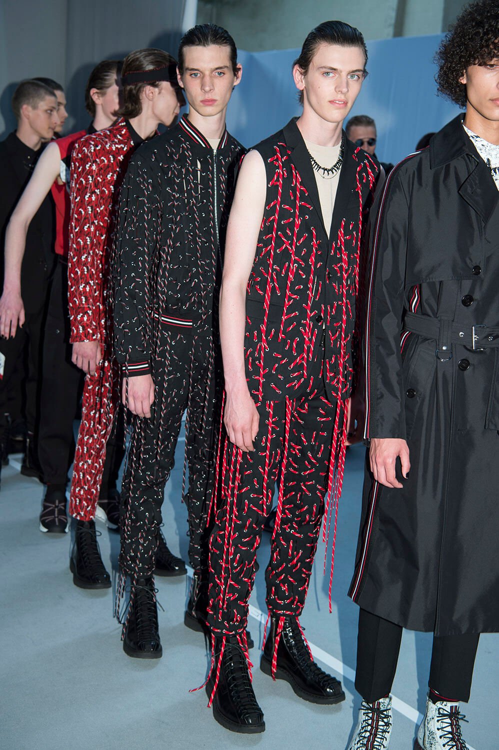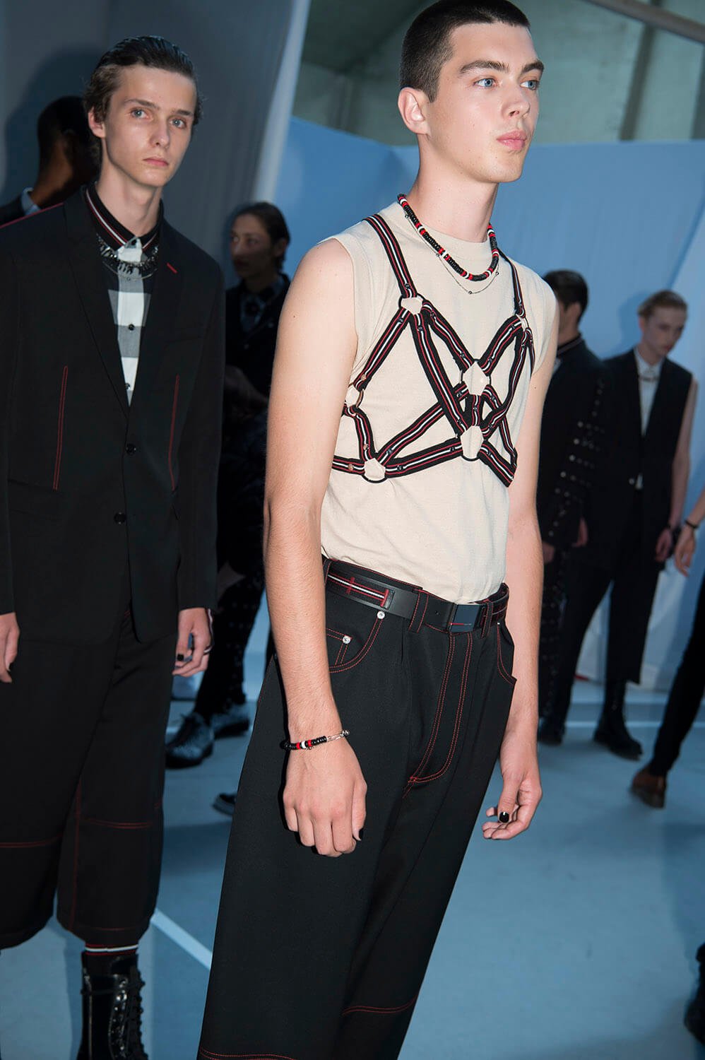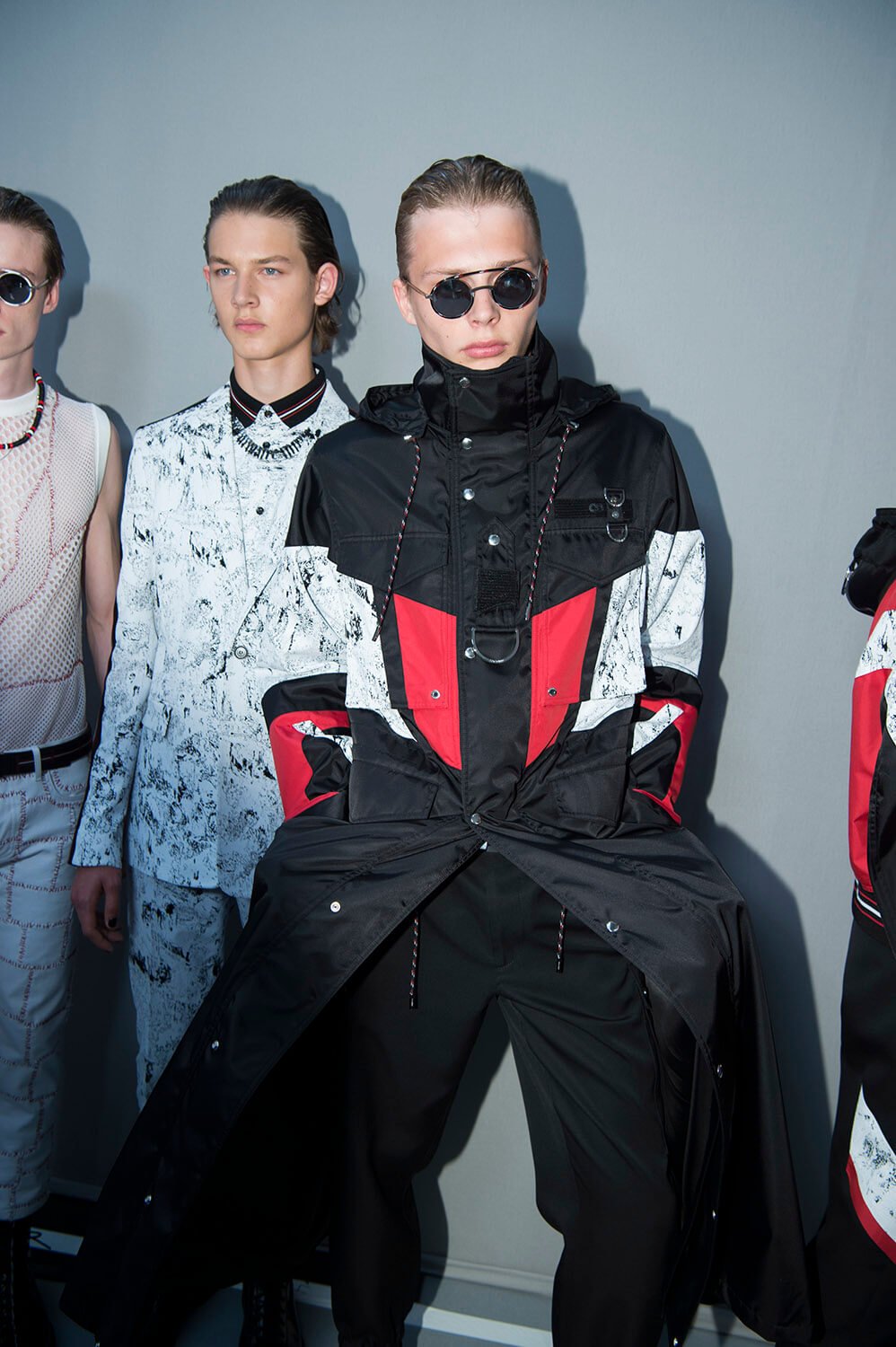 A fairground remembered from his time as a student at the Antwerp Academy, sat slap bang in the middle of Kris Van Assche’s Spring Dior Homme show. It was a flashback, he said, and a colourful backdrop for a band of young rebels dressed in black. The clothes riffed on New Wave, goth, punk, and a touch of sport to bring them bang up to date for today. Van Assche likes to mix his references, blurring lines and making unexpected connections, like the sleek suits with oversized skater trousers trailing, or sporty parkas infused with the graphicism and colour of a New Wave album sleeve. Of course it was all done through the absolute luxury of Dior – custom woven jacquards, embroideries and hand-finished seams, a set of black leather bleached like faded denim (don’t try to DIY that). The youthful attitude was all-important. You’d never guess Dior was about to turn 70 years old when it’s got this kind of energy.