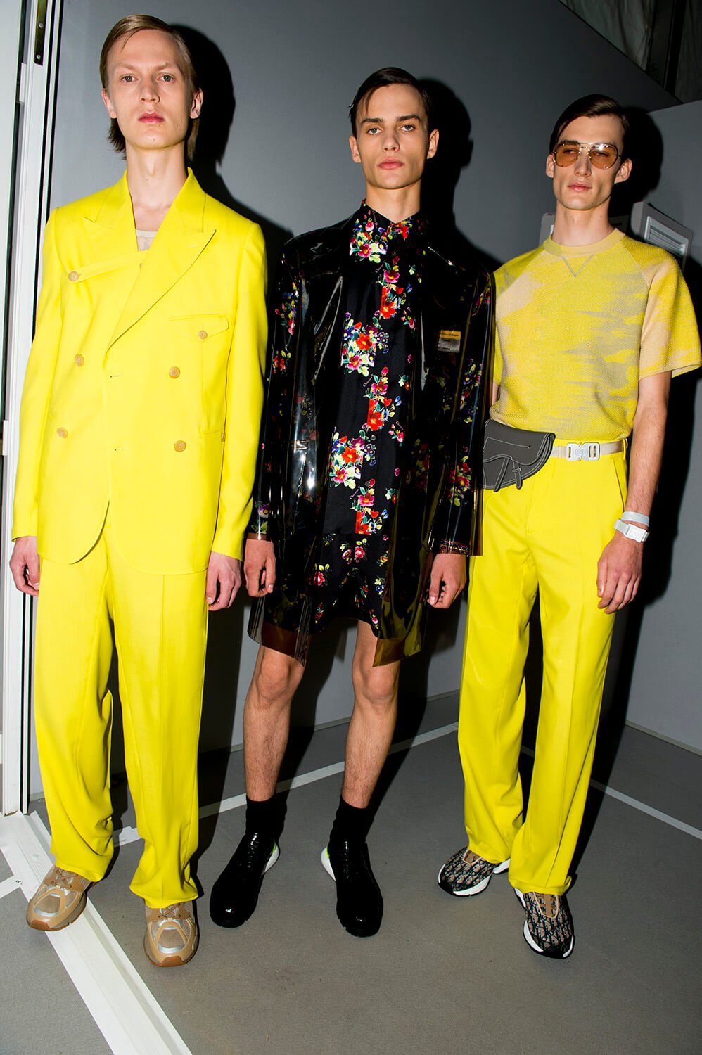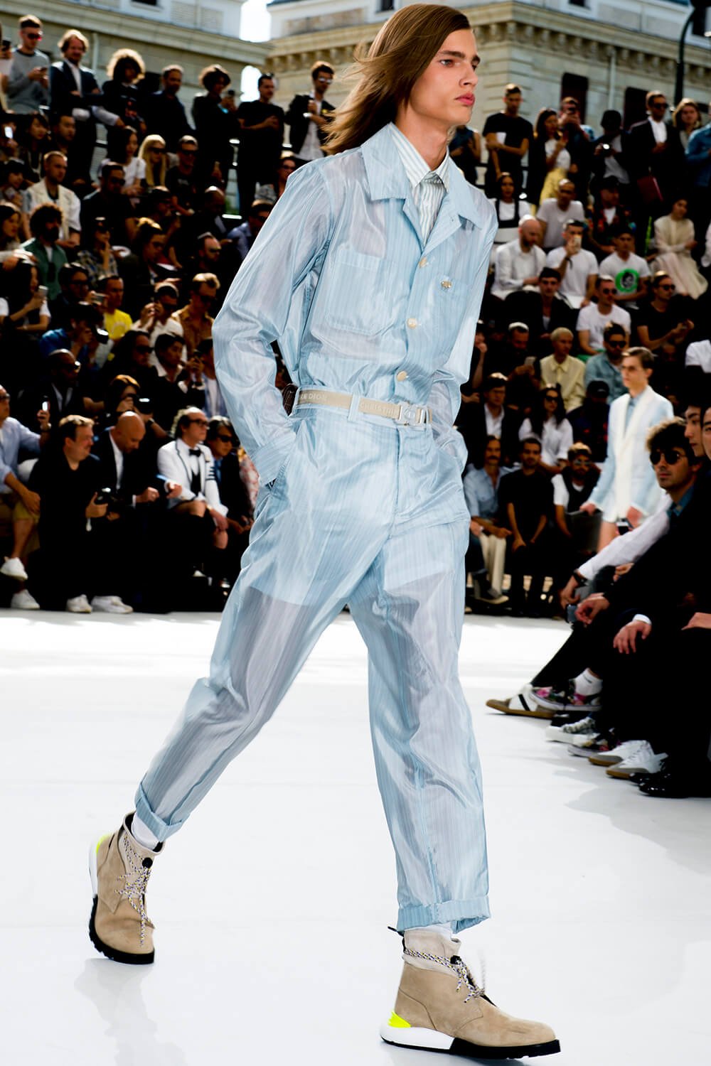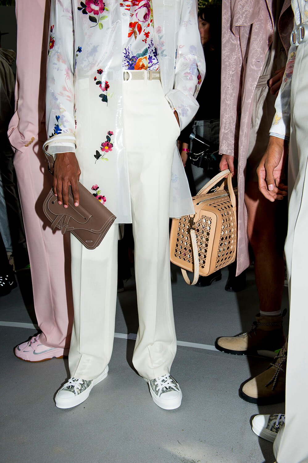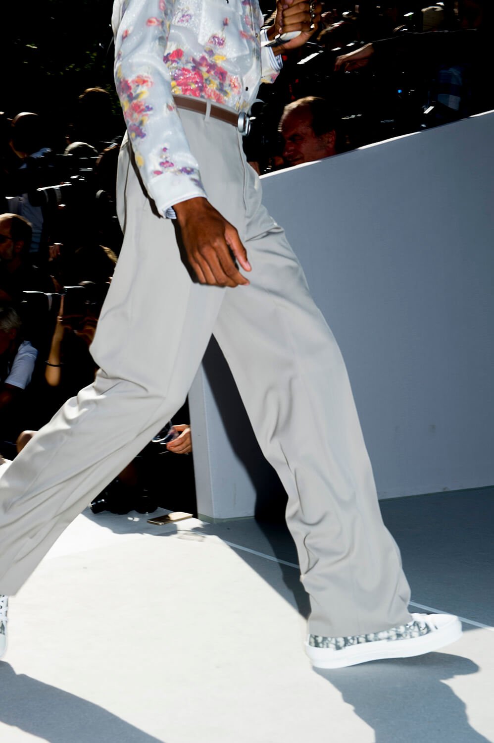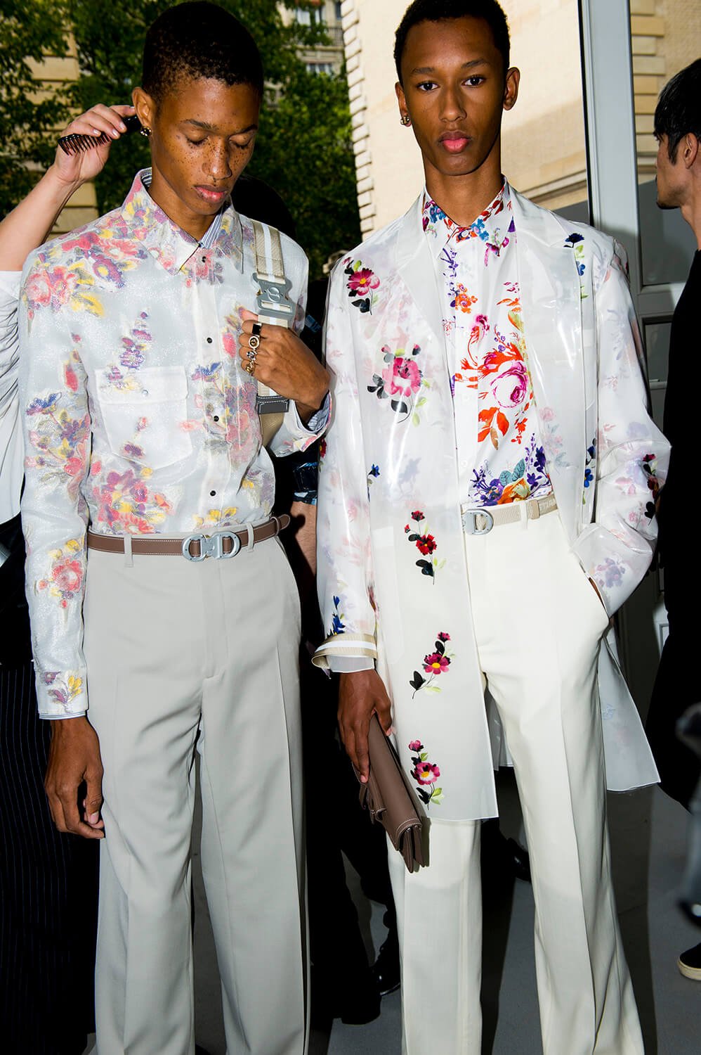 The designer Kim Jones has been releasing snapshots of his collaboration with the artist Brian Donnelly for the past few days on Instagram. Today the prolific social media fan enlisted his friends including Kim Kardashian A$AP Rocky and Skeptagram to pose with Donnelly’s knitted Kaws dolls, the dolls were wearing tiny black Dior Homme suits. Donnelly is the kind of contemporary artist and personality Jones has on direct dial; the two are also good friends. Jones is a truly modern designer who embraces contemporary culture and has an instinctive feel for what’s happening in the great “out there” before it reaches the rest of us. He surrounds himself too with a raft of creatives like his friend and jewellery designer Yoon Ambush and the milliner Stephen Jones. They’re all part of the exciting network of talent he incorporates into his design world. And all that just adds to the anticipation and excitement surrounding Jones’ first show as the new Creative Director of Dior Men. ‘Kim Jones fuses reference to Haute Couture with sportswear’ read the show notes with ‘music by Diplo’. Translated on the catwalk this meant softer shaped suits with a rounded and elegant shoulder line; a shirt had a cowl neck at the back. Another section, based on M. Dior’s love of his garden had echoes of “femme fleurs”, a print used in his women’s couture line. Indeed the whole wardrobe had a couture sensibility. Jones has spent hours in the archive at Dior HQ looking at “the master’s” work and this afternoon it all came together in a cohesive modern wardrobe. A quick word on bags: bread and butter business at the French house. The saddle bag, that famous shape based on a horse’s saddle, and touted by celebrities galore in the ‘90s, and more recently resurrected for the Dior womenswear line to become summer’s new it-Bag, is now available for men, but this time it’s a bum bag in grey leather. The whole thing was a tour de force and exceptional in every way. We feel so proud of Kim Jones here at 10: he’s an incredible designer.