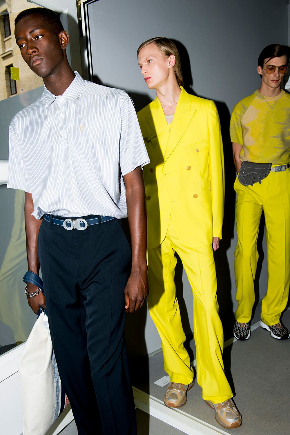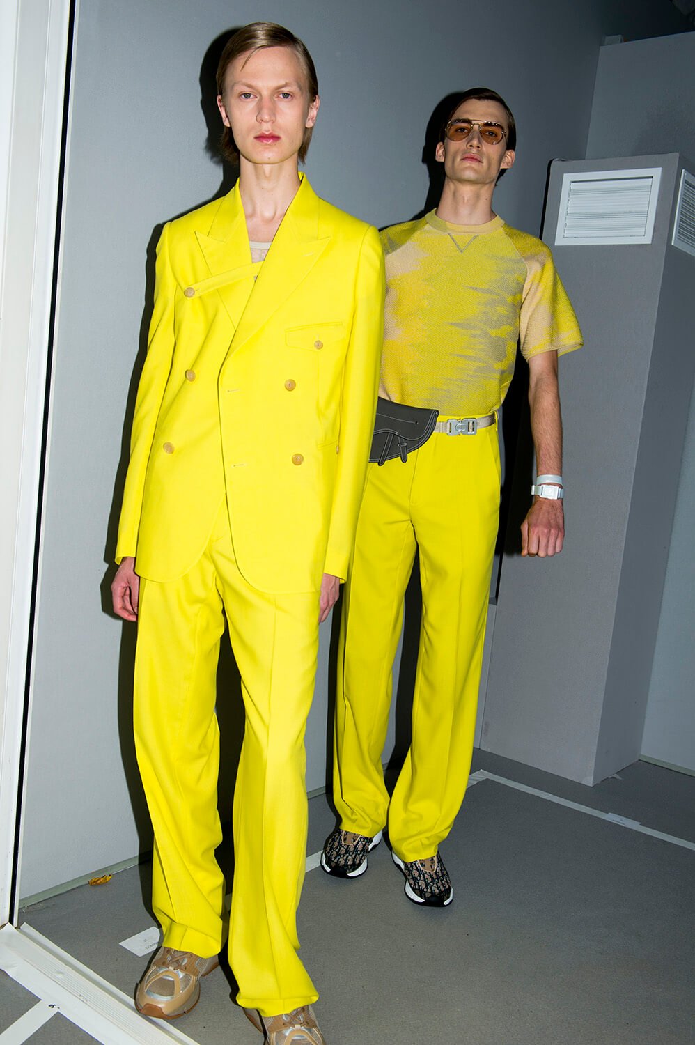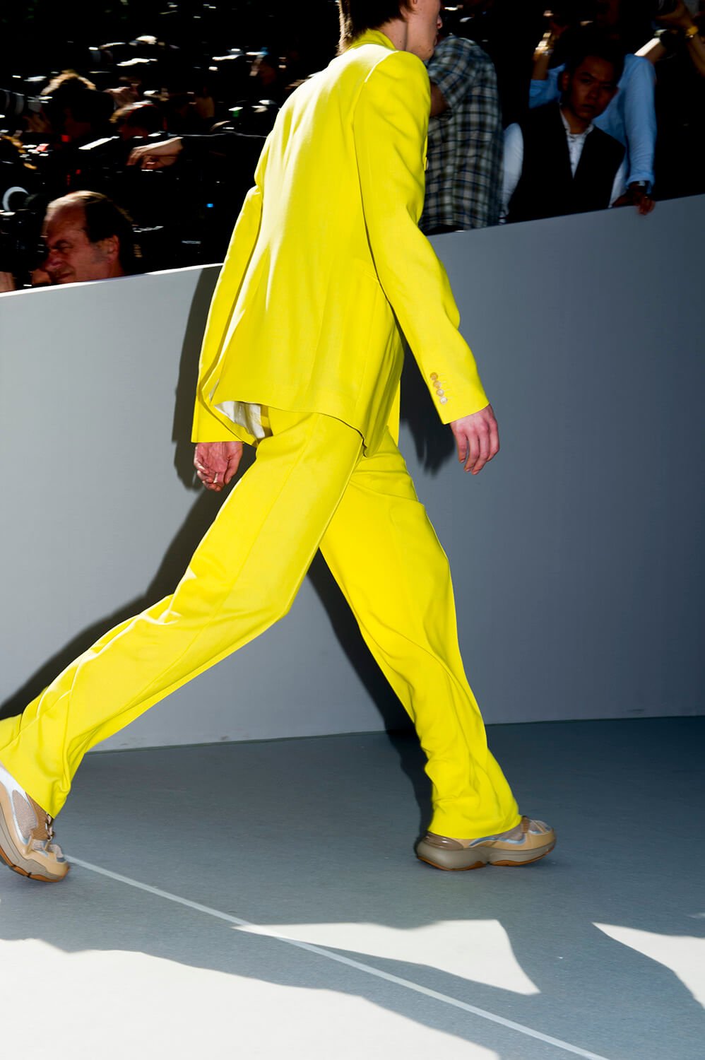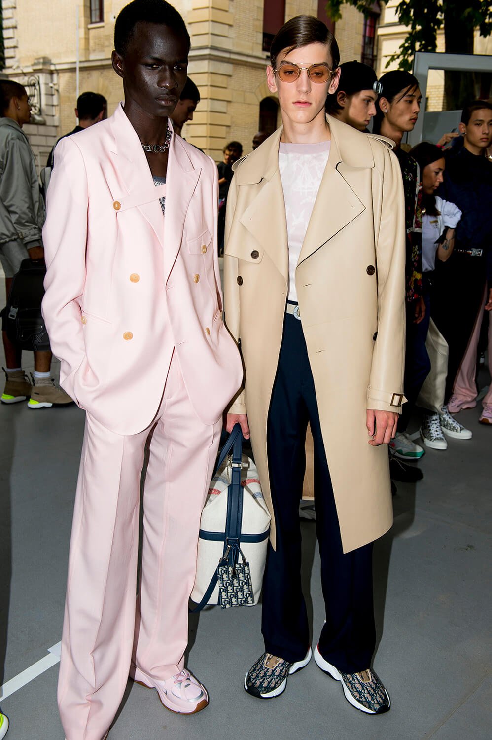 The designer Kim Jones has been releasing snapshots of his collaboration with the artist Brian Donnelly for the past few days on Instagram. Today the prolific social media fan enlisted his friends including Kim Kardashian A$AP Rocky and Skeptagram to pose with Donnelly’s knitted Kaws dolls, the dolls were wearing tiny black Dior Homme suits. Donnelly is the kind of contemporary artist and personality Jones has on direct dial; the two are also good friends. Jones is a truly modern designer who embraces contemporary culture and has an instinctive feel for what’s happening in the great “out there” before it reaches the rest of us. He surrounds himself too with a raft of creatives like his friend and jewellery designer Yoon Ambush and the milliner Stephen Jones. They’re all part of the exciting network of talent he incorporates into his design world. And all that just adds to the anticipation and excitement surrounding Jones’ first show as the new Creative Director of Dior Men. ‘Kim Jones fuses reference to Haute Couture with sportswear’ read the show notes with ‘music by Diplo’. Translated on the catwalk this meant softer shaped suits with a rounded and elegant shoulder line; a shirt had a cowl neck at the back. Another section, based on M. Dior’s love of his garden had echoes of “femme fleurs”, a print used in his women’s couture line. Indeed the whole wardrobe had a couture sensibility. Jones has spent hours in the archive at Dior HQ looking at “the master’s” work and this afternoon it all came together in a cohesive modern wardrobe. A quick word on bags: bread and butter business at the French house. The saddle bag, that famous shape based on a horse’s saddle, and touted by celebrities galore in the ‘90s, and more recently resurrected for the Dior womenswear line to become summer’s new it-Bag, is now available for men, but this time it’s a bum bag in grey leather. The whole thing was a tour de force and exceptional in every way. We feel so proud of Kim Jones here at 10: he’s an incredible designer.