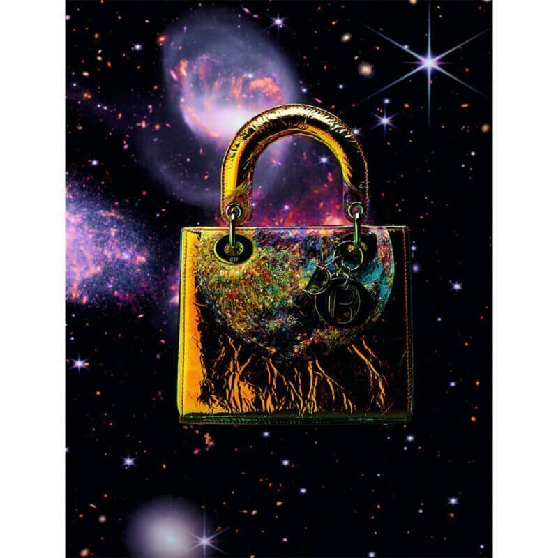 “My works incite the viewer to explore oneself and the world in a constant search for quietude,” she says. “Through the repetition of actions, I want to achieve a meditative mind state, so that the resulting work transfers this state of quiet to the viewer.” The artist describes her practice as “an homage to delicacy”. Taking her existing artwork as the source for her Lady Dior designs, Kim said, “I wanted to put the emphasis on the sweeter elements of femininity and dreams, through the interplay of colour.” She has produced four different bags, with the one shown here based one of her collages. “I could not believe the way Dior’s team executed it. The craftsmanship is amazing!” she says of the Micro Lady Dior bag, which is embroidered with multicoloured threads, lurex and crystals.