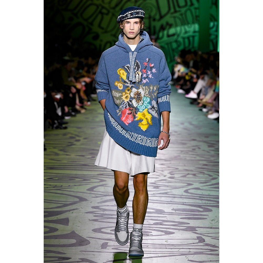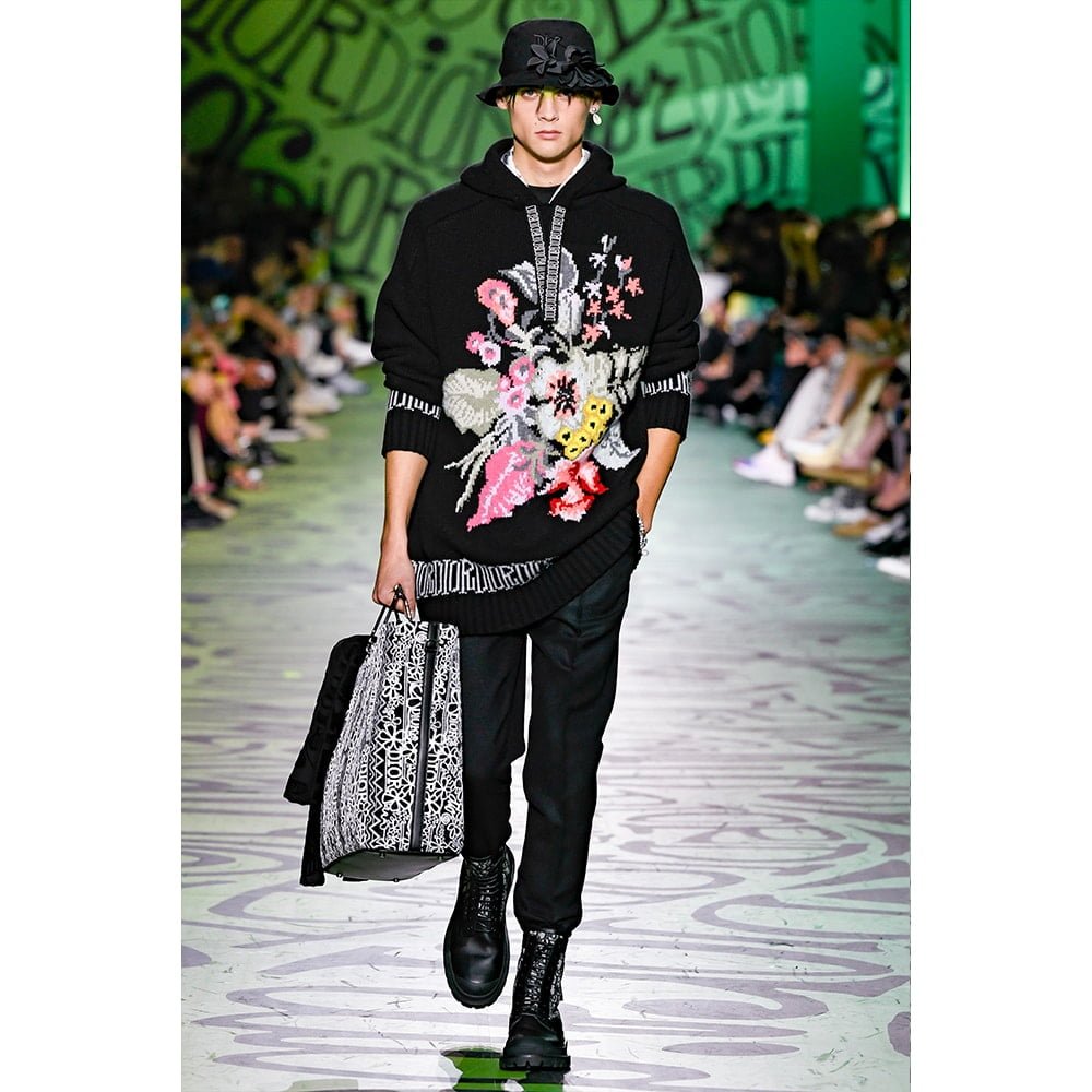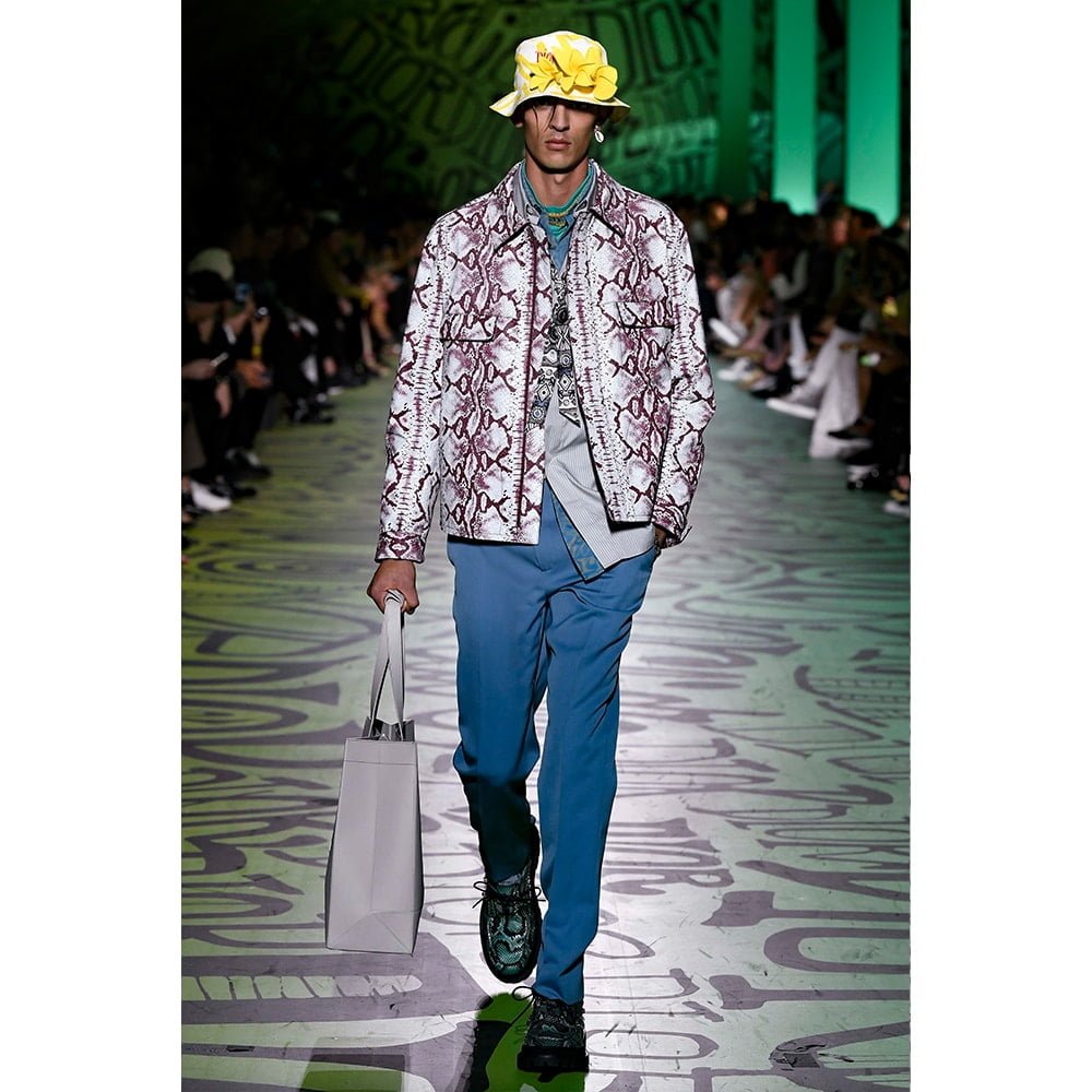 As the collection went on, there was a constant interaction between fine tailoring and casual codes. The outcome was a full dictionary of sartorial elements executed in unexpected ways – from metallic ponchos to multi-coloured snake twinsets and oversized floral knits reminiscent of granny’s framed crochet. There was a definite sense of humour which Jones allowed to interrupt his otherwise highly intellectualised ideas of menswear. With plenty things to shop for and even more to dream of, Dior men’s Fall 2020 show was about the potential of men’s style and yet another chapter of worldly interpretations. Where to next? Who knows, but wherever the Dior men’s circus heads, the show is guaranteed.