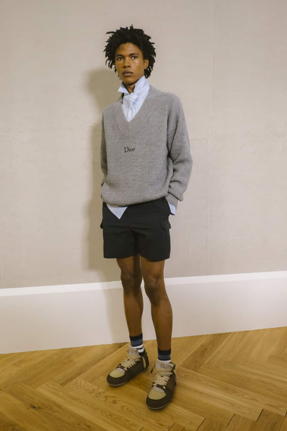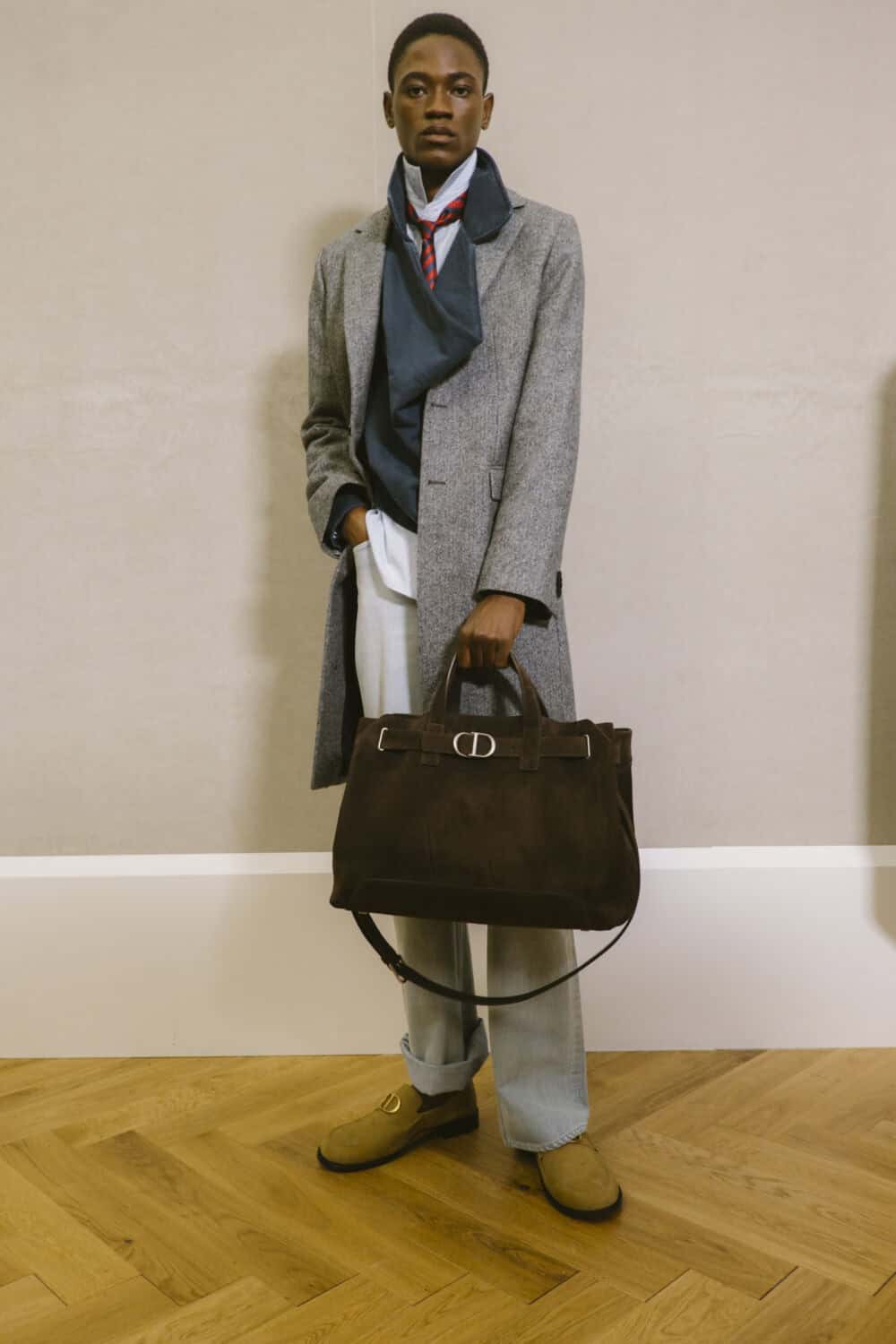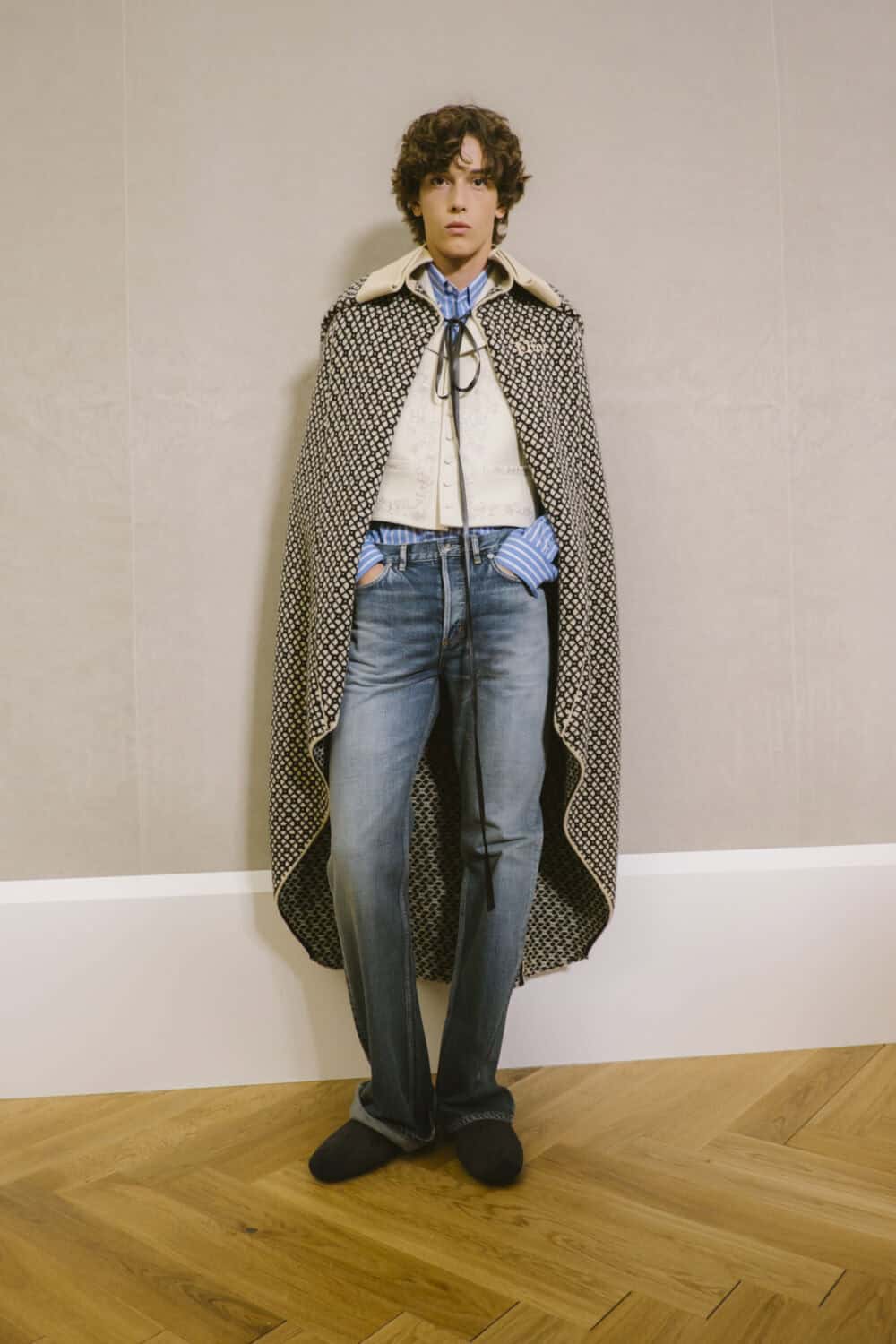 The collection was about redefining formal wear to transform what was once considered unattainable into garments grounded in reality. It started with studying “classic tropes of class”, like 18th-century waistcoats which walked alongside patchworked jeans, or capes that were draped over untucked pinstriped shirts and ties that hung loosely at the neck as if worn by naughty school boys. He described his approach as a “reconstruction of formality”, positioning military jackets and cable knit jumpers into new contexts that felt modern and fresh. Save for a series of cargo three-quarter lengths ballooned to resemble the shape of panniers, paired excellently with plaid shirts or preppy takes on the Dior Bar jacket (crafted from Donegal tweed), the avant-garde that peppered previous Anderson collections – he is the man, after all, who turned cars into dresses and made stilettos with heels shaped like cracked eggs – was replaced by a study of classics, rethought and rewritten. A sentiment echoed in the totes that populated the show, each stamped with covers of beloved books like In Cold Blood by Truman Capote and Bram Stoker’s Dracula. All good stories must begin with a turning of the page. Let Anderson’s Dior adventures begin.