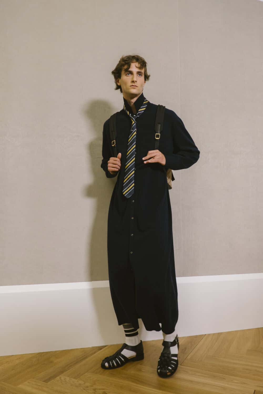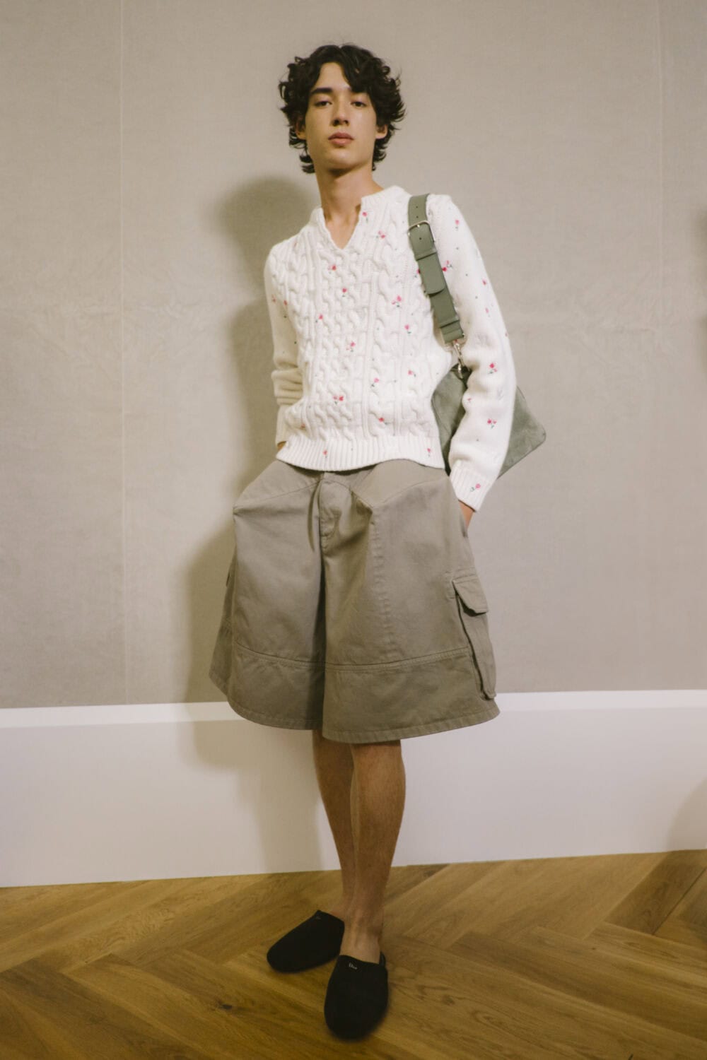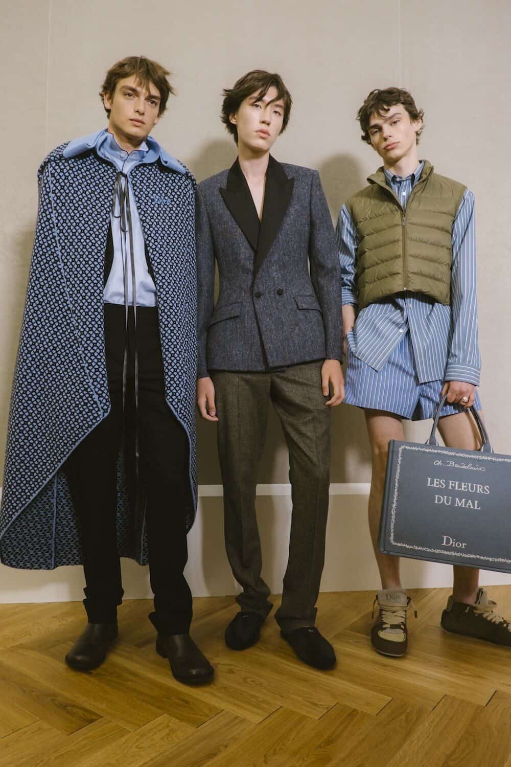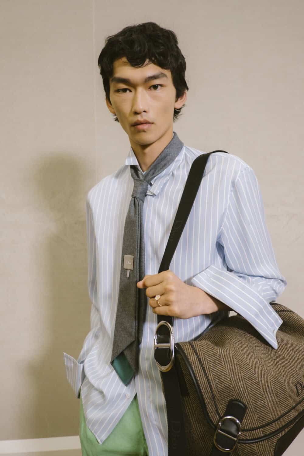 The collection was about redefining formal wear to transform what was once considered unattainable into garments grounded in reality. It started with studying “classic tropes of class”, like 18th-century waistcoats which walked alongside patchworked jeans, or capes that were draped over untucked pinstriped shirts and ties that hung loosely at the neck as if worn by naughty school boys. He described his approach as a “reconstruction of formality”, positioning military jackets and cable knit jumpers into new contexts that felt modern and fresh. Save for a series of cargo three-quarter lengths ballooned to resemble the shape of panniers, paired excellently with plaid shirts or preppy takes on the Dior Bar jacket (crafted from Donegal tweed), the avant-garde that peppered previous Anderson collections – he is the man, after all, who turned cars into dresses and made stilettos with heels shaped like cracked eggs – was replaced by a study of classics, rethought and rewritten. A sentiment echoed in the totes that populated the show, each stamped with covers of beloved books like In Cold Blood by Truman Capote and Bram Stoker’s Dracula. All good stories must begin with a turning of the page. Let Anderson’s Dior adventures begin.