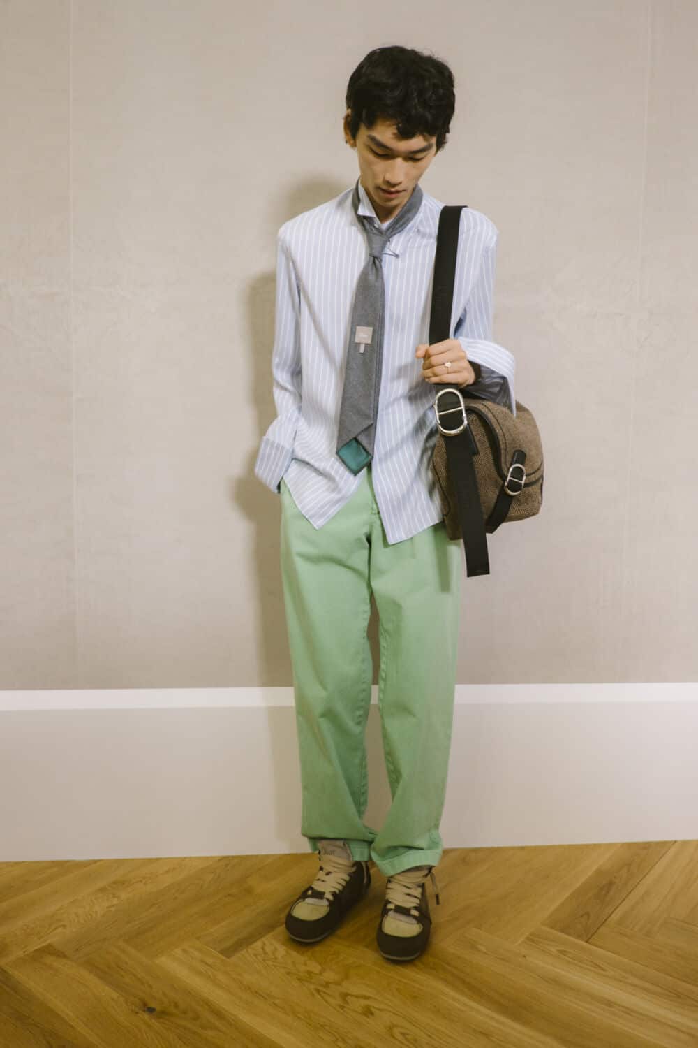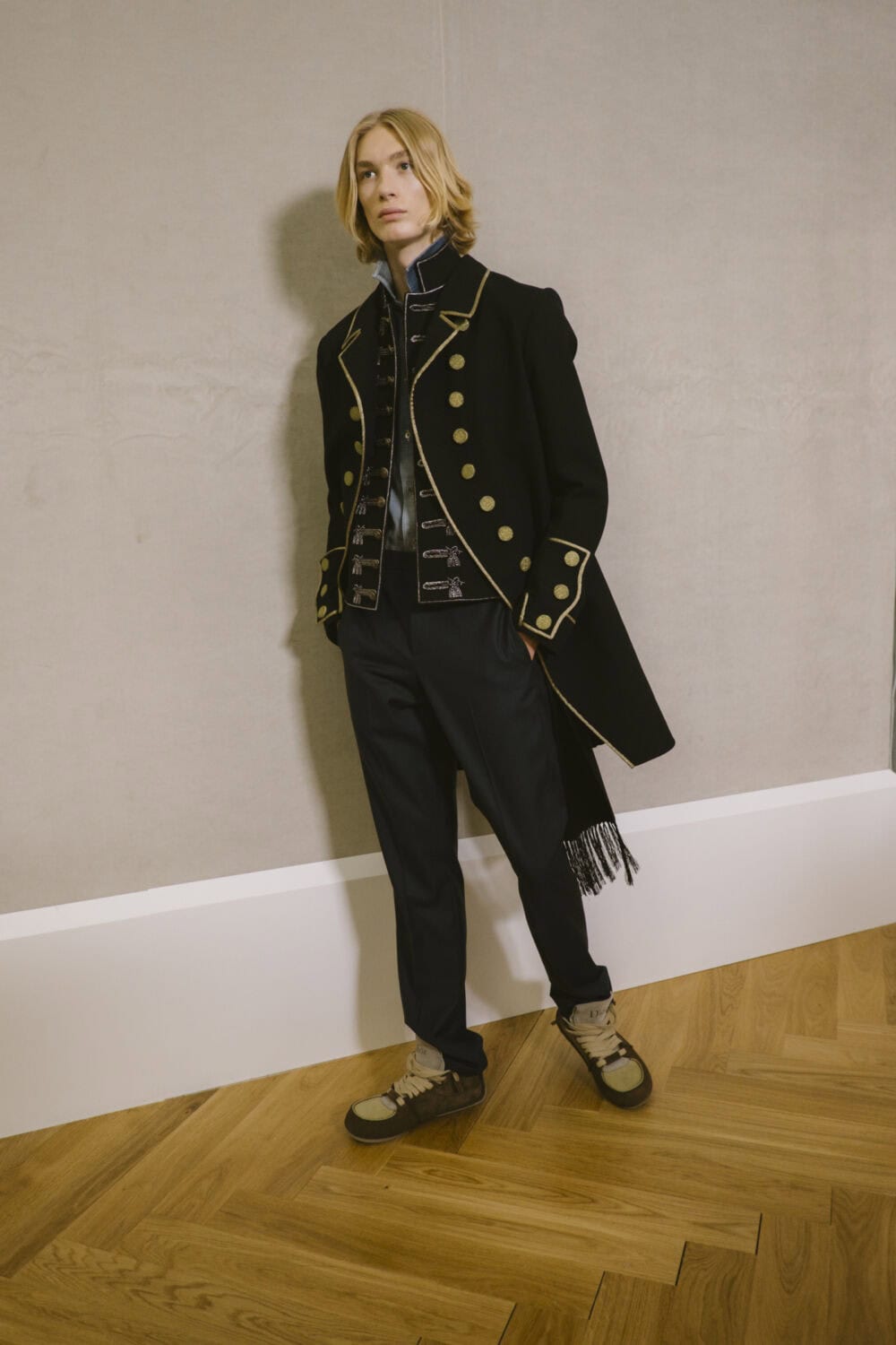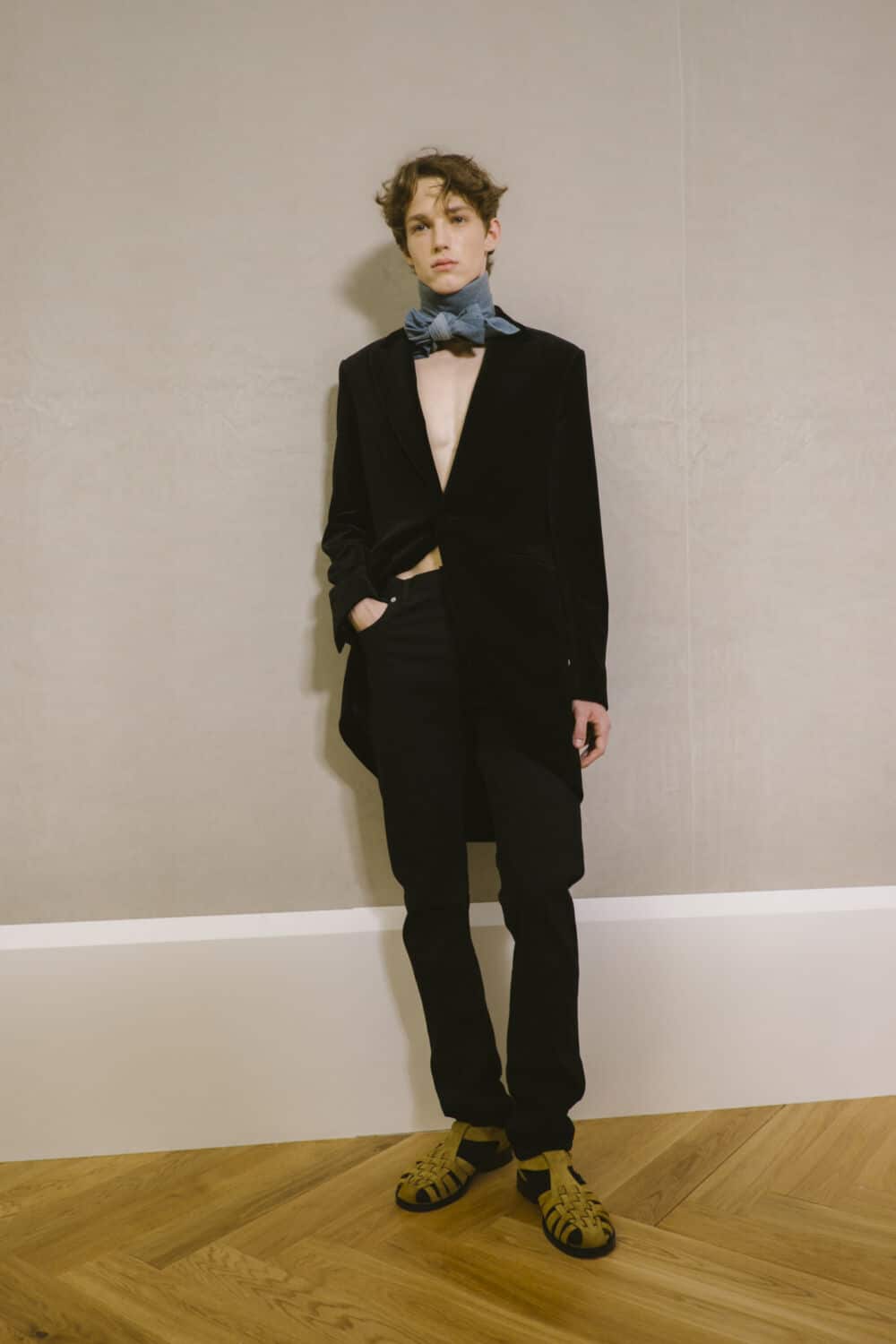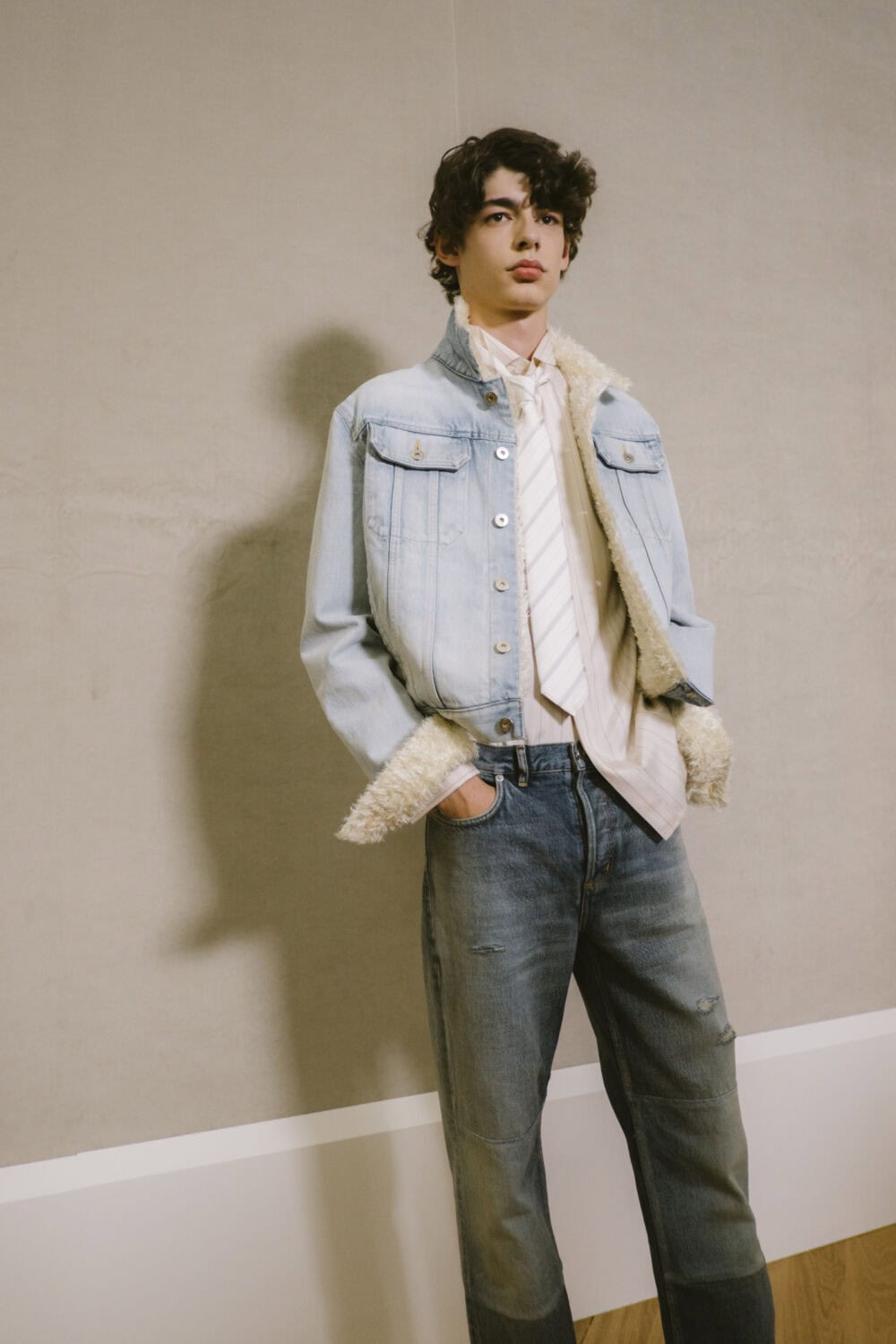 For the show, he built his own pseudo gallery that mimicked on the interior of Berlin’s Gemäldegalerie, with two paintings from 18th-century artist Jean Siméon Chardin lining the walls. (He had chosen Chardin, he said, as the artist repelled grandeur, favouring instead “sincerity and empathy” in his work.) The industry’s biggest designers and photographers as well as stars in the worlds of music and film (like Drew Starkey and Daniel Craig, many of whom have been connected to Anderson since his time at Loewe) were there in attendance to witness Anderson’s first act.