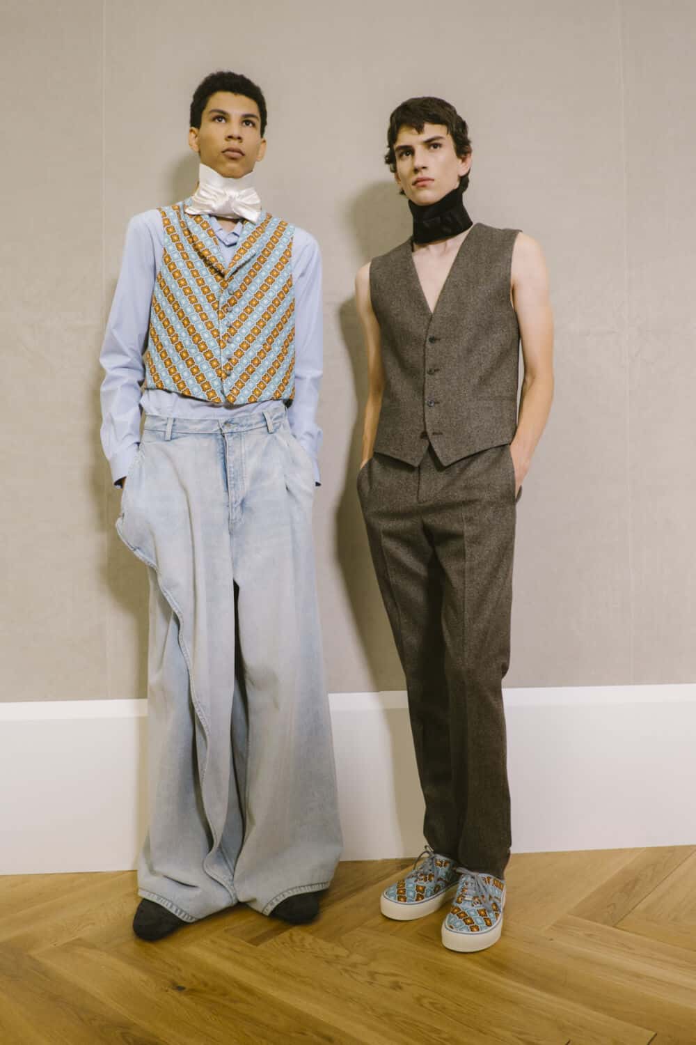 Since the beginning of his career, Jonathan Anderson has used menswear to write his design agenda. He launched his namesake label, JW Anderson, originally as a menswear line, famously causing tabloid commotion with one of his early collections for putting boys in ruffled shorts that resembled skirts. Most wouldn’t bat an eyelid at such garments appearing on the catwalk today, but back in the early 2010s, it was Anderson who set a precedent of distorting and reconfiguring menswear tropes to free them of strict binaries, creating garments that thrilled with excitement and innovation.