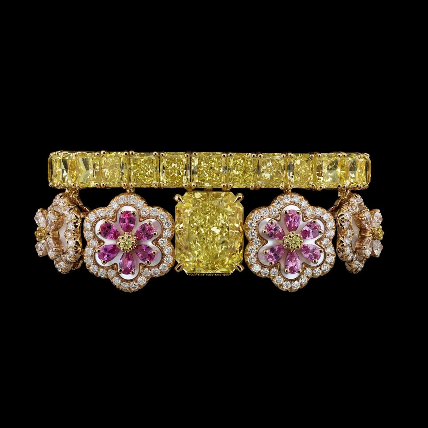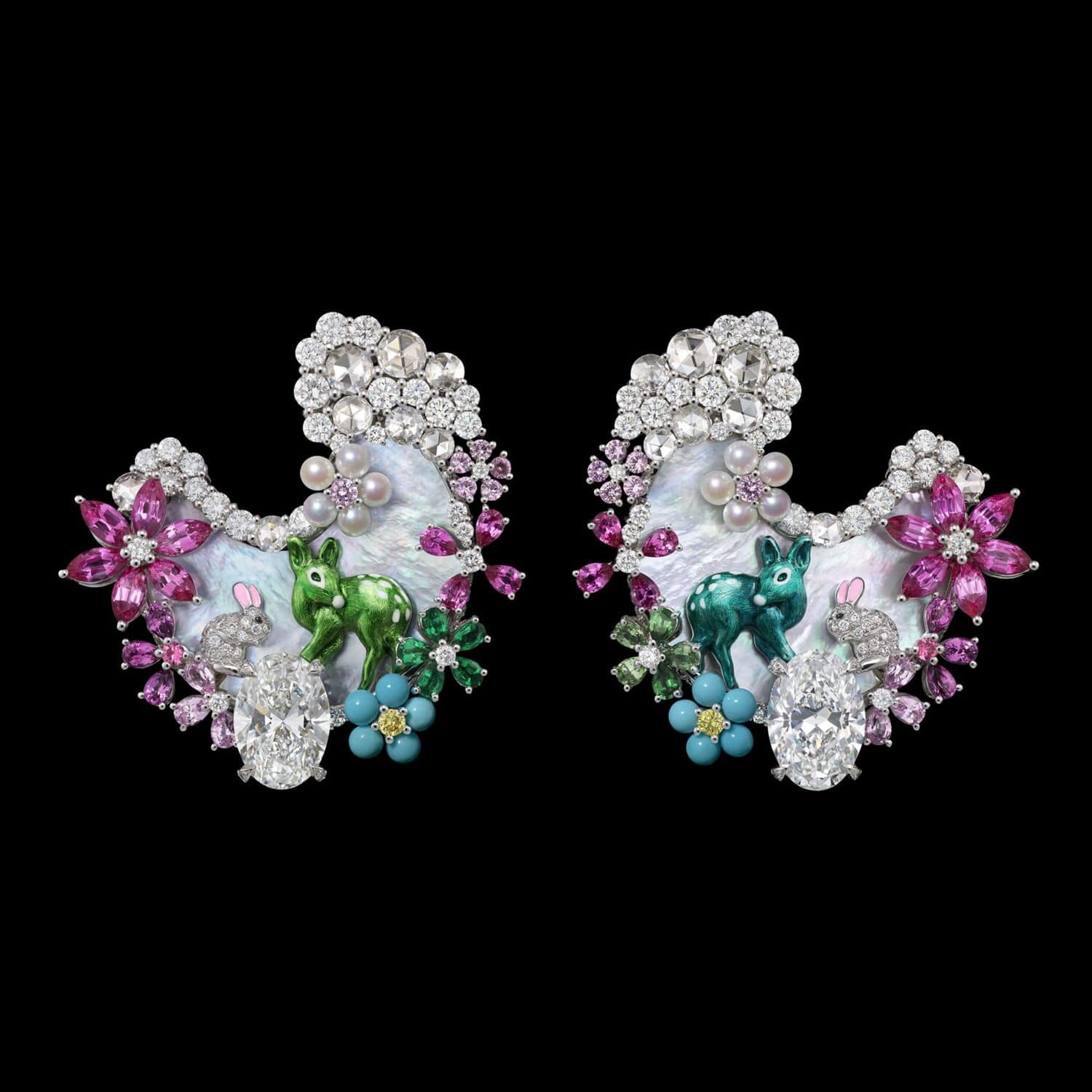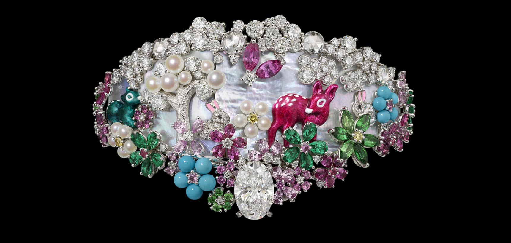 Structured as a poetic triptych, Diorexquis transports viewers through enchanting landscapes, delicate bouquets and fabulous balls – each scene a miniature marvel, layered with precious stones and storytelling. The designs unfold like visual fairytales: gardens bloom in gemstone hues, icy winters shimmer in diamonds and festive nights glow in golden splendor.