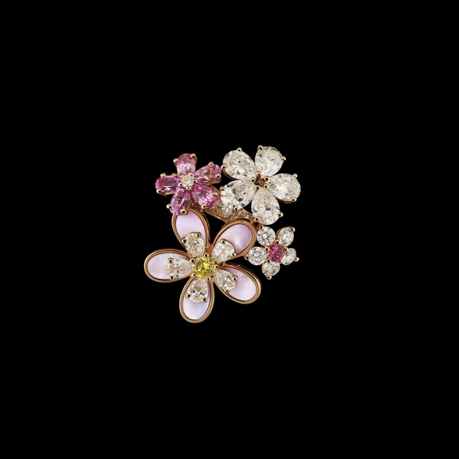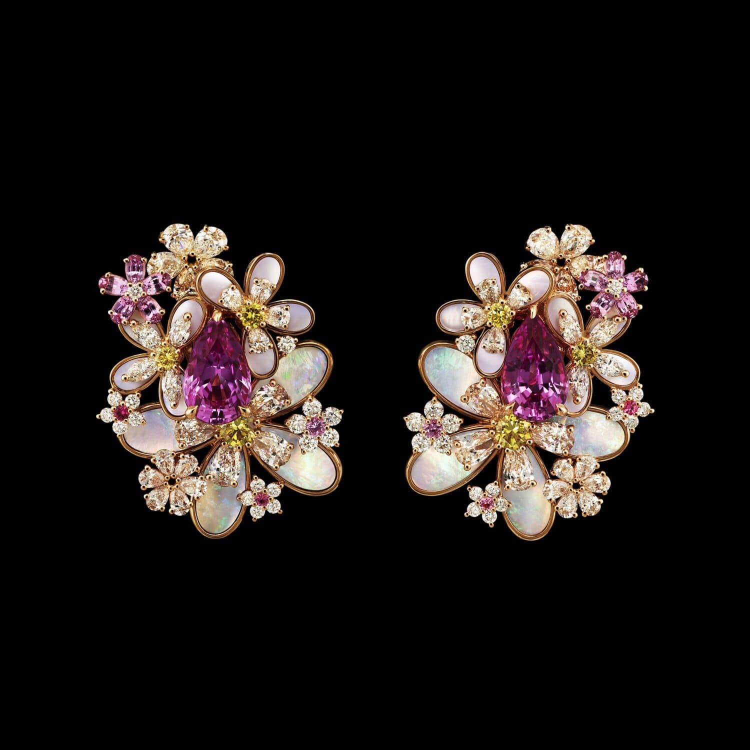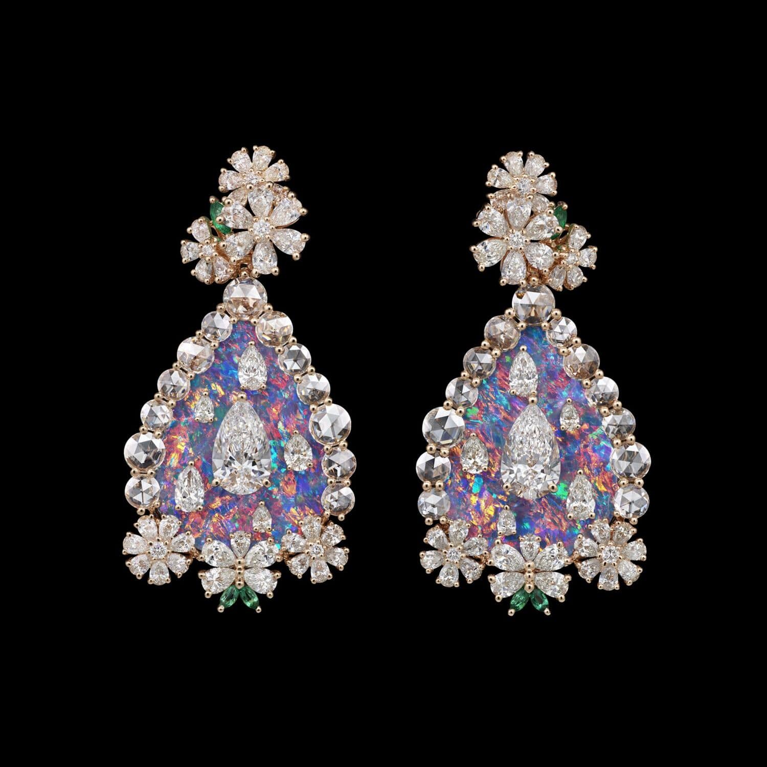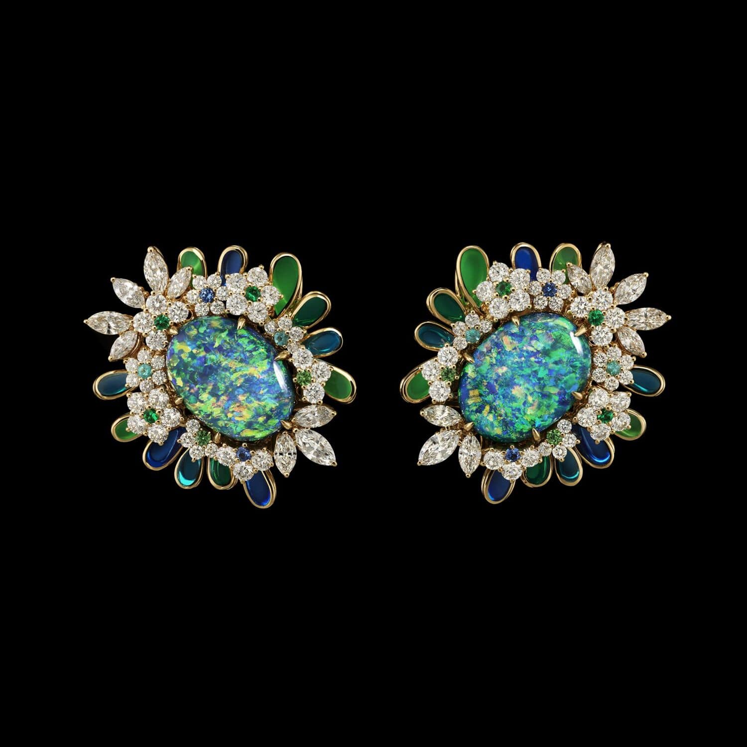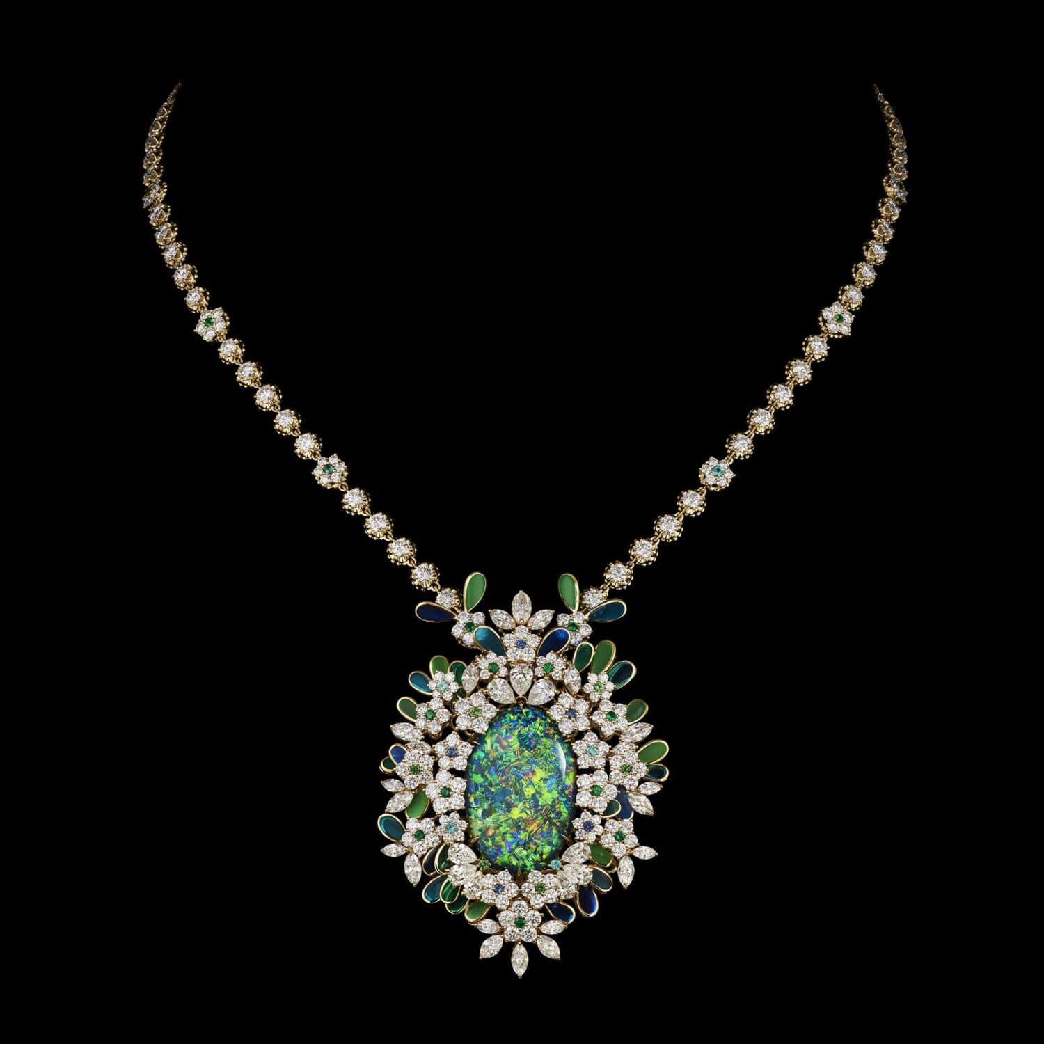 At the heart of the collection lies a bold play of textures and innovative techniques. Opal doublets – where opals are fused with onyx, turquoise or mother-of-pearl – create mesmerising, shifting tones reminiscent of skies or water. The intricate plique-à-jour technique, an ancient artform reimagined through Dior’s signature lacquer, delivers translucent, stained glass-like compositions, especially in the floral motifs.