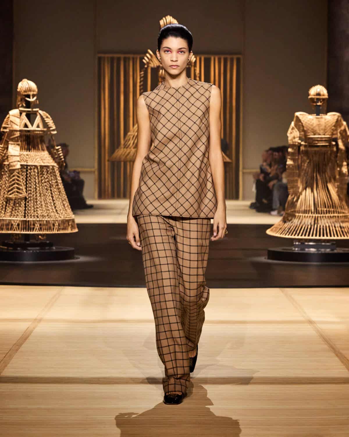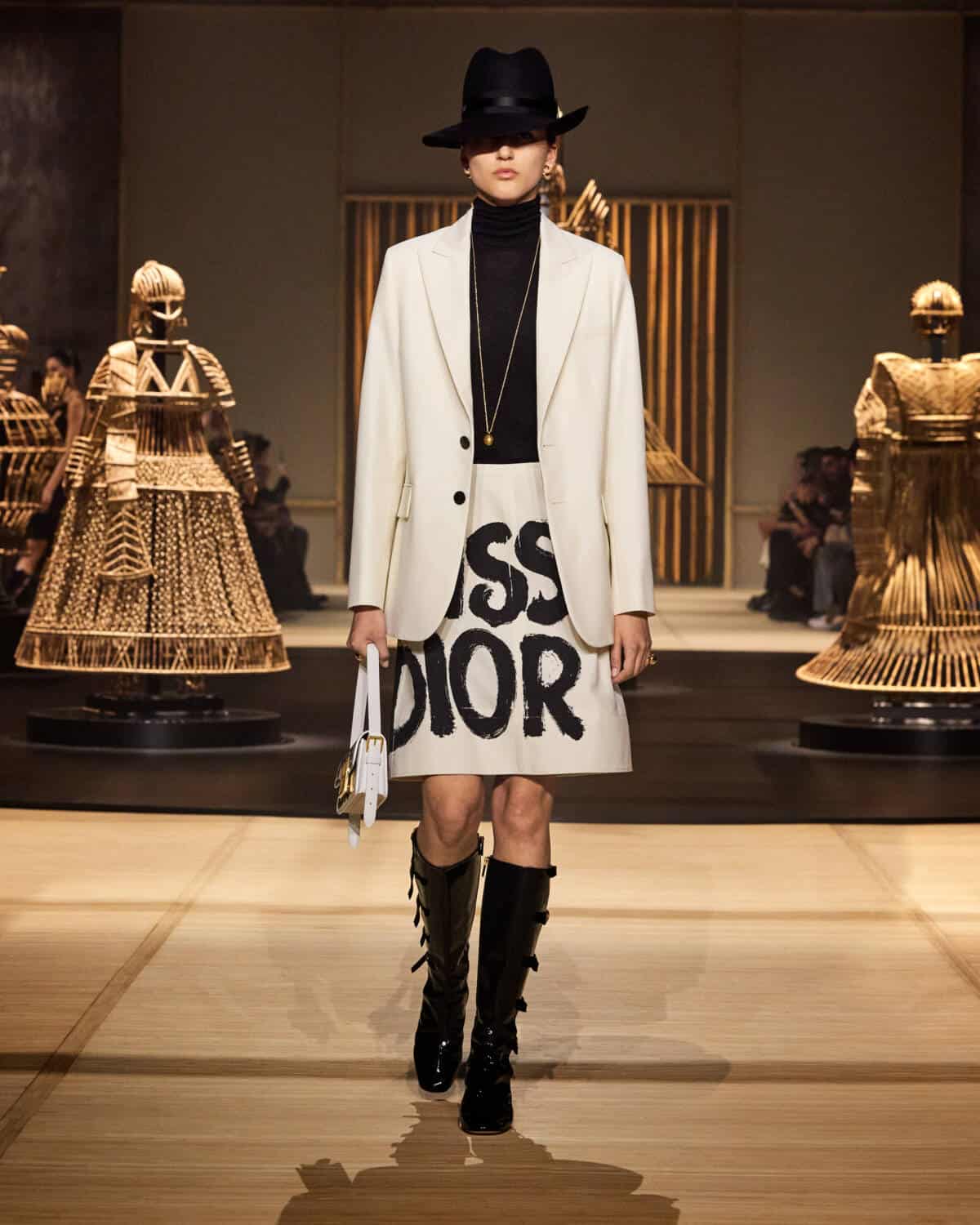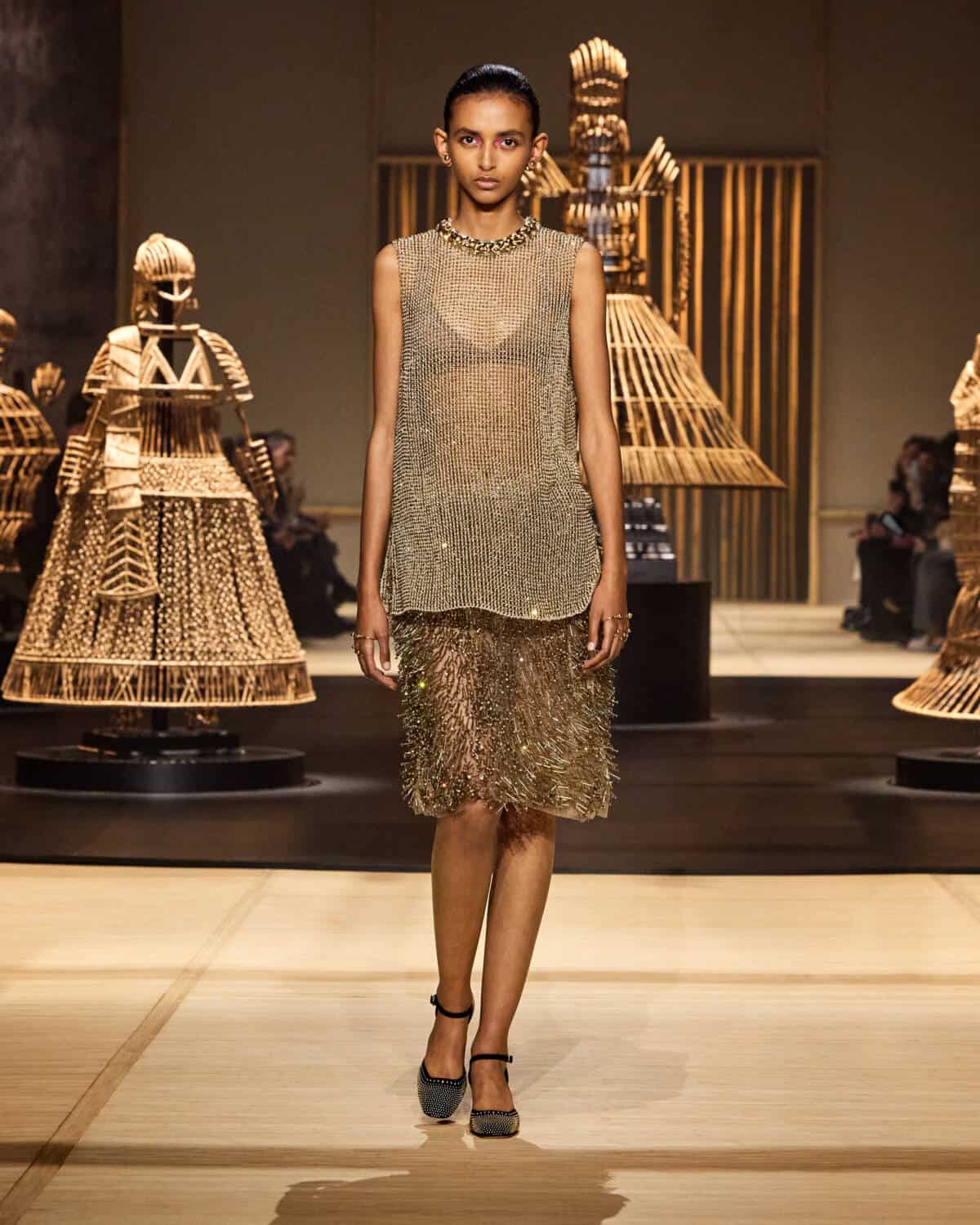 The models walked in a special catwalk installation created by Mumbai artist Shakuntala Kulkarni, whose cage-like sculptures represent armour for women, to protect them from the harms of patriarchy and misogyny. Chiuri doesn’t believe clothes exist in a vacuum. She has always brought a feminist point of view to Dior, but this collection with its youthful looks and optimistic mood, never felt heavy.