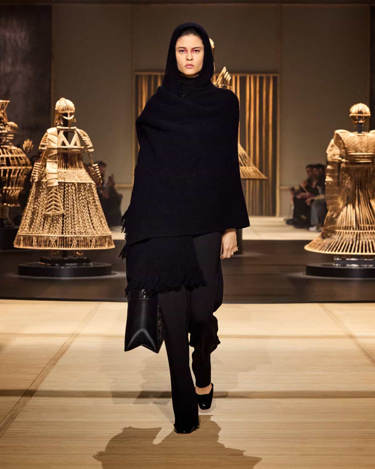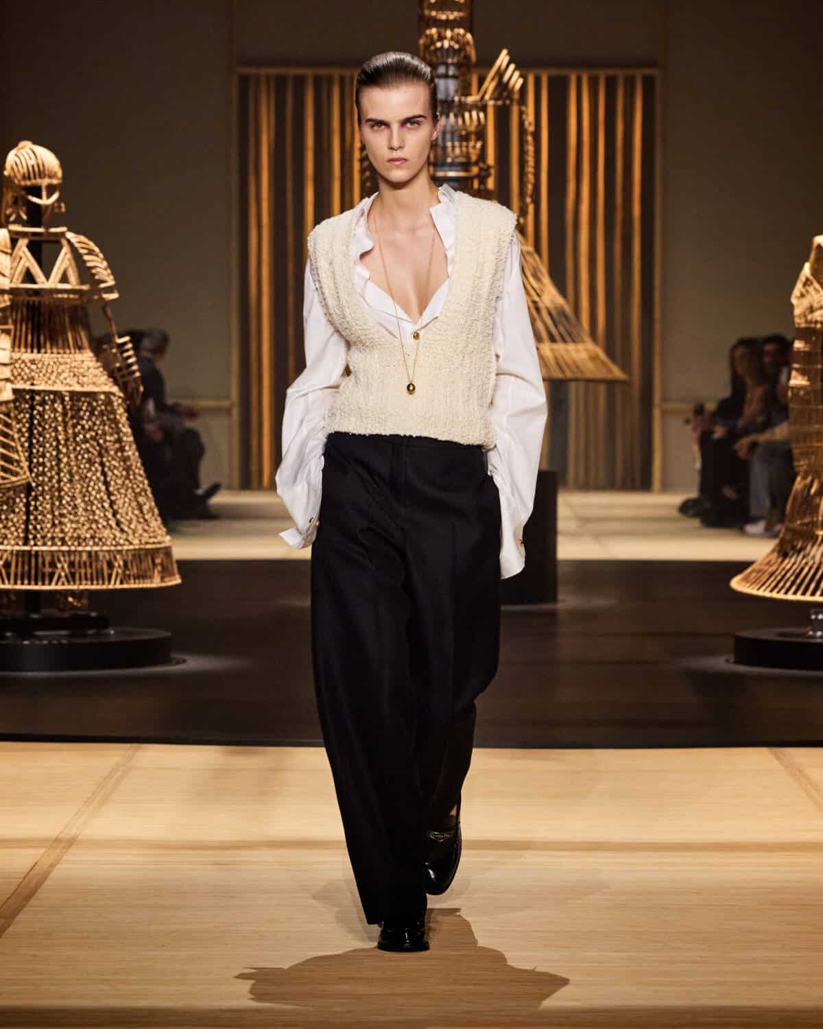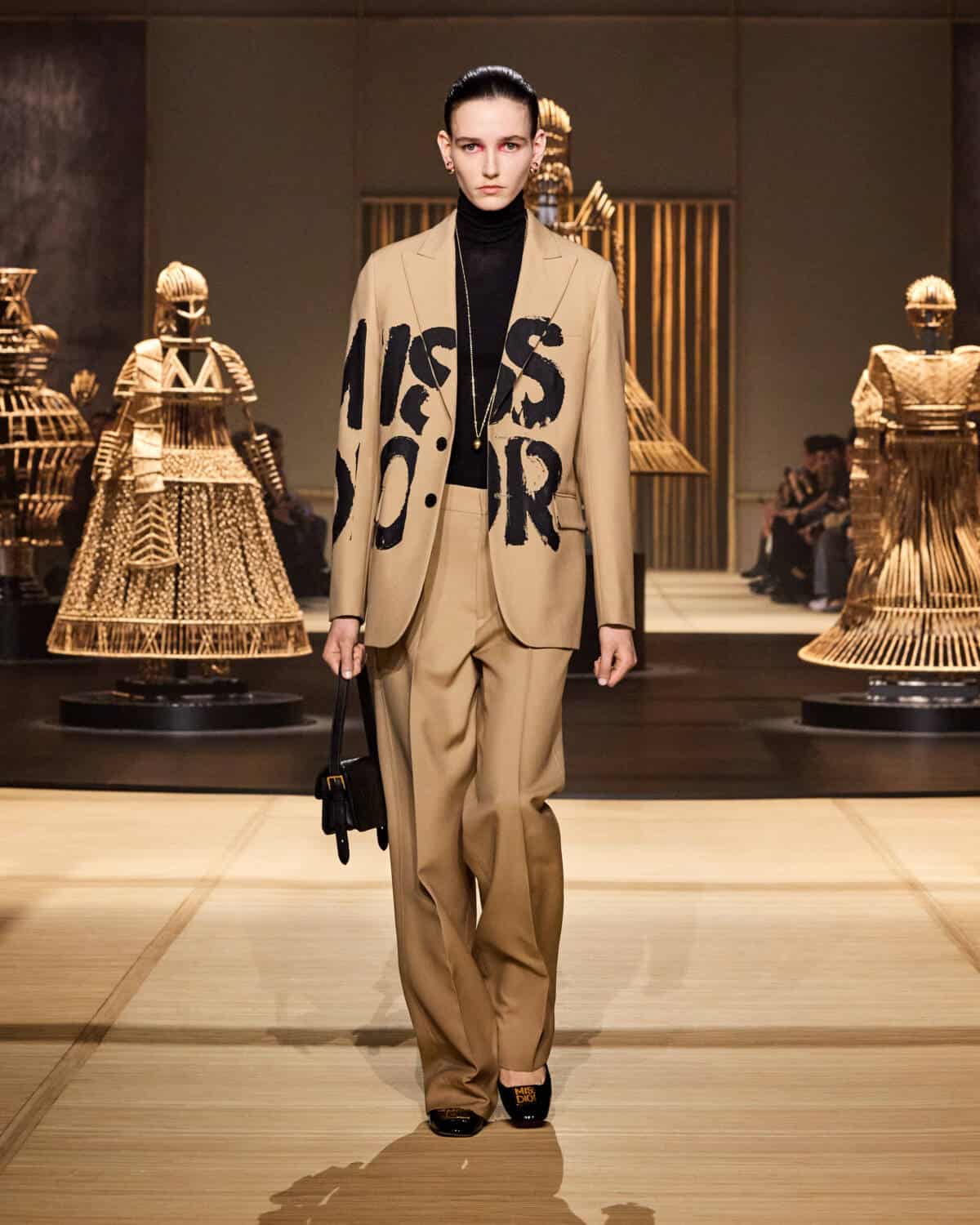 The models walked in a special catwalk installation created by Mumbai artist Shakuntala Kulkarni, whose cage-like sculptures represent armour for women, to protect them from the harms of patriarchy and misogyny. Chiuri doesn’t believe clothes exist in a vacuum. She has always brought a feminist point of view to Dior, but this collection with its youthful looks and optimistic mood, never felt heavy.