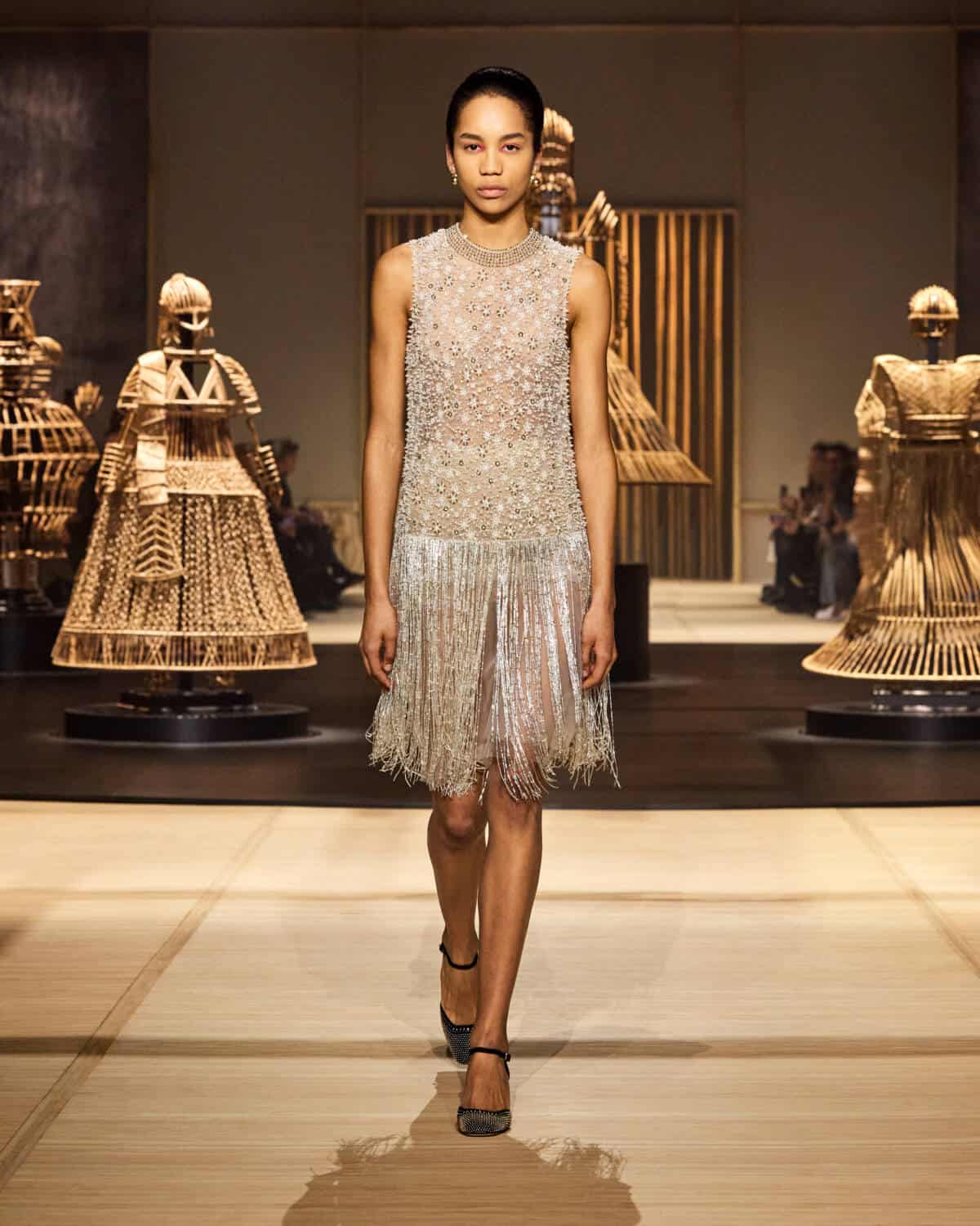 For evening, the look referenced an earlier generation of emancipated women, the 1920s flappers, with crystal fringed drop waist dancing dresses and dazzling two-piece party sets. Miss Dior knows how to enjoy life.
