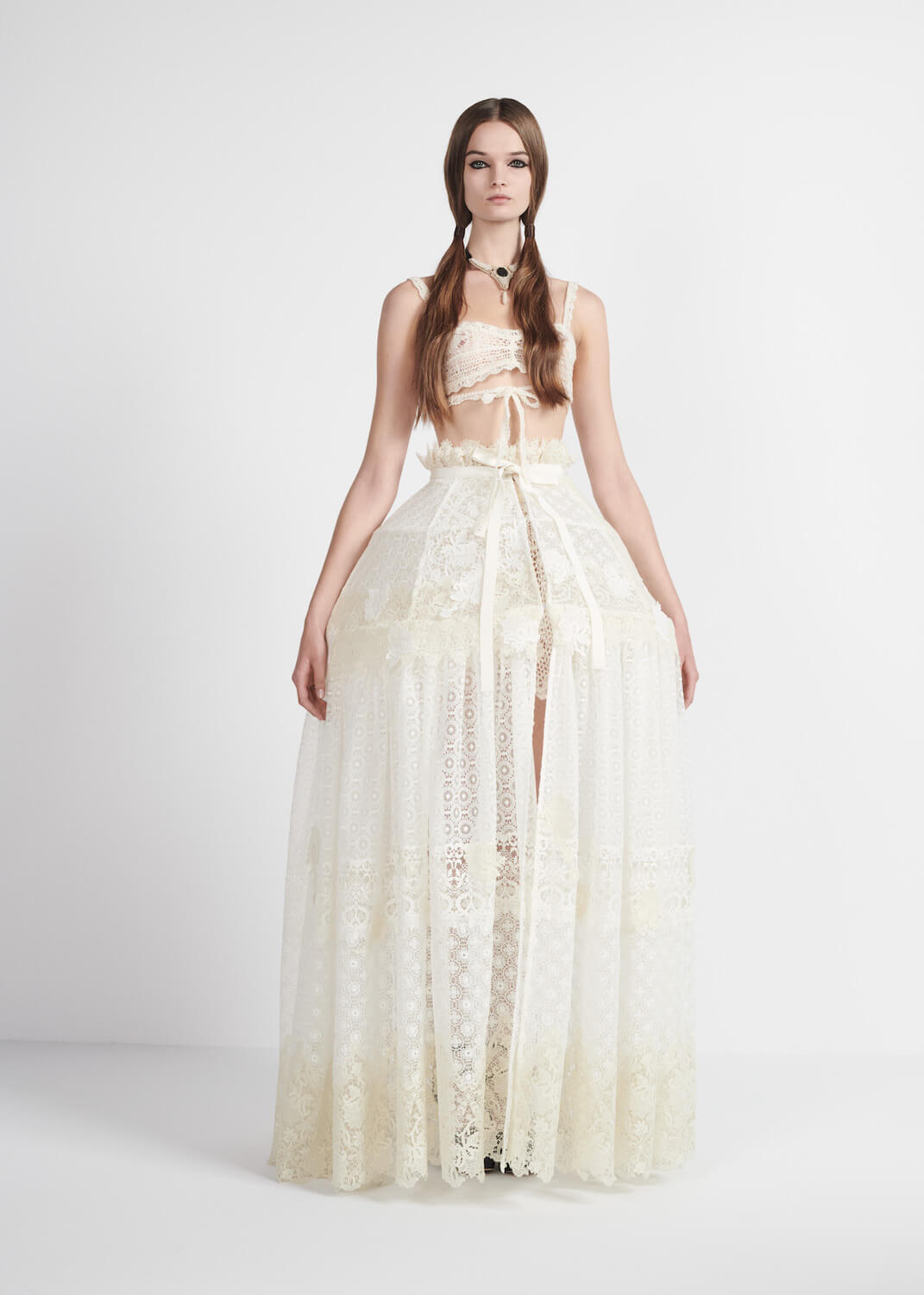 The breadth of the Dior world is awe inspiring. One catwalk can take you from denim downtime to dazzling red carpet moments. In-between are a myriad of ideas on how to dress now. Chiuri’s younger customers are telling her they want to show more flesh. For for them she proposed full, New Look skirts and shirt dresses tied with a drawstring at the waist. They came in in broaderie anglaise, or lace trimmed voile and were entirely slit open at the front to reveal matching French knickers. Ooh la la? Ooh La lovely.