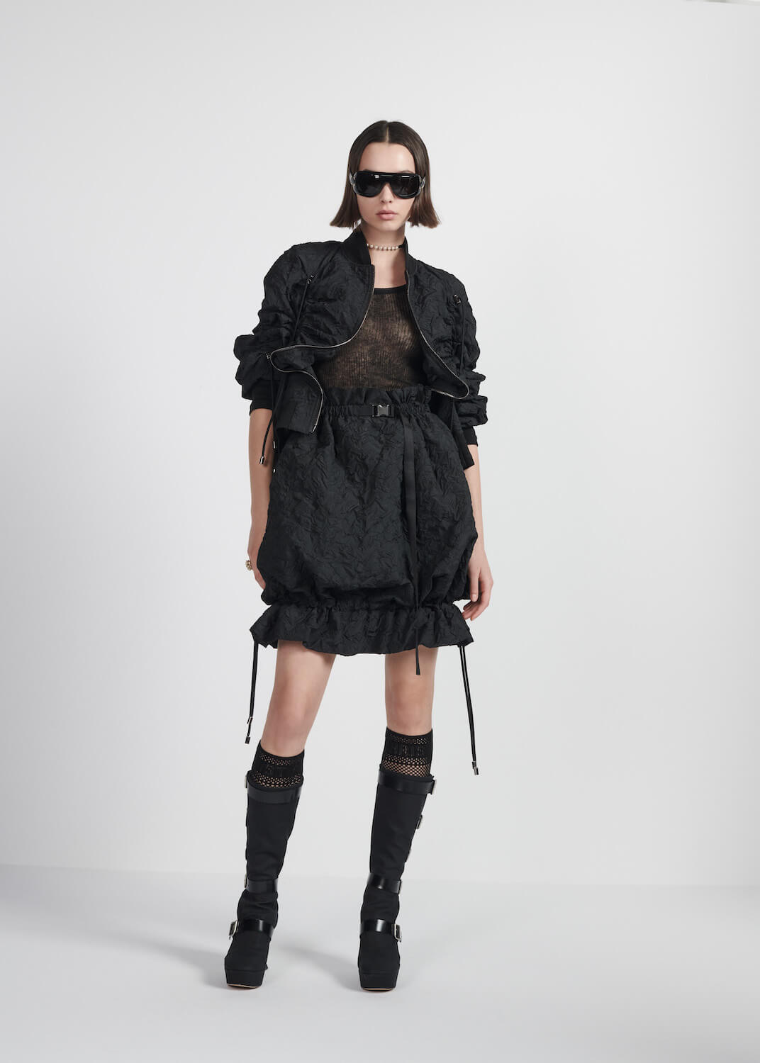 This season saw her introduce teacup crinoline skirts and a 21st century take on the corset which were not designed to constrict or distort. Adjusted with elastic straps, they were worn loosely over voluminous poet shirts and cargo pants. This was Baroque made modern.