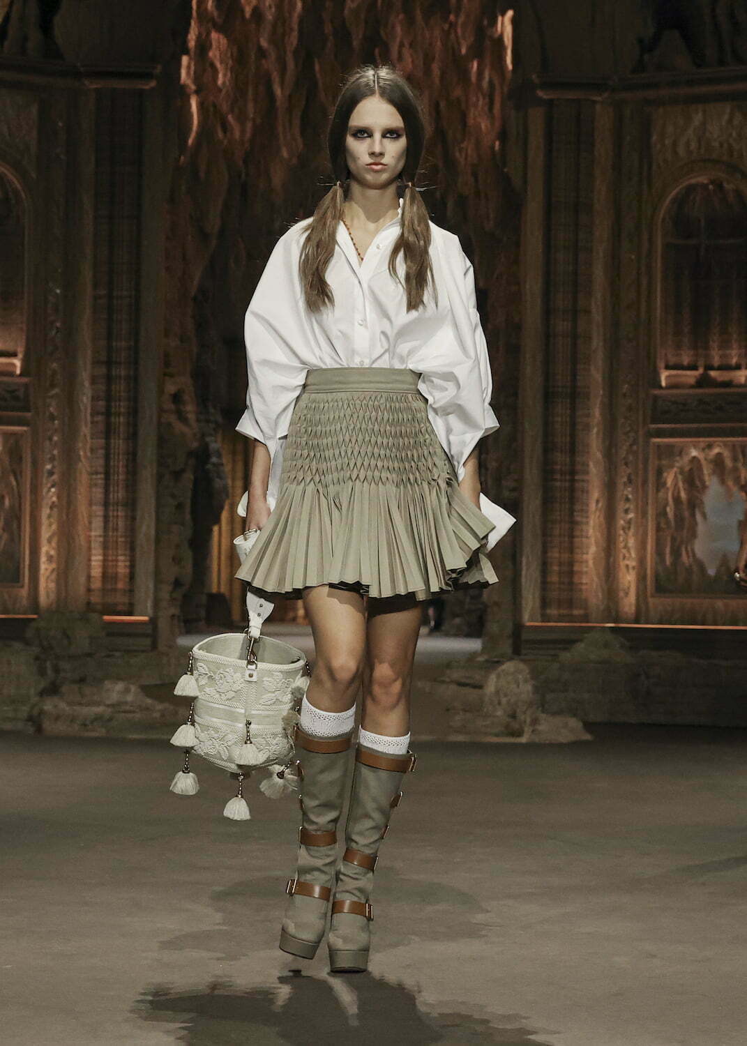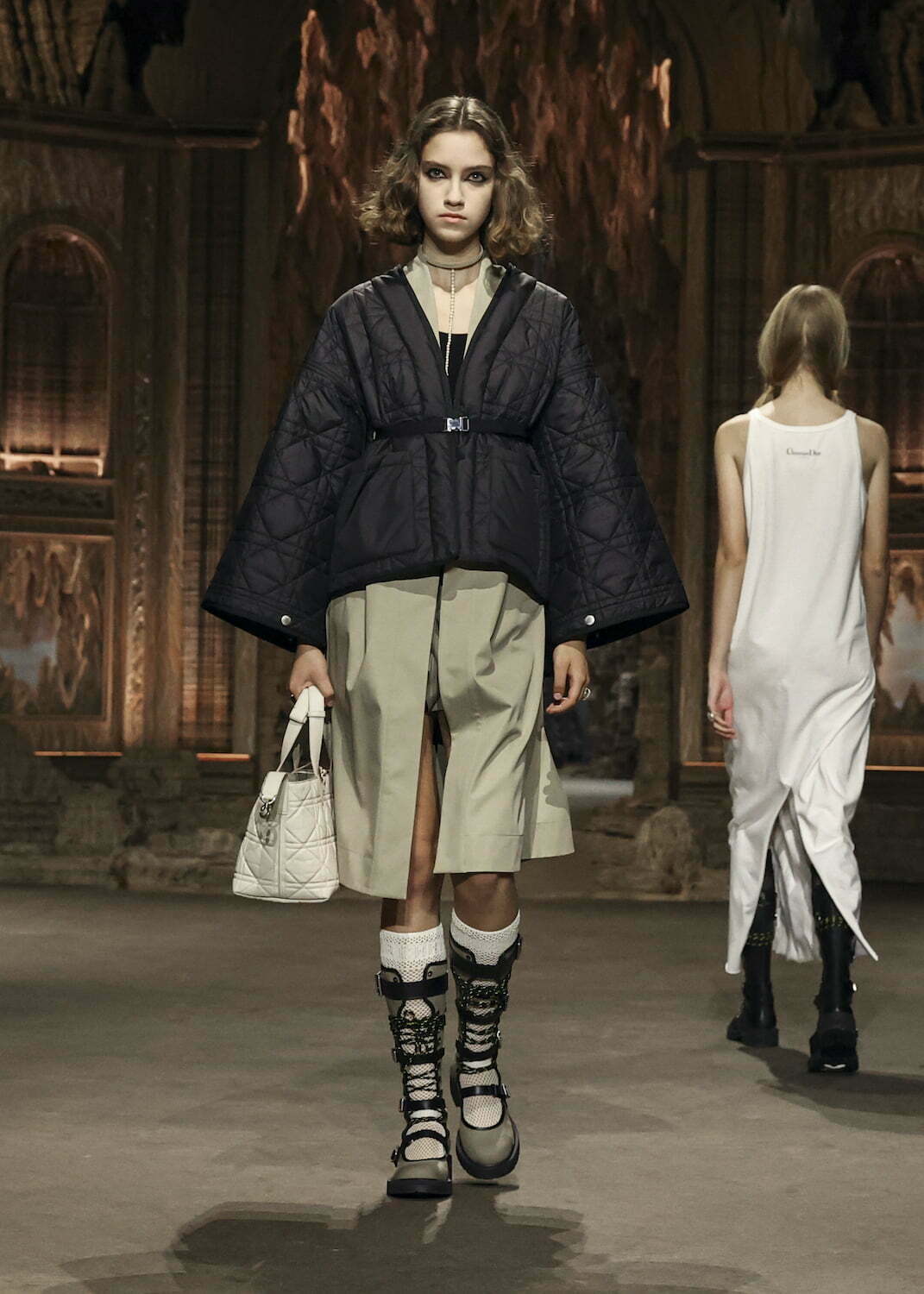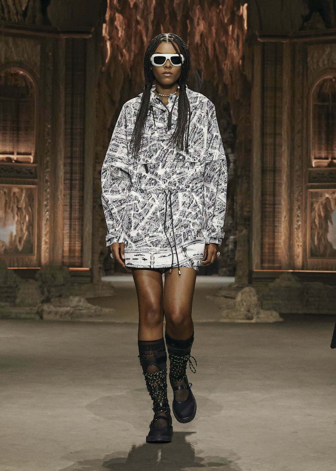 Chiuri introduced a natty Map-of-Paris print for trench coats and parkas, which came from a design she found in the archive. Her virtuosity was also on display with stunning raffia embroidered pieces that put craft at the very core of this collection.