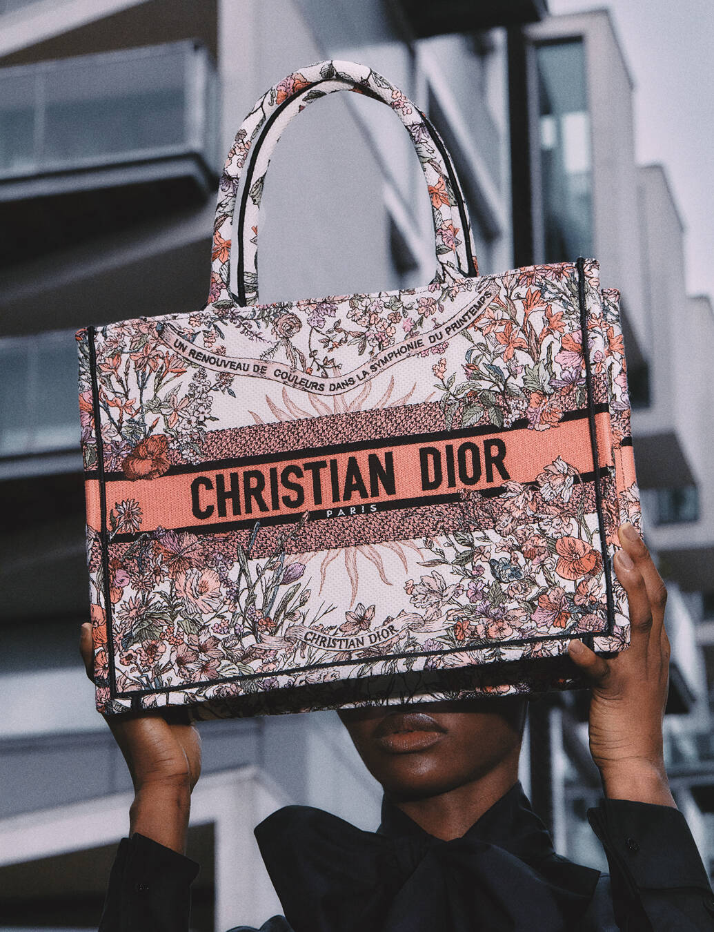 from left: Mitzah scarf by DIOR; Book Tote bag by DIOR
