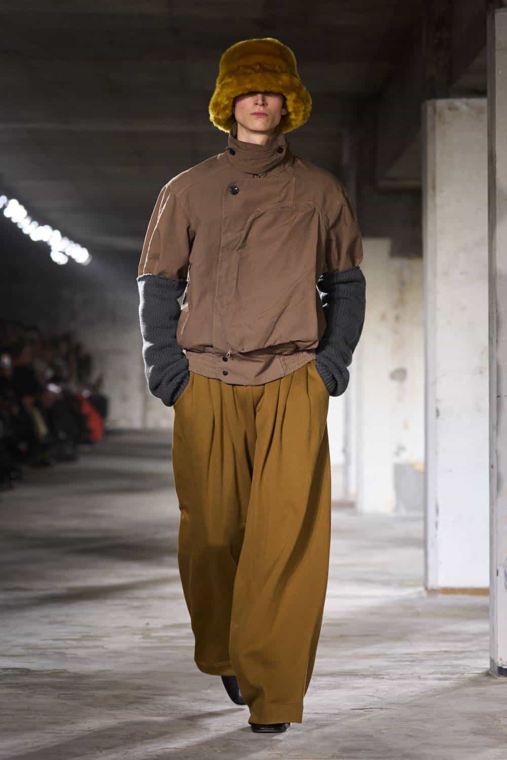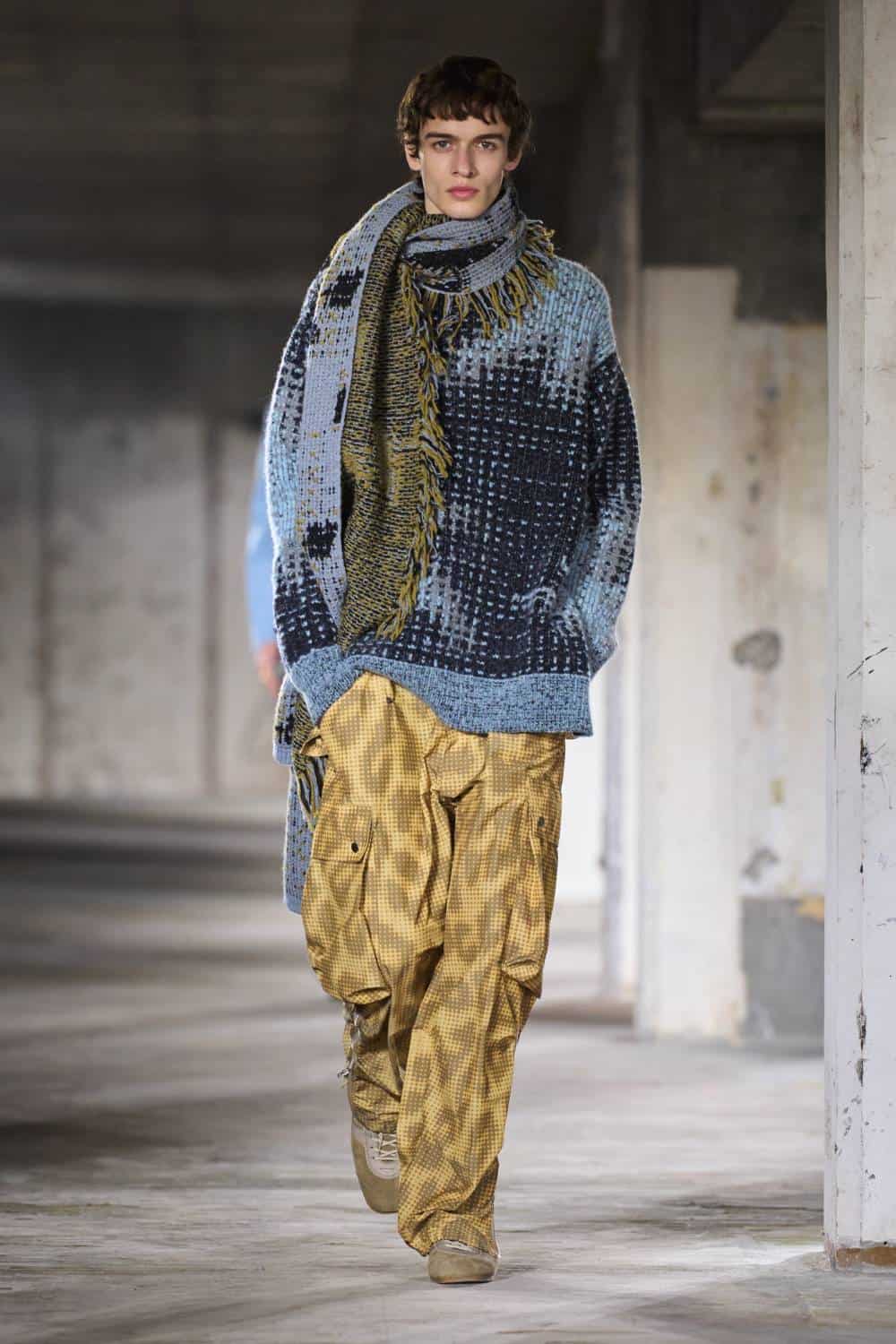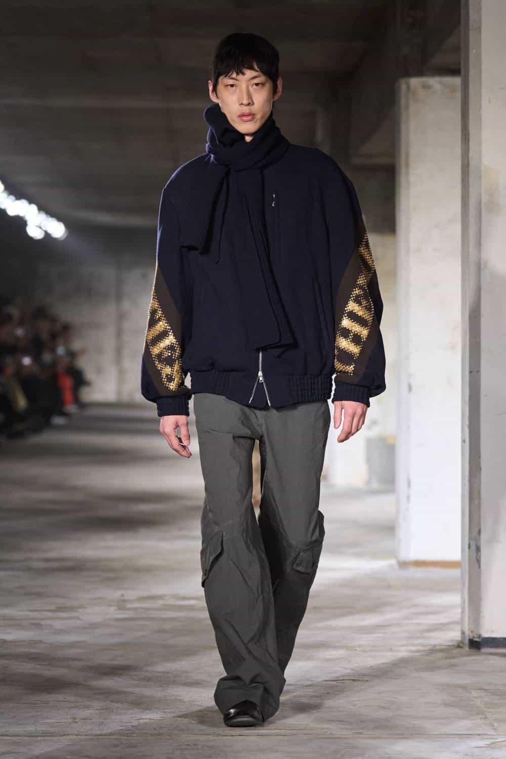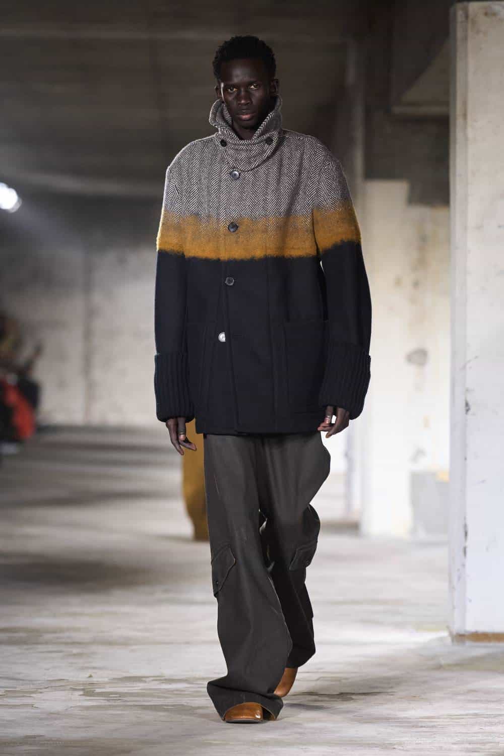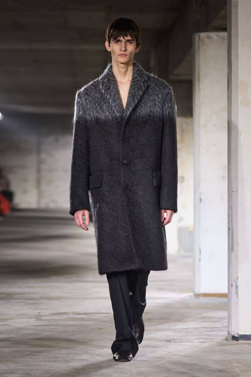Inspired by a collision of opposing ideas, each garment was skilfully crafted to reflect the beauty in duality. Sweeping, tidy coats were engulfed by thick, knitted scarves while wide-shouldered blazers were paired with loose fitting slacks. Traditional shapes were reimagined, with oversized sweaters peeled open by sloping side zips and chunky arm warmers that snaked up past elbows. A delectable dichotomy between the structured and comfortable, the offering was a masterclass in elevated tailoring.