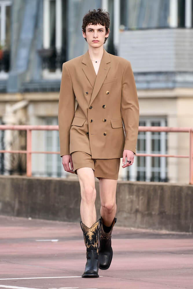 Dries Van Noten’s spring/summer 2023 menswear collection was a vibrant rush of ungendered energy with a dose of drama that took a deep dive into the catharsis of touch. Ruminating on the friction between our need for physical protection in contrast to the intimacy of up-close contact, the layering was lavish, the mood uplifting and the colours zinged with sophisticated eccentricity.