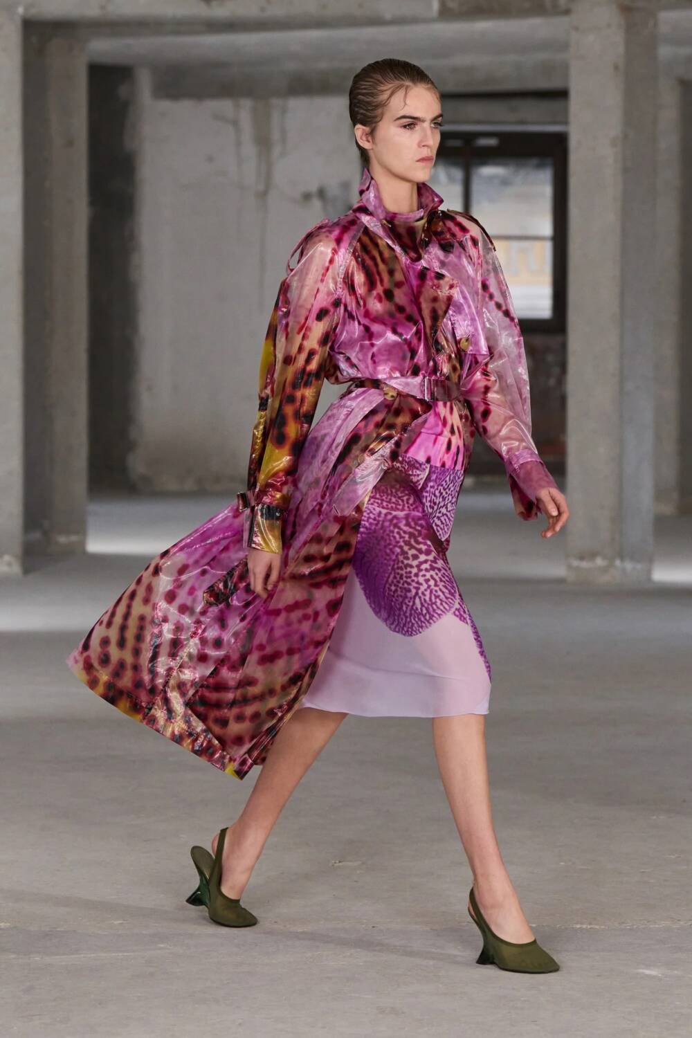 Jewellery was a high point, with spatterings of silver appearing in strange, warped shapes across necklaces, brooches and earrings, as models walked on angular heels in the same intriguing prints as the clothes.