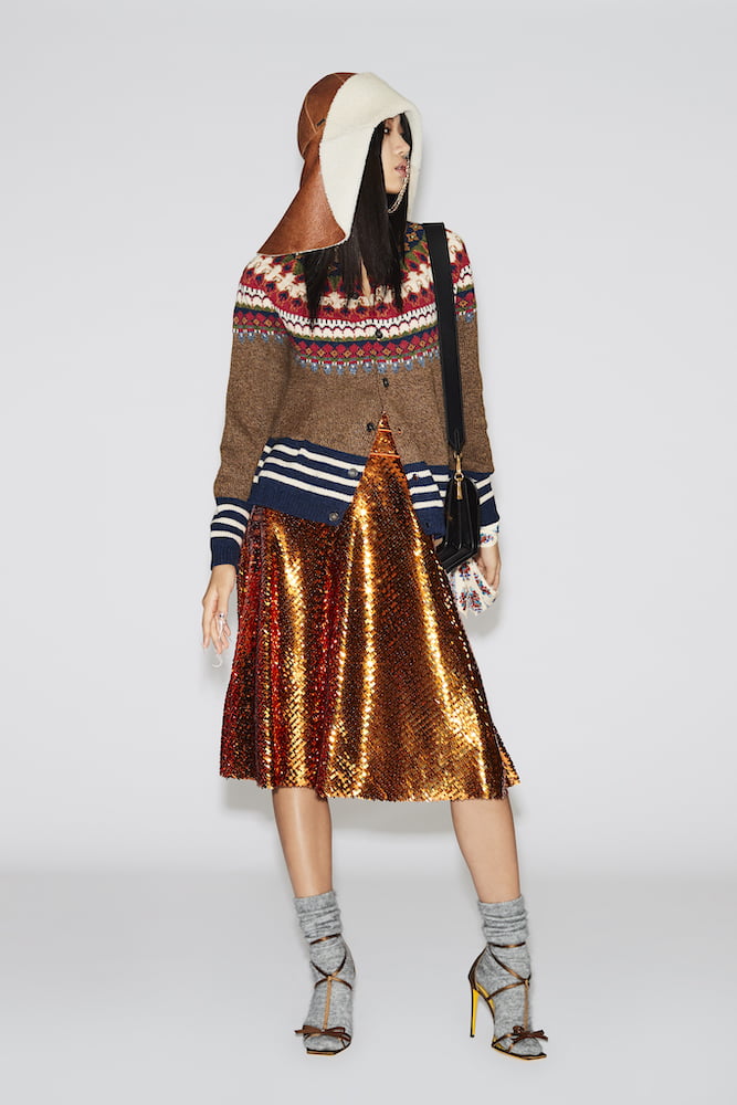 For women, the shimmy factor was high. Even practical things like denim got a party make-over. Jeans, oversized hoodies and lumberjack shirt were covered with dangling diamante strands that were made for dancing. Tracksuits were worn with tiaras and sequin skirts paired with heavy knits. Tiaras featured for the men too as did, colourful, oversized, statement parkas and down jackets (orange Day-Glo camo anyone?), multi-patch jeans and chunky knits inspired by the Canadian outdoors. Their new take on black tie? Crystal and denim embellished tuxedos and lace T-shirts. Let the good times roll.
