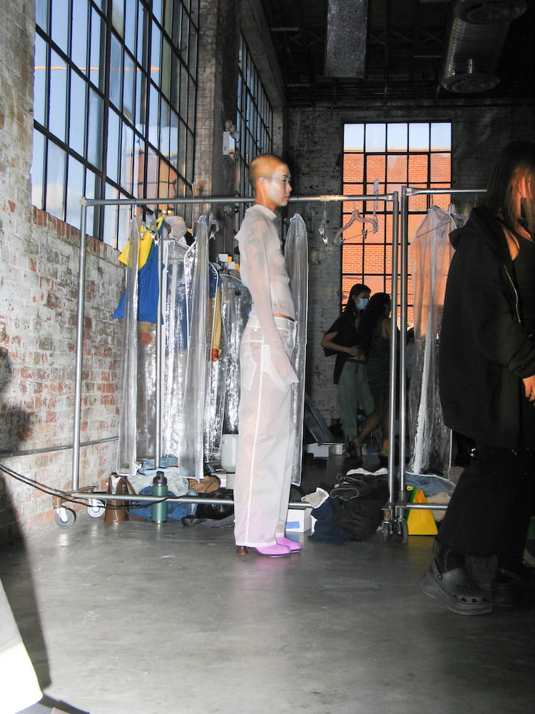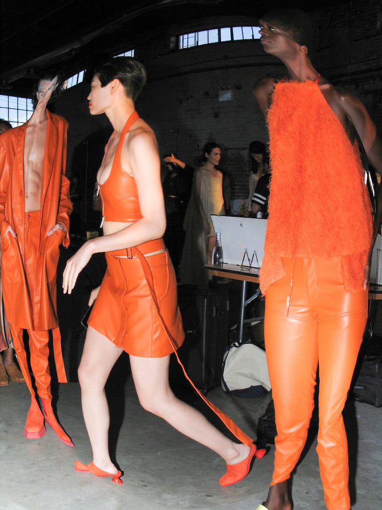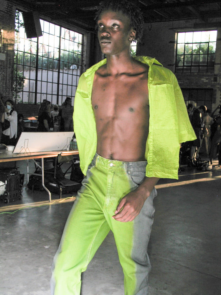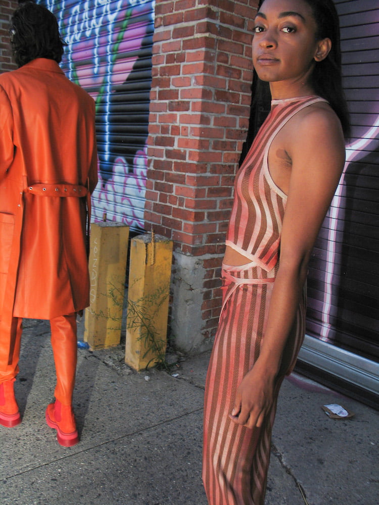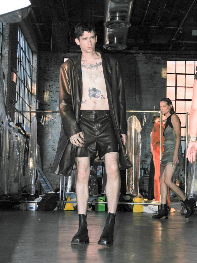 Whilst the brand’s contemporaries turned to fashion films during the pandemic, Eckhaus Latta managed to stage IRL fashion shows – the first to a crowd of nine, the second in a gloomy, audience-less warehouse. Last Saturday, the pair made their way back to Bushwick, where the likes of Rosalia and Troye Sivan watched on as models strode in sheer combo trousers, woollen twinsets and sexy, Helmet Lang-esque, leather get-ups. While knitted numbers in purple, green and putty brown signalled a more mature Eckhaus Latta – seen across the brand’s most recent collections – barely-there dresses, whispy shirts and sensual cut-outs signalled a pent up libido, probably from all that time in lockdown. Judging from the brand’s raunchy escapades in the past – remember that campaign? – don’t expect that side of Eckhaus Latta to disappear anytime soon.