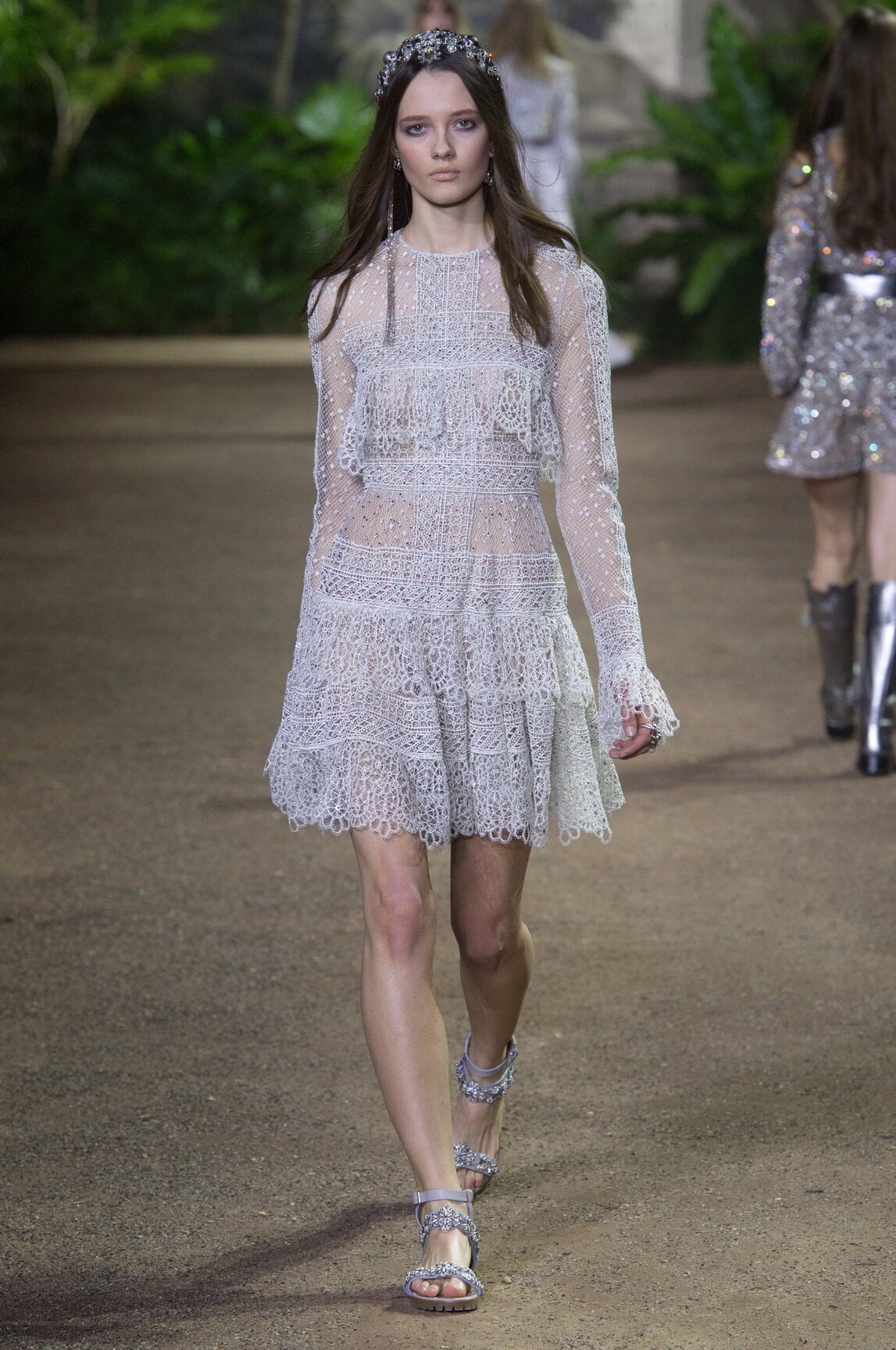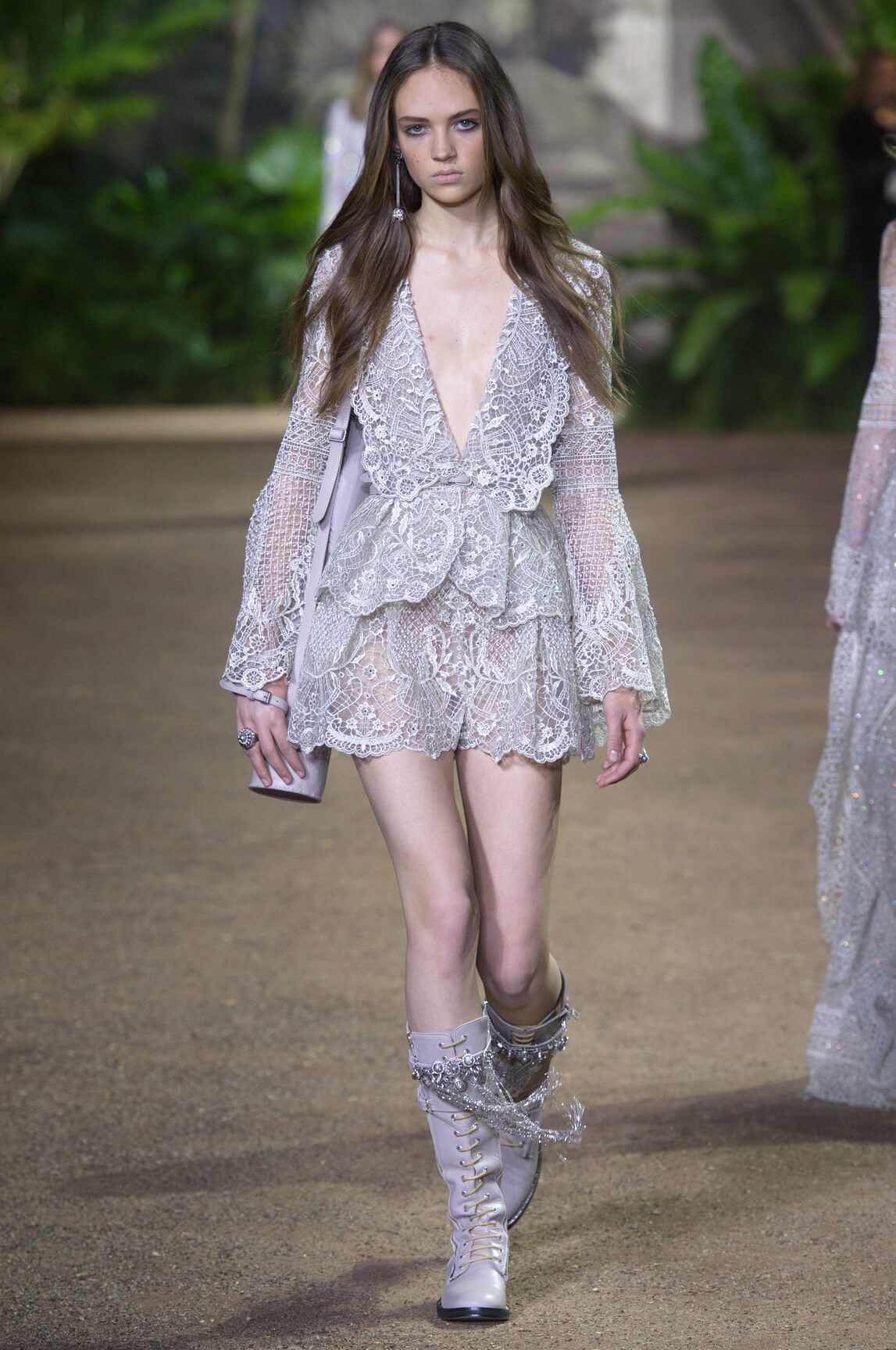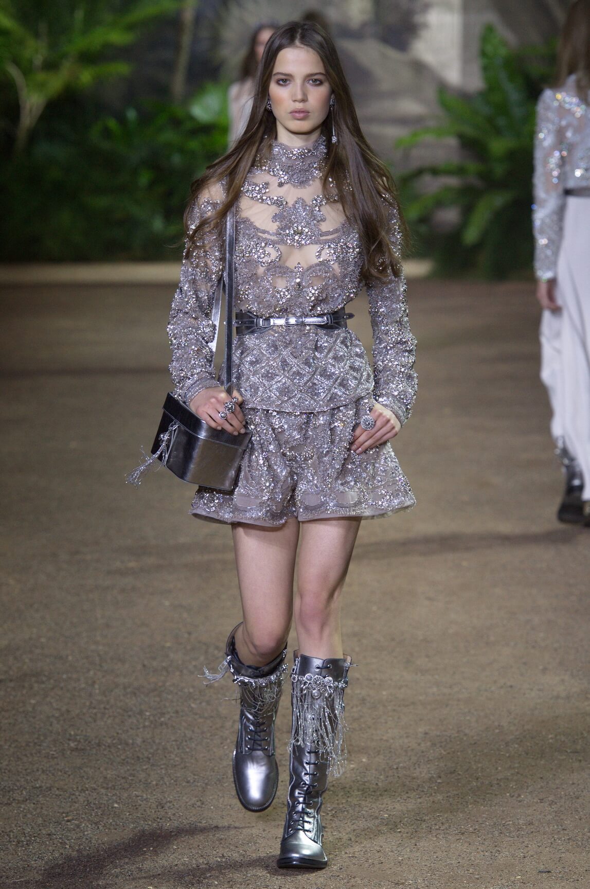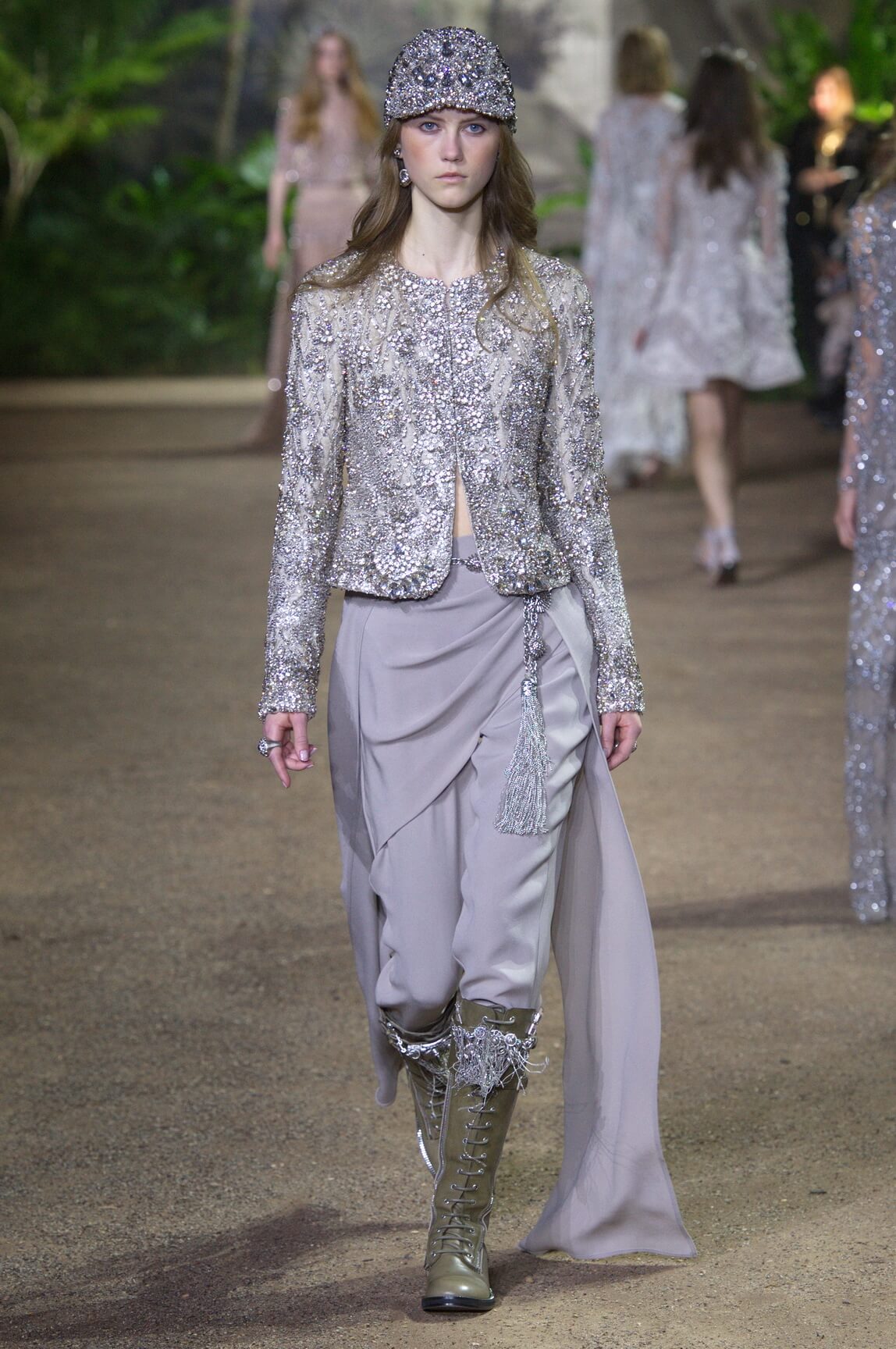 Elie Saab looked to India –  Maharanis and Raj ladies, richly dressed in sumptuous layers of embroideries and lace – for his spring 2016 haute couture collection. That wound up transposing the riches of that subcontinent – embroideries, silks, exuberant sari drapes – into dresses that echoed the finest French haute couture. The finale wedding gown, a glittering golden crinoline modelled by Anna Cleveland and draped with a whisper-find tulle veil, was the sublime summation of the approach. The colour palette was muted, shades of white, grey, platinum glitter and a soft Indian Ocean blue the subdued canvas to show off the toiletries for which Saab is internationally renowned, and indeed coveted. This season, there was much ado about fringing, adding un peu d’animation to slender silhouettes with a hint of the Edwardian.