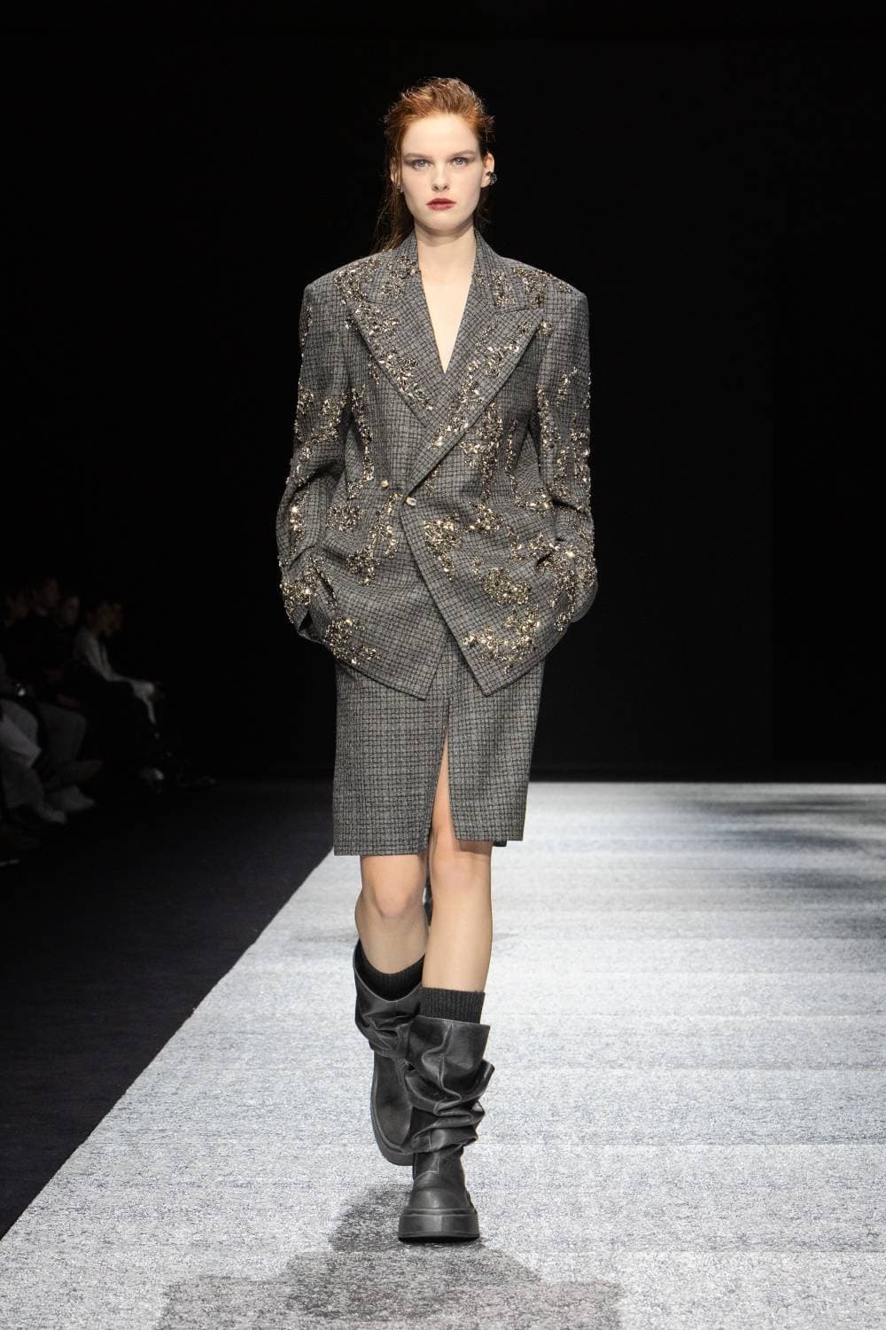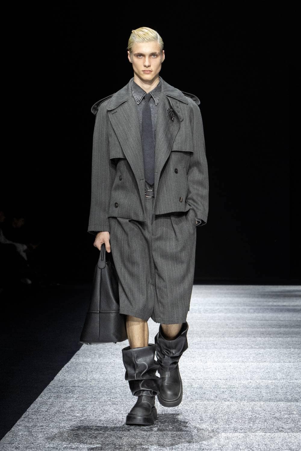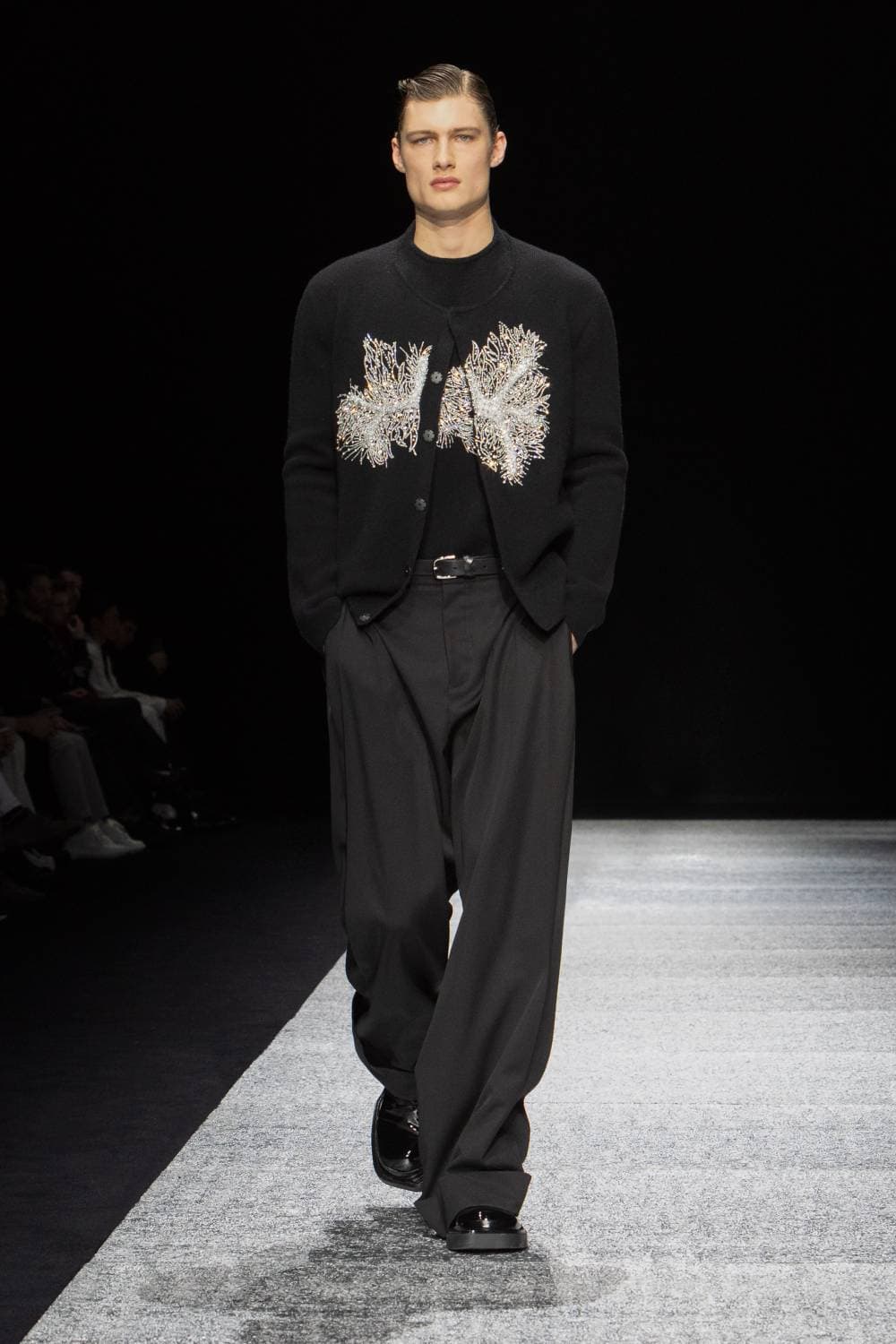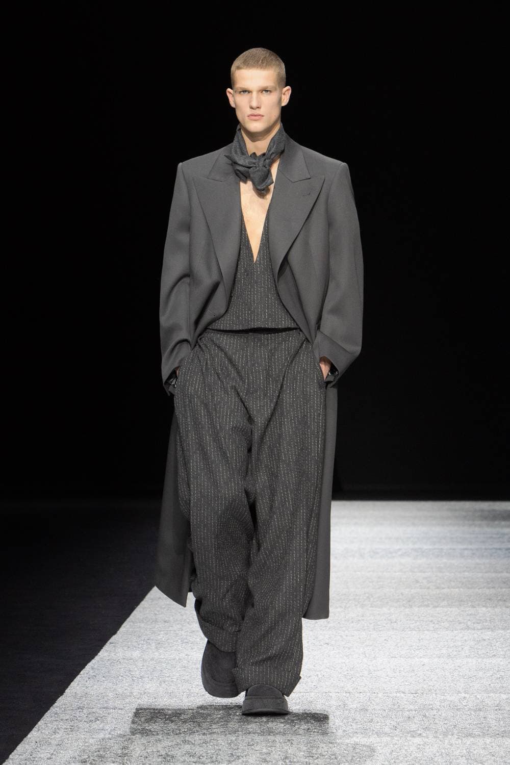 Inspired by the “cold and impetuous winter sea,” Emporio Armani’s AW24 outing was a seafarers bourgeois fantasy. In all its greyscale glory, the collection fused the opulence and elegance of a Georgian ball with the ruggedness of a sailor at port-of-call, as the brand’s reimagined procession of elegant sailors, cabin boys, engineers and officers descended upon the catwalk.
