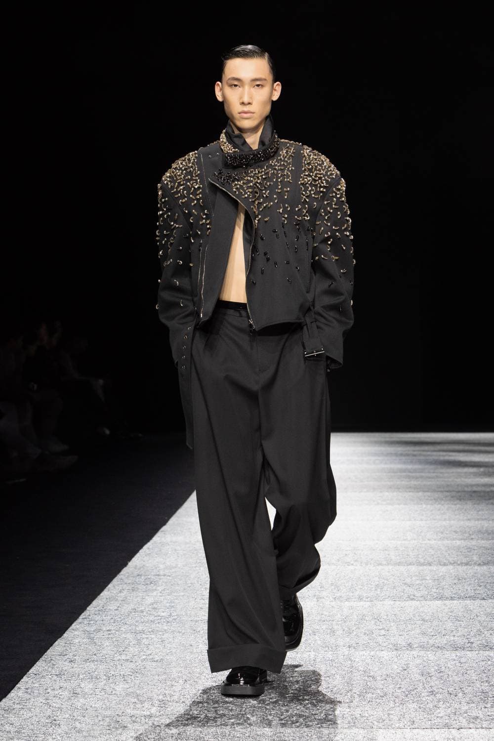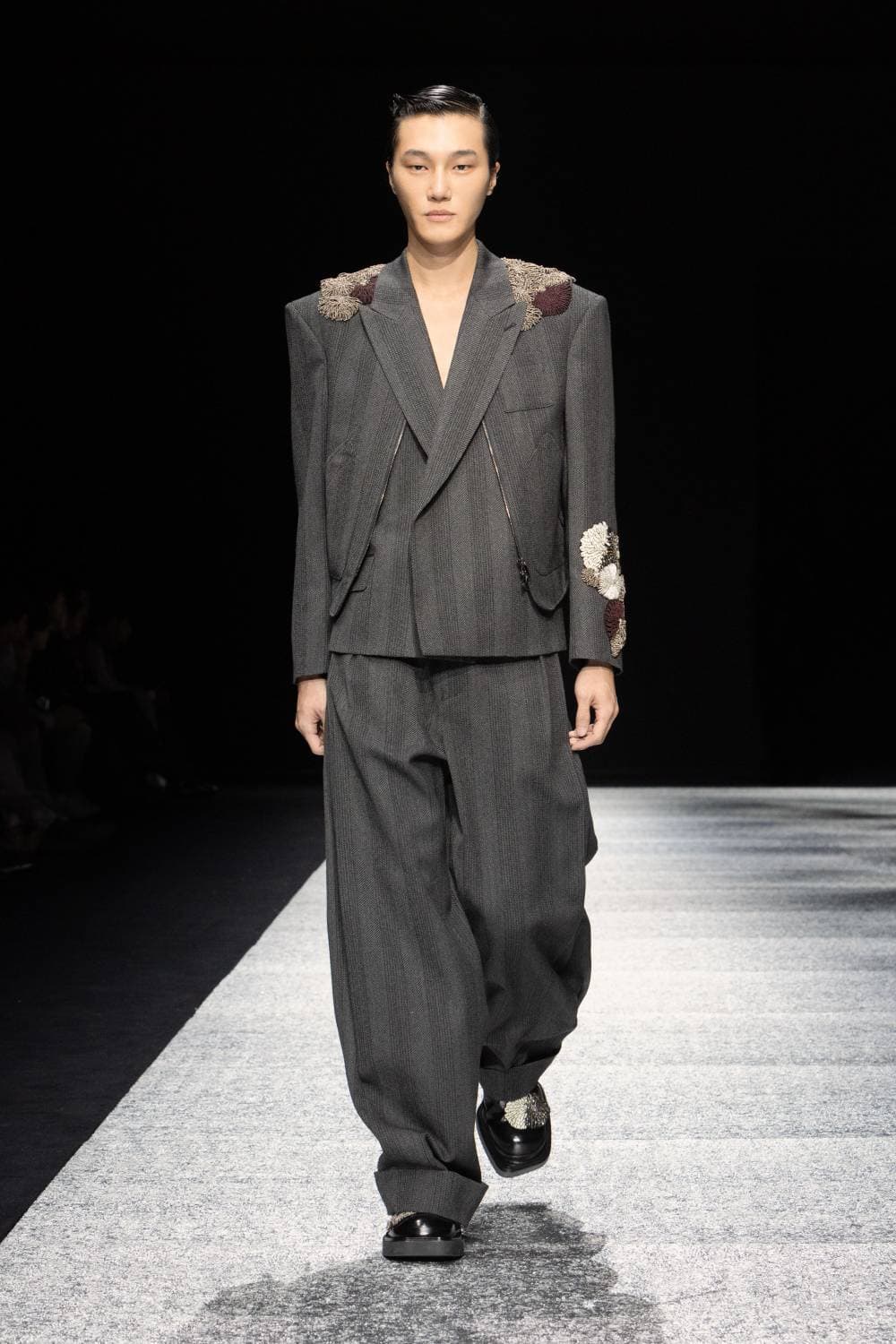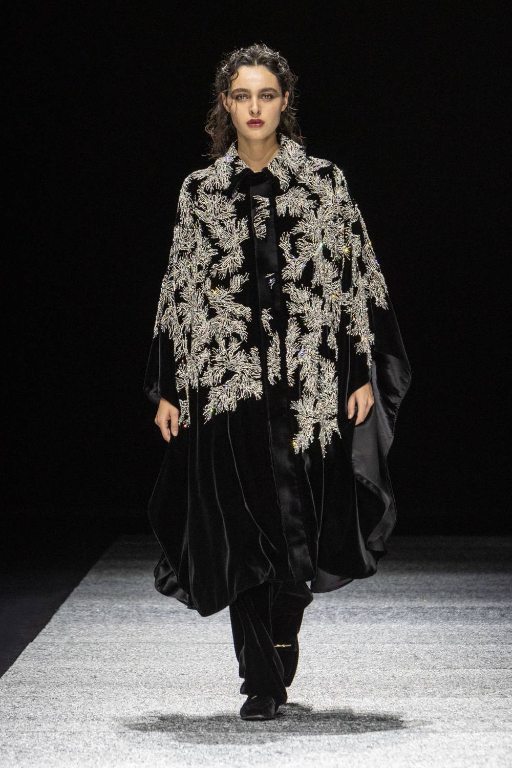 To close out the show, a number of lux, suits, coats, cardigans and ponchos embroidered with silver metal mimicked the incrustations left by the ocean on the keels of ships, bringing an expensive decorative flavour to something generally associated with the unkempt. It was splendid.