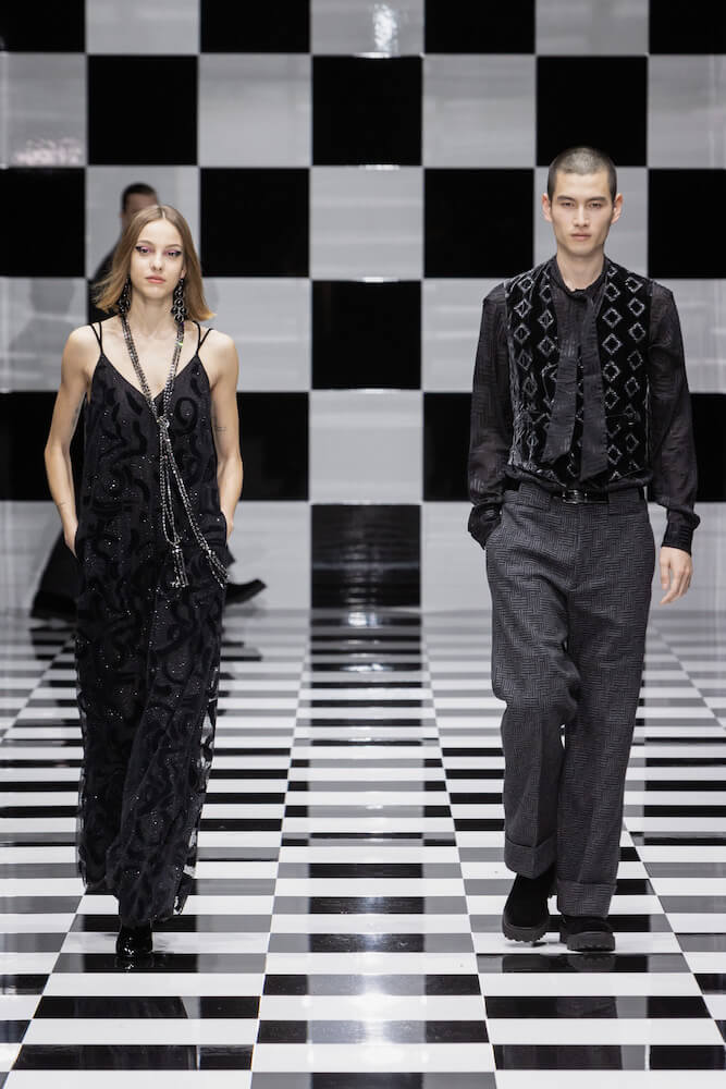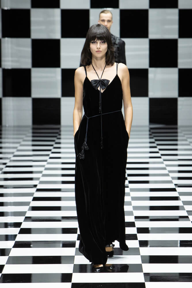 For the Emporio Armani man, the expert design language maybe committed to ease, all edge-to-edge and softly belted robes. But there is always an inherent sportiness too, and so there were cashmere OS hoodies and a whole slew of a snowboard team, off to Northern Italy, we think. Although, it has been warm here. The menswear made us think of American Gigolo, a kind of modern rewind and so we are downloading this iconic classic right now. All up this AW22 collection had an urgency, a currency dealing in energy and some cinematic glamour.