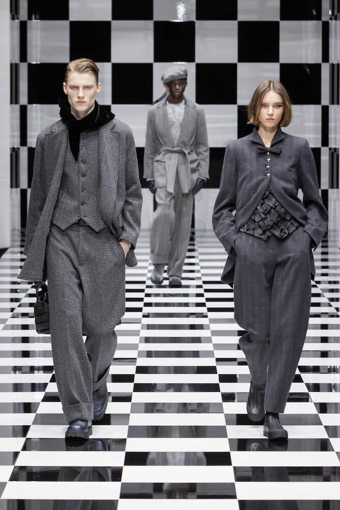 Not one but two collections delivered at Emporio Armani with the men’s and womenswear combined – boom, boom, double whammy. The two nicely played off each other, enhancing the world that Mr. Armani creates for his loyal customers, one that is all soft serve with a side of impeccable tailoring.
