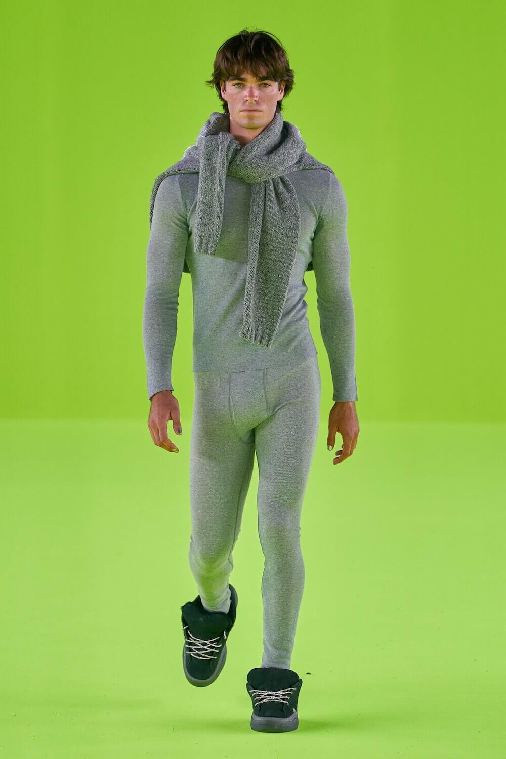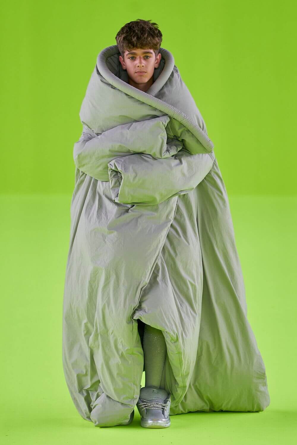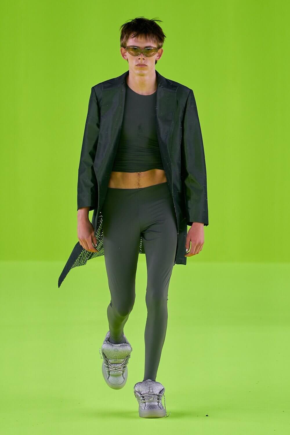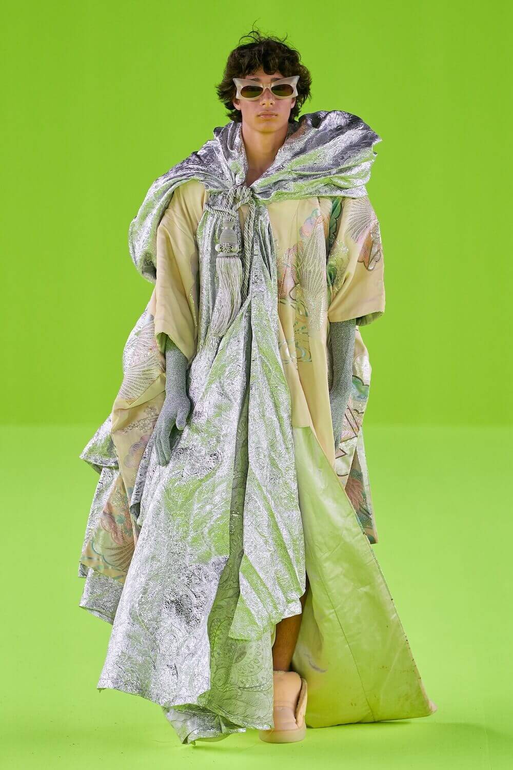 For the first time, he brought his own, distinct take on the American Dream to an international stage. As this season’s guest designer at Pitti Uomo, he staged his first standalone catwalk show in the courtyard of Palazzo Corsini, constructing a tennis green box that dripped in UV lights, which felt a bit like being inside a giant sun bed. Set in the year 2176, the collection saw Linnetz devise a plot around Florence being sunk underwater, with California skaters flocking to the city to chase the waves. Once arriving, they raided a lavish Ambassador’s closet during a swanky evening ‘do they crashed, nicking a load of family heirlooms, antiques. souvenirs and opulent togs. With a strong focus on louche tailoring, sun-kissed models charged to “Boys of Summer” clad in swollen suits with exaggerated clown collars, shiny, armour-inspired jackets and sparkly wide-cut trousers that borrowed their shape from the brand’s collaborative collection with Dior Men last year. A glitter-laden toga get-up inspired by the Statue of Liberty summed up the collection with a wink and a nudge – all proving cleverly ironic and thoroughly entertaining.