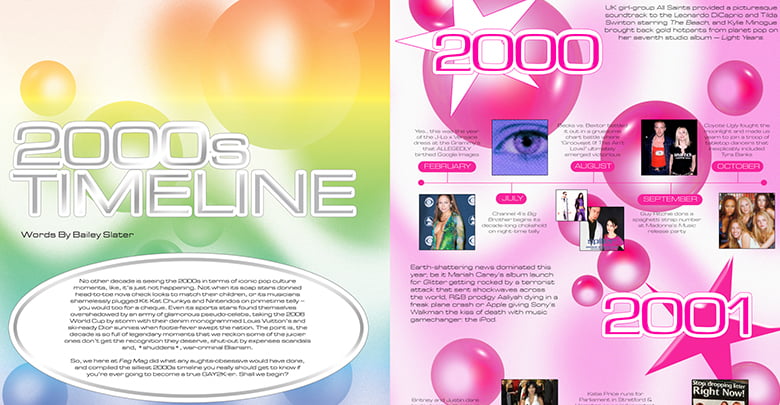 Inside the issue, you’ll find a listicle of Xenomania’s best hits (they’re the brains behind all the good Sugababes and Girls Aloud tunes), a deep-dive into the most legendary pop culture moments from ’00-09 and even a guide to “rhinestoning the shit out of” your favourite pair of shoes. There’s also a Madonna horoscope thrown in there, because, why not?