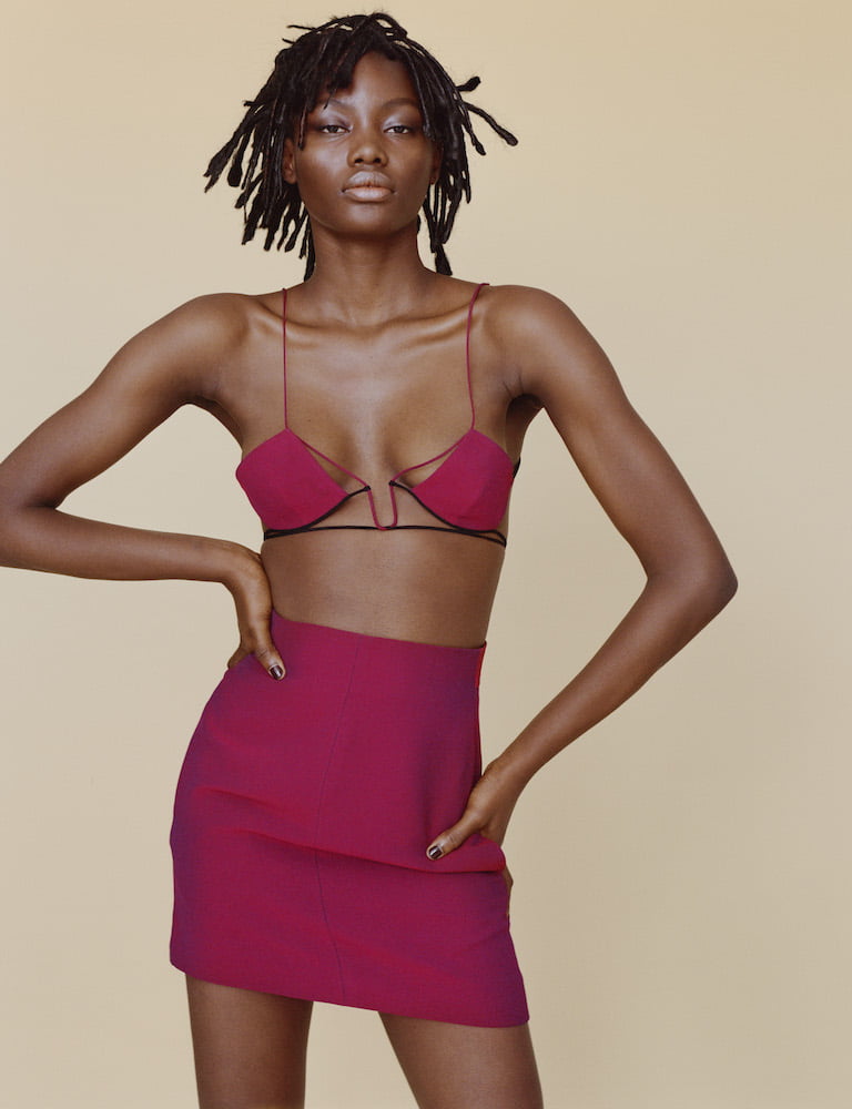 Closing out proceedings is Maximilian, who despite only showing his debut collection last season, has become a star in his own right. His sophomore outing sees the Manchester-born designer look to 1960s couturiers – Cristóbal Balenciaga, Paco Rabanne, Courrèges – to inform his ongoing exploration of Black elegance. “That time was so incredible for fashion, and particularly in showcasing strong and powerful women,” said the designer, who channelled the futuristic vision of that period, now with Blackness at the forefront of the narrative. Whether its elegant column skirts (a nod to his Trinidadian grandmother’s Sunday best), skin-tight, lycra bodysuits or sharp, club-ready garb made from cracked Japanese leather  – it’s hard not to get giddy at Maximilian’s superstar potential. He’s set to soar.