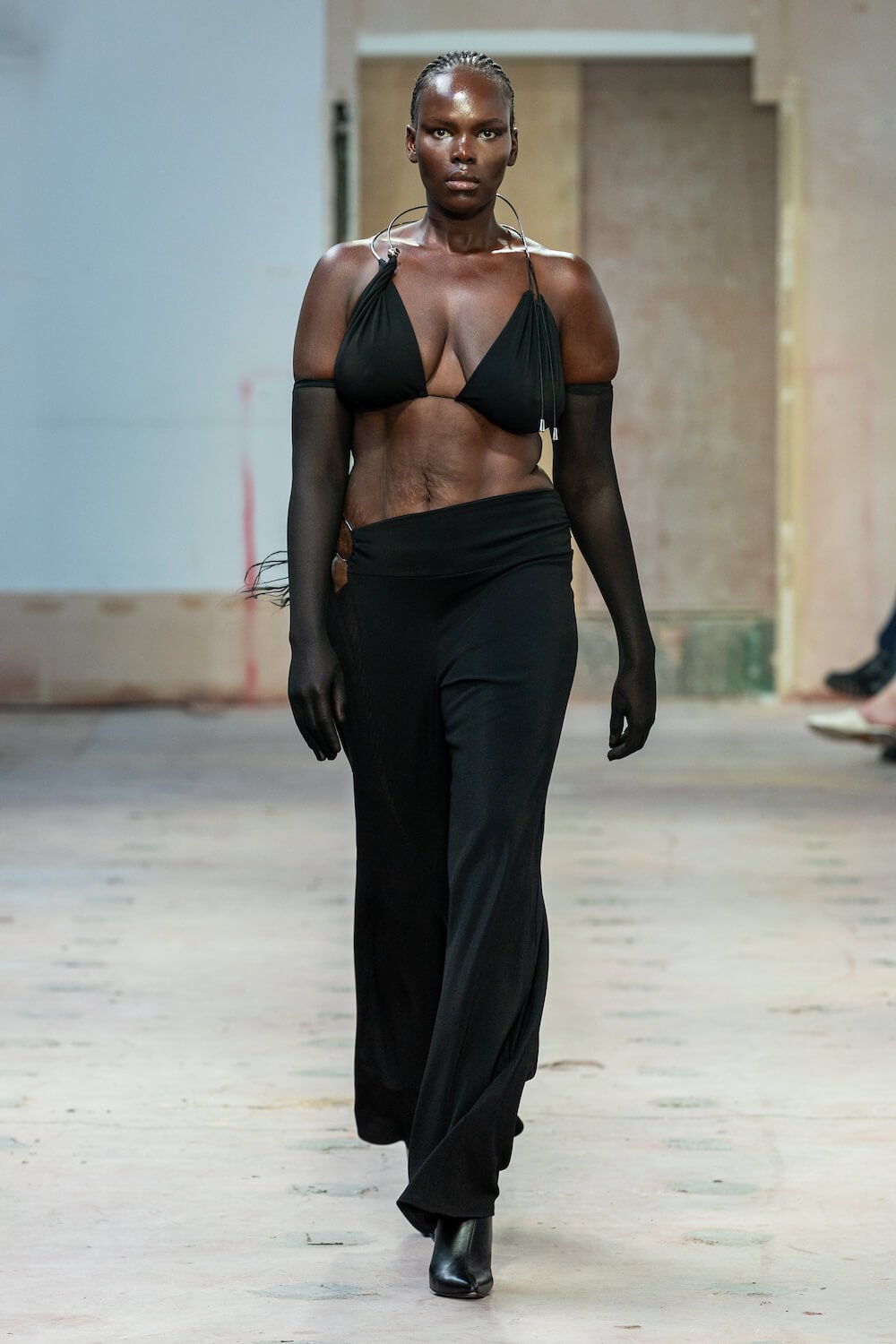 Finally came Jawara Alleyne’s parade of inventive upcycled draped shredded and pinned pieces, presented with typical London Fashion Week energy (via Jamaica and the Cayman Islands). These are clothes for going out and showing off. Make-do and daring. They feel very now.