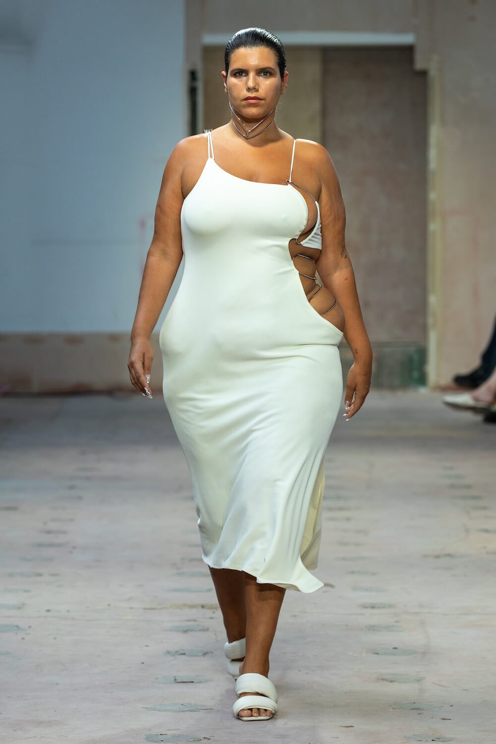 Next on the catwalk was the debut of Karoline Vitto, whose work celebrates the female form and challenges body shape orthodoxy. Inclusivity is at the core of this Brazilian-born designer’s approach. Instead of designing a silhouette which demands a body must conform, she starts with the body and works to enhance its beauty. Artfully draped, swathed and cut out, she makes to order, so every piece elevates the wearer. Shown on a cast of curvy models, there is no compromise on sexuality, she’s not trying to cover-up her women or offer ‘solution dressing’. She goes far beyond tokenism, and the message is simple. If you want to stun, you know who to call.
