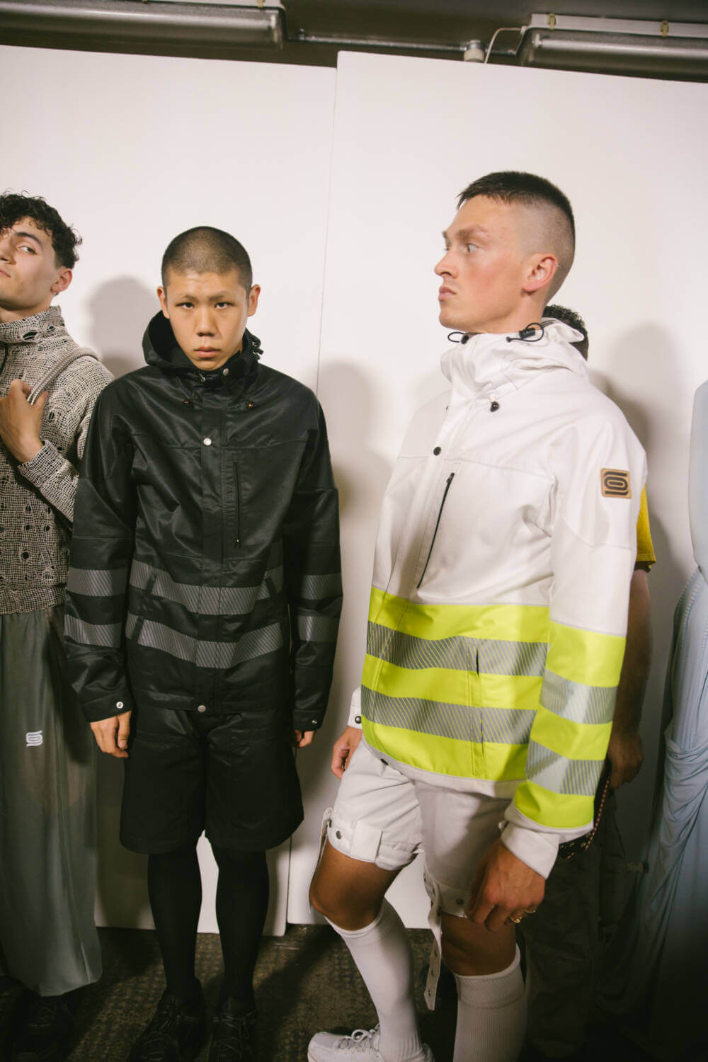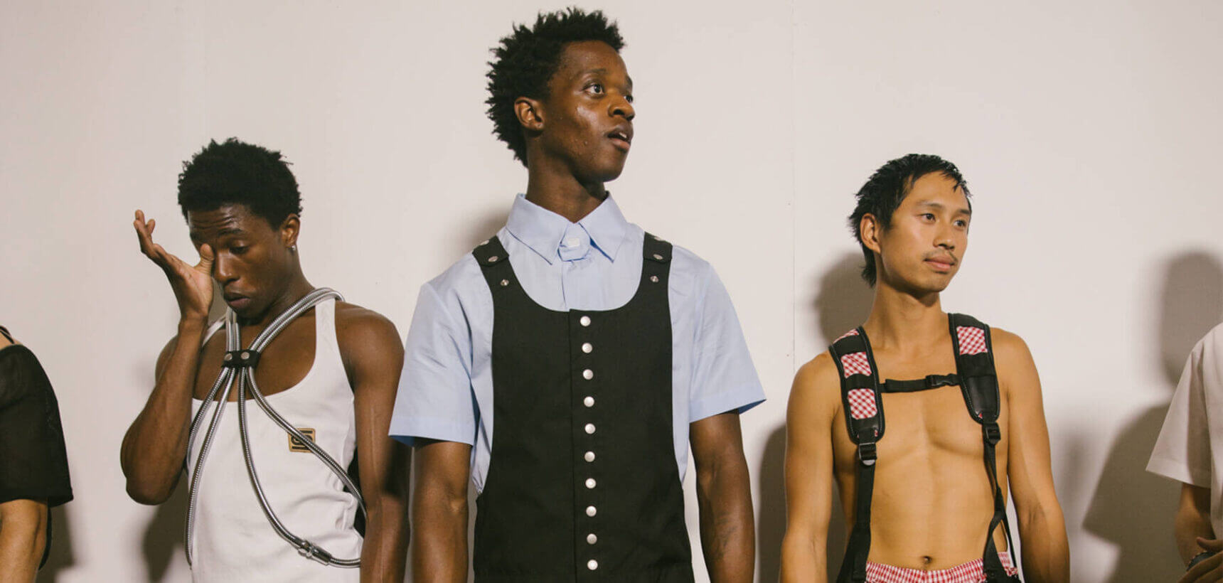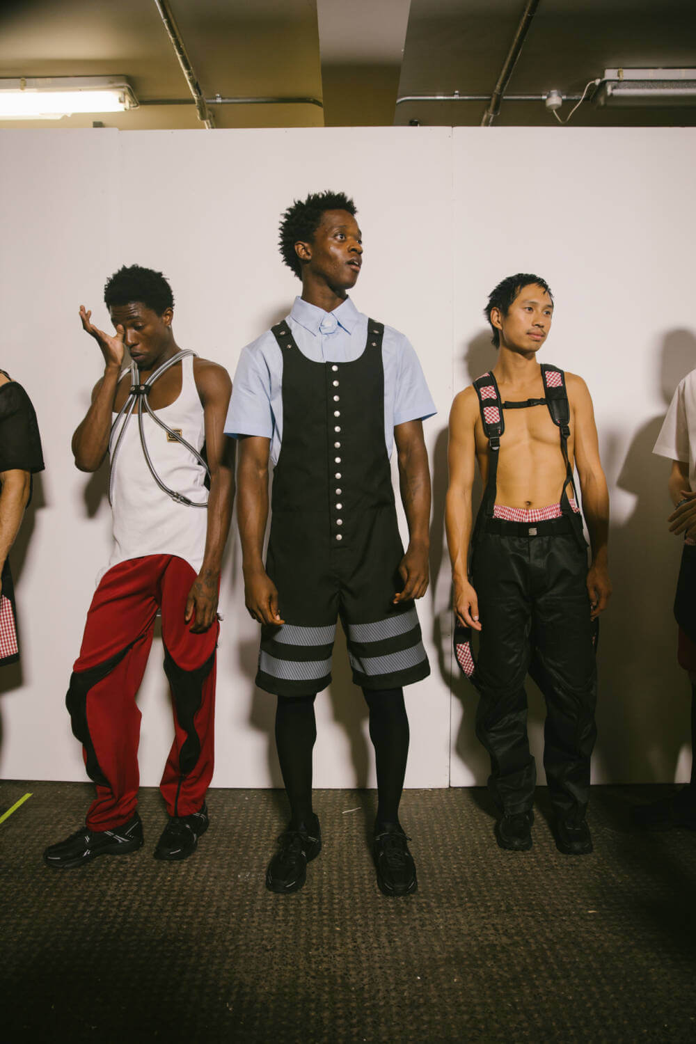 Fashion East? Maybe they should change the name to Fashion Feast. That’s how it felt watching the show, as one great look paraded after another. This London Fashion Week slot serves an abundance of talent so nourishing that British fashion would seem empty without it. The showcase caters to different tastes. Sexually charged streetwear for men? Olly Shinder has it. Already on the radar of the Dover Street Market crew, his cast of queer artists and handsome friends thrilled in highly detailed pieces, inlaid with body-revealing slits and windows which brought a new meaning to ‘watch this space’.